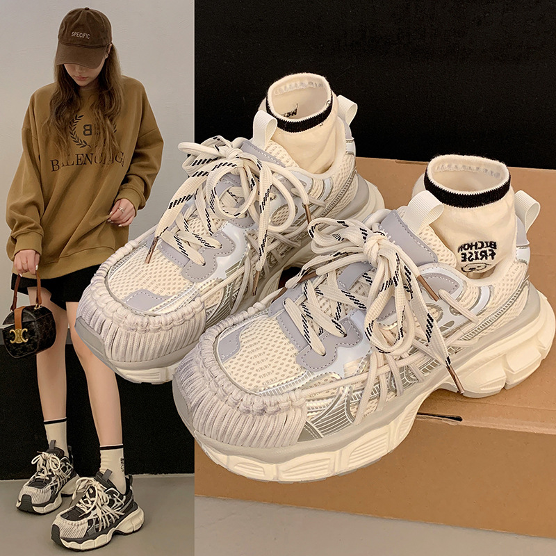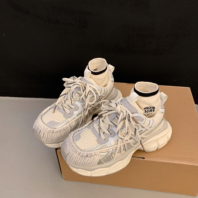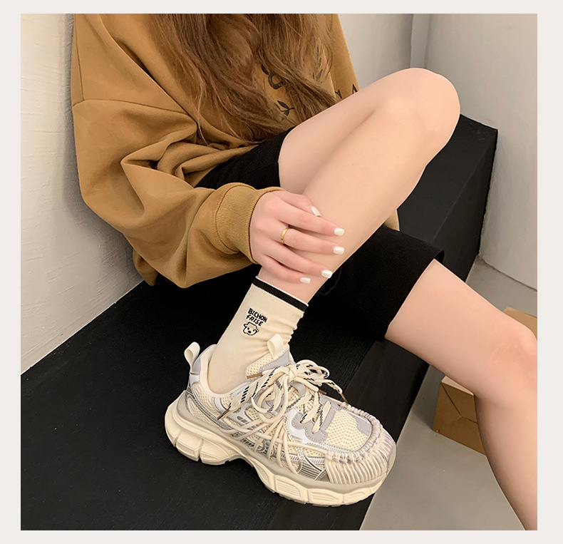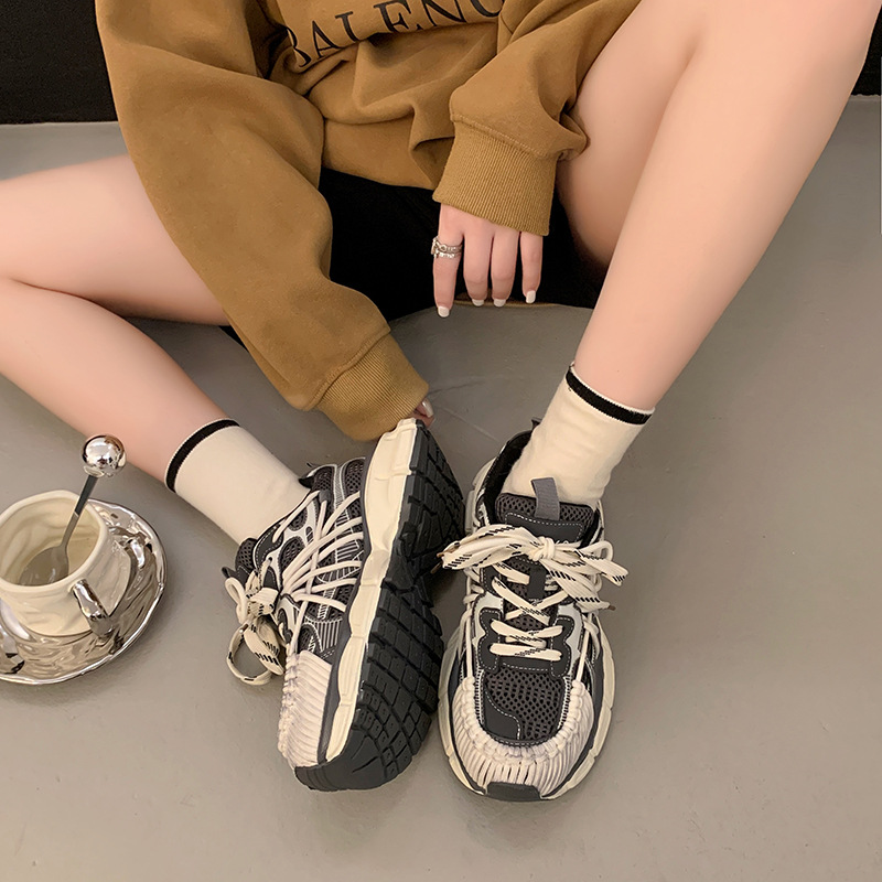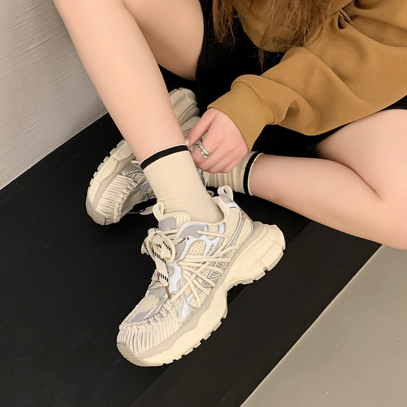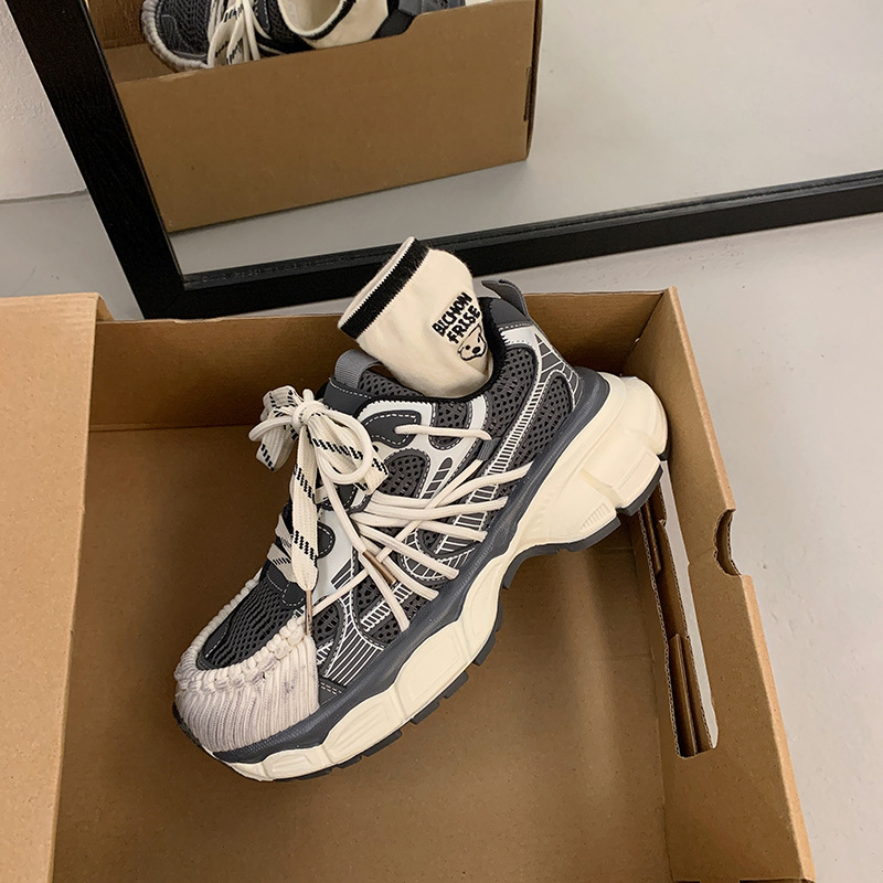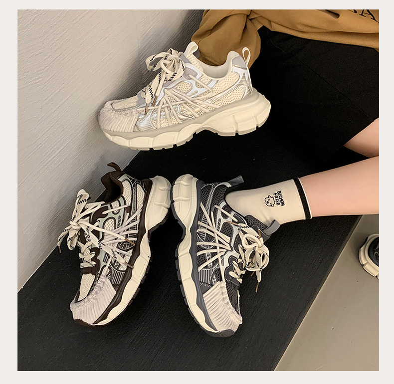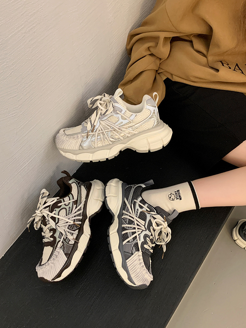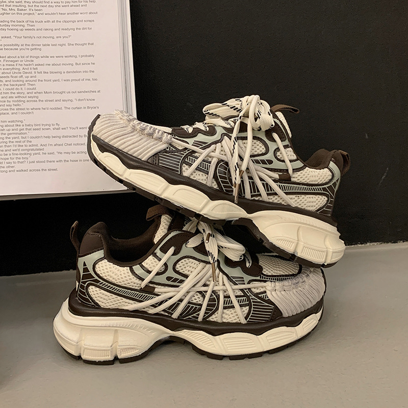 빈티지 캐주얼 신발 등산 스포츠 러닝화 2024 년 가을과 겨울 컬러 광택 늙은 여성의 두꺼운 톱니 신발스토어 가기