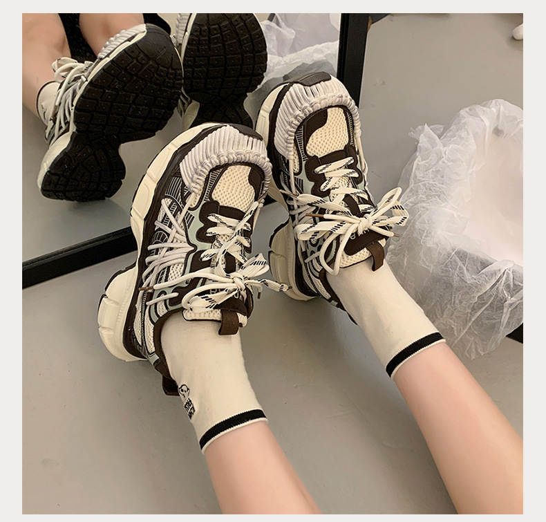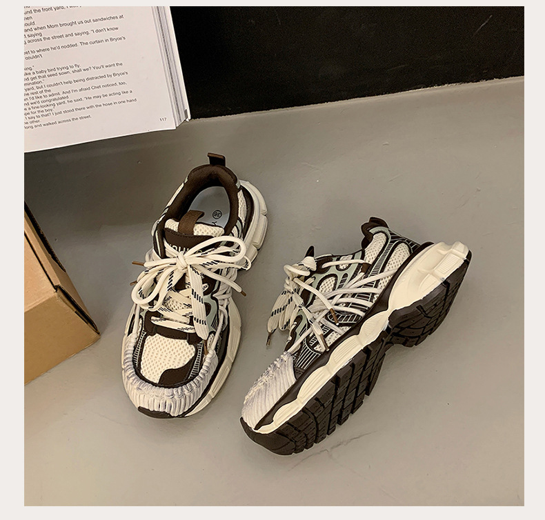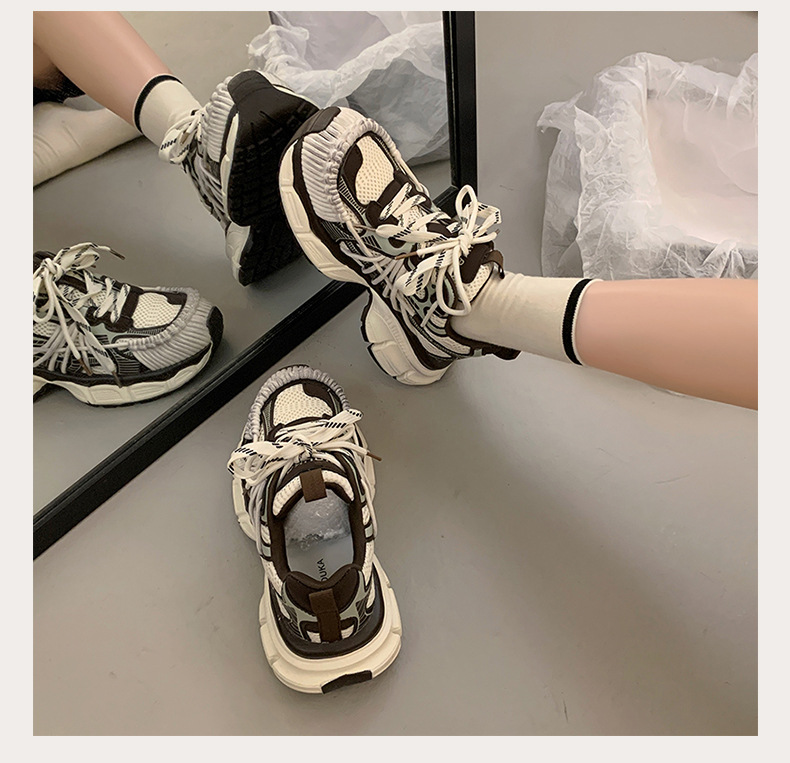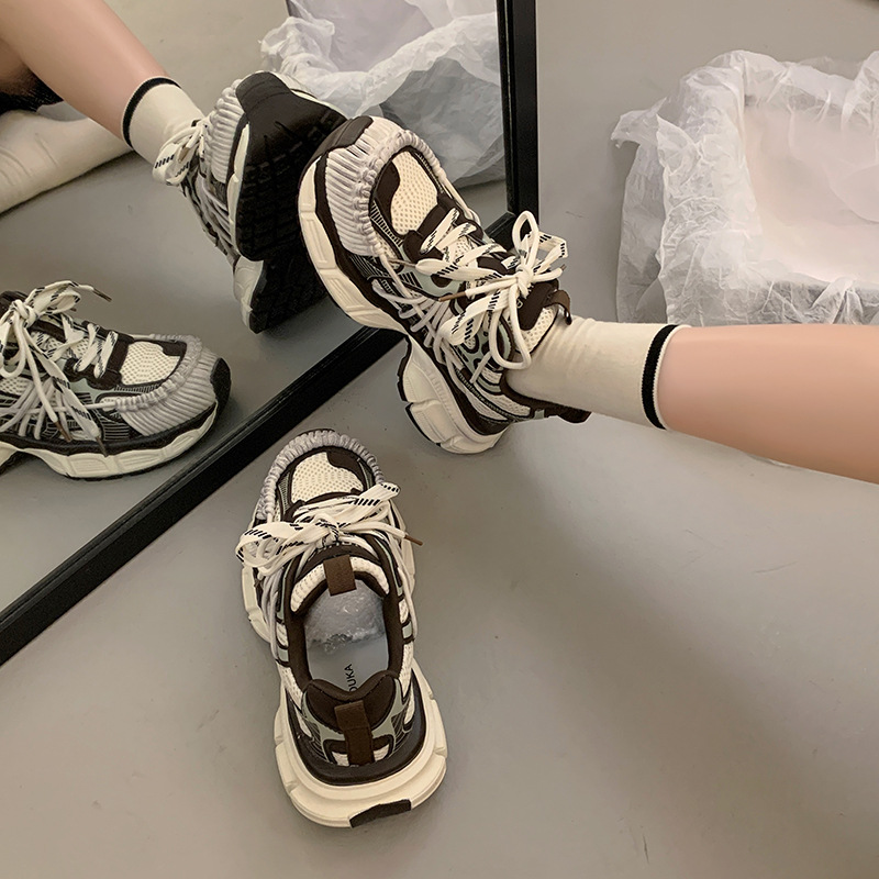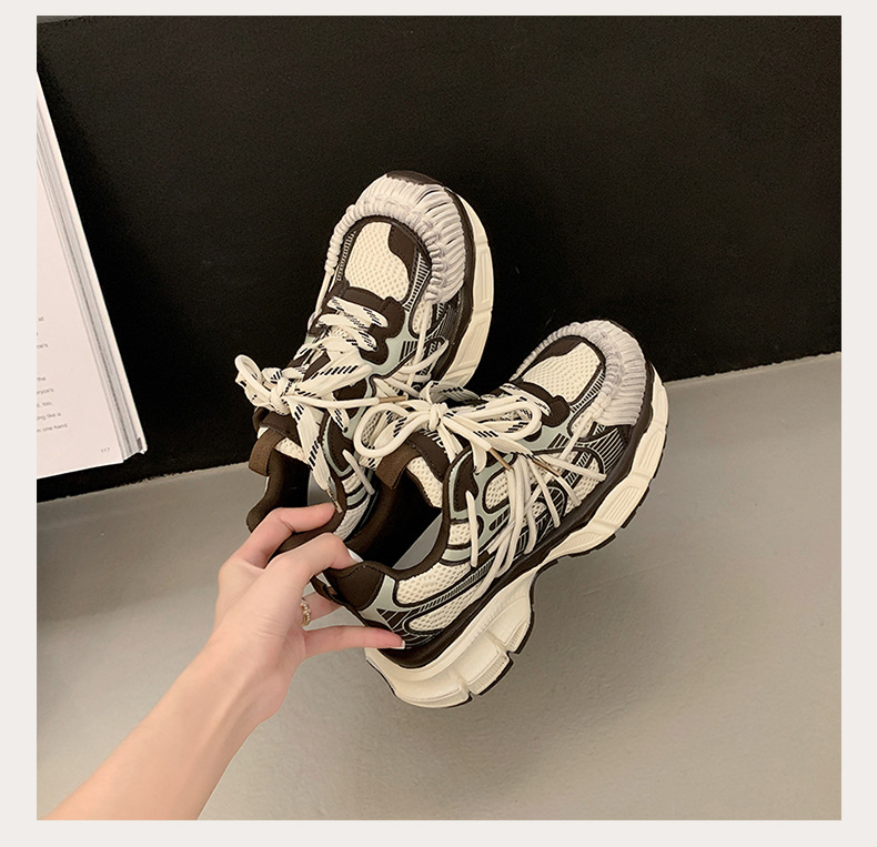 빈티지 캐주얼 신발 등산 스포츠 러닝화 2024 년 가을과 겨울 컬러 광택 늙은 여성의 두꺼운 톱니 신발