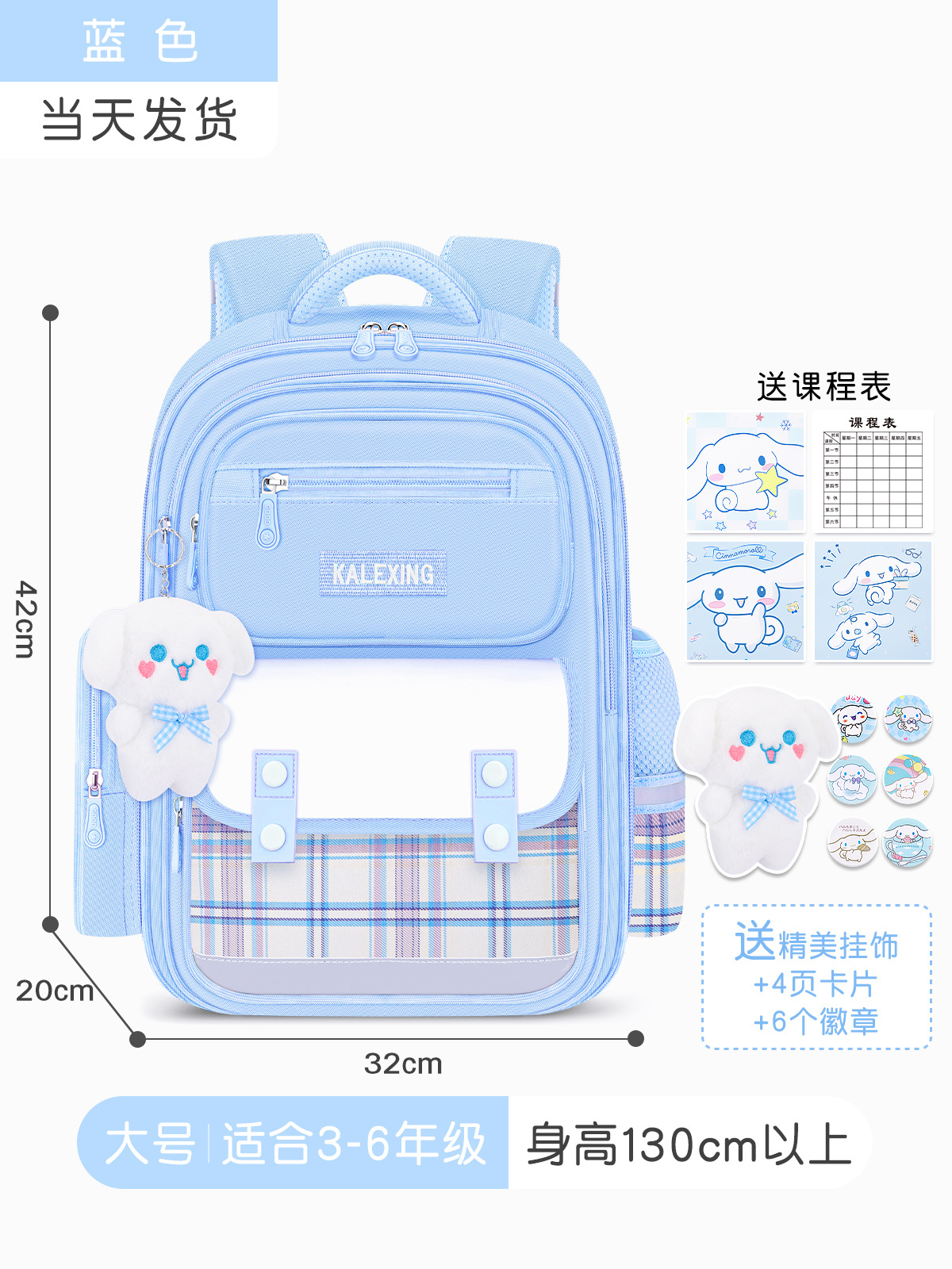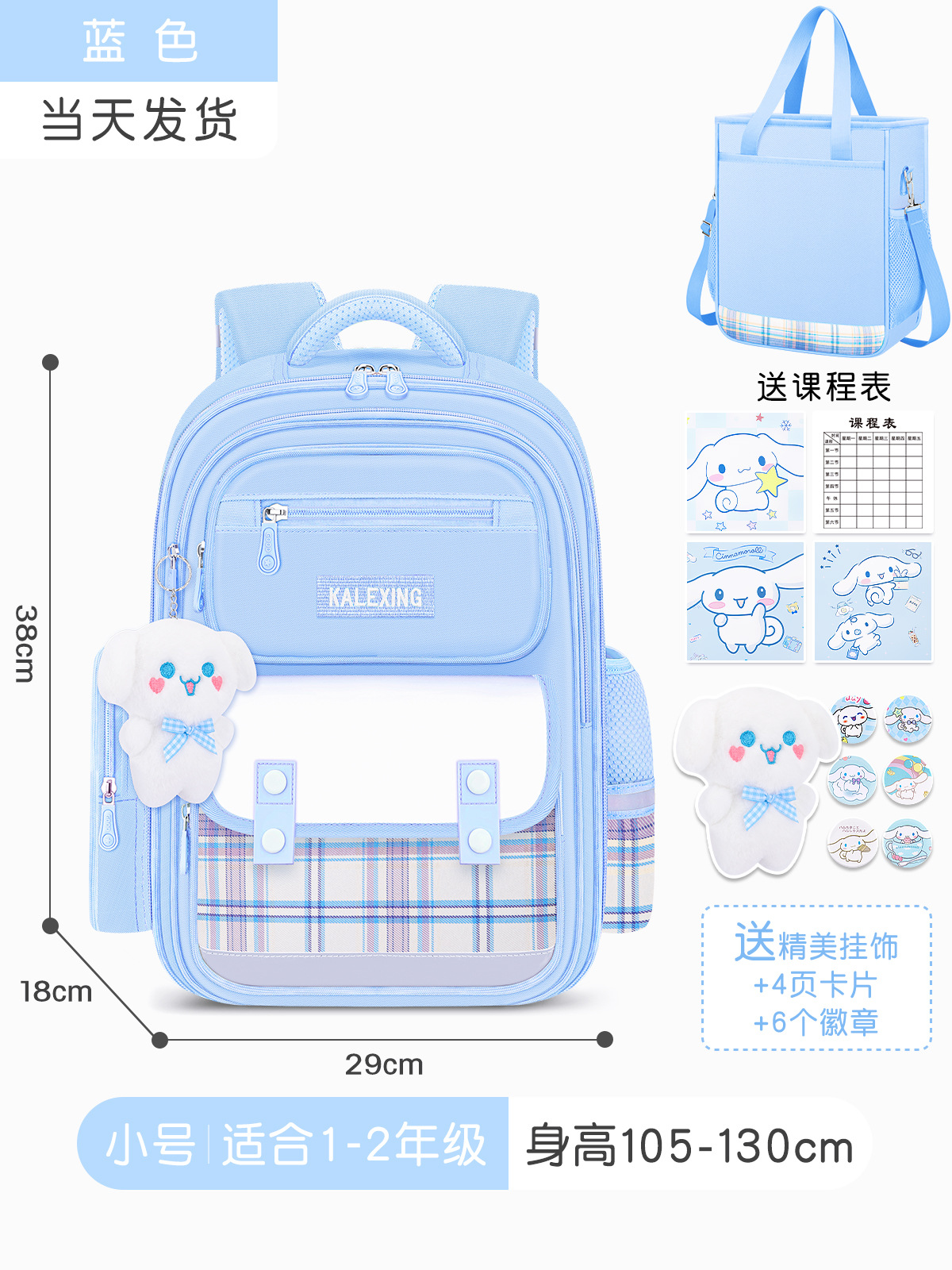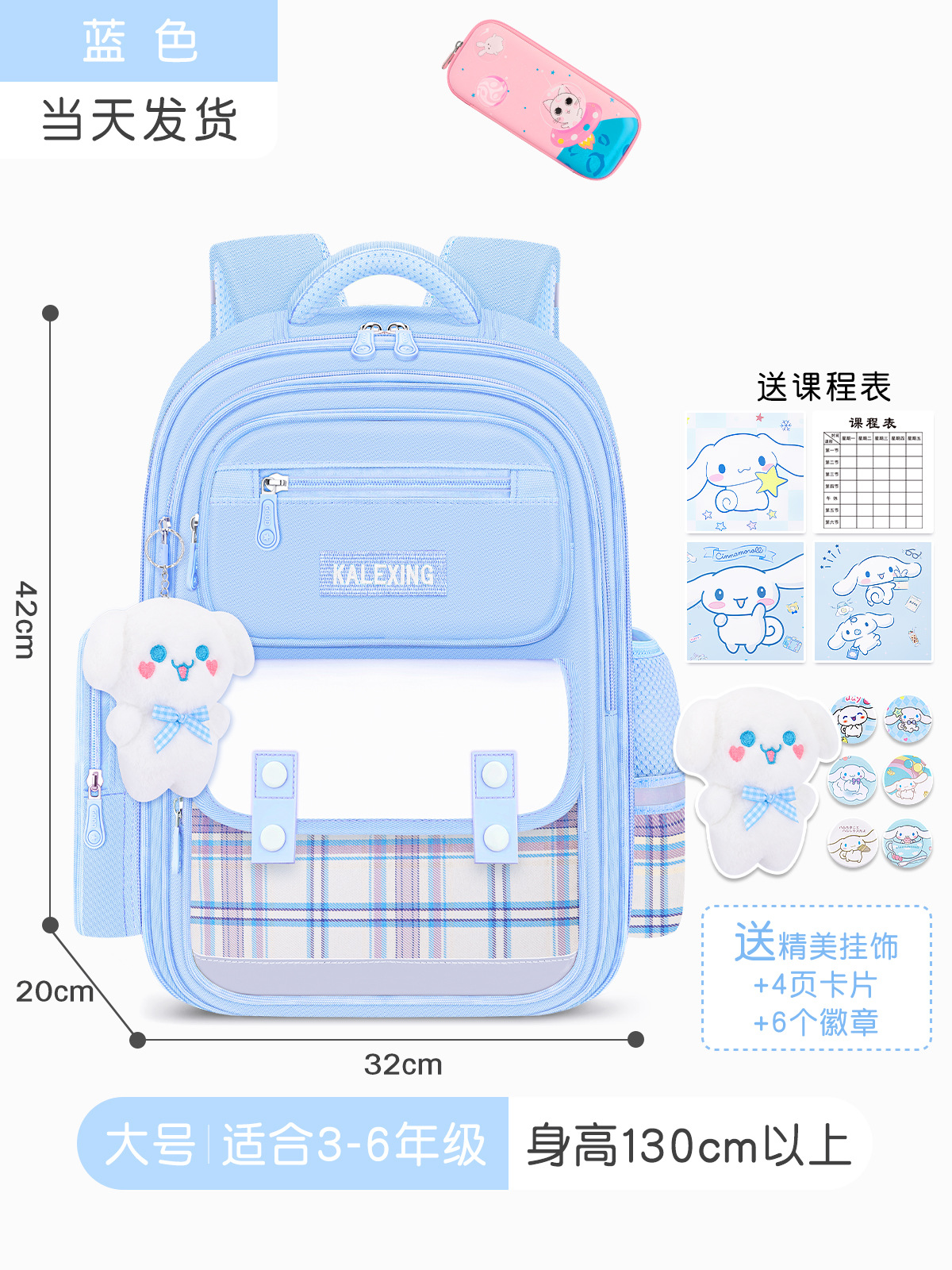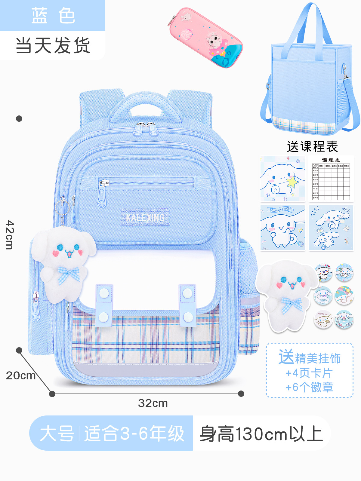 • 블루 라지 사이즈 + 문구 상자 + 수업료 가방 (배지 + 시나몬 개 펜던트 + 카드)