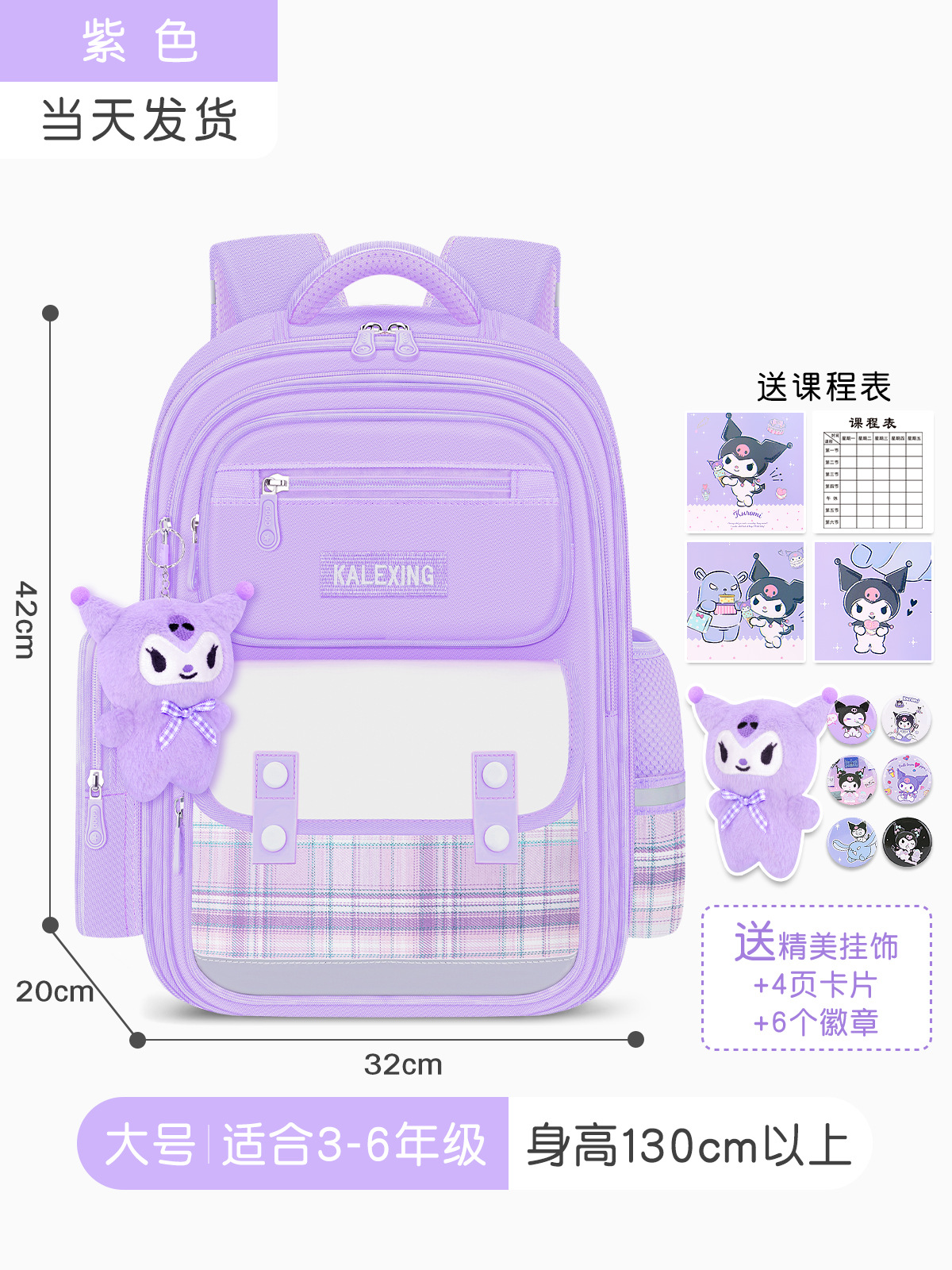• 보라색 대형 + 수업료 가방 (배지 + 쿠로미 펜던트 + 카드)