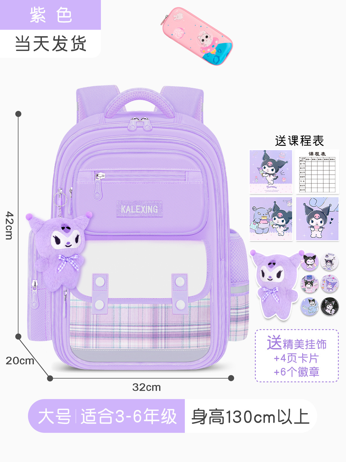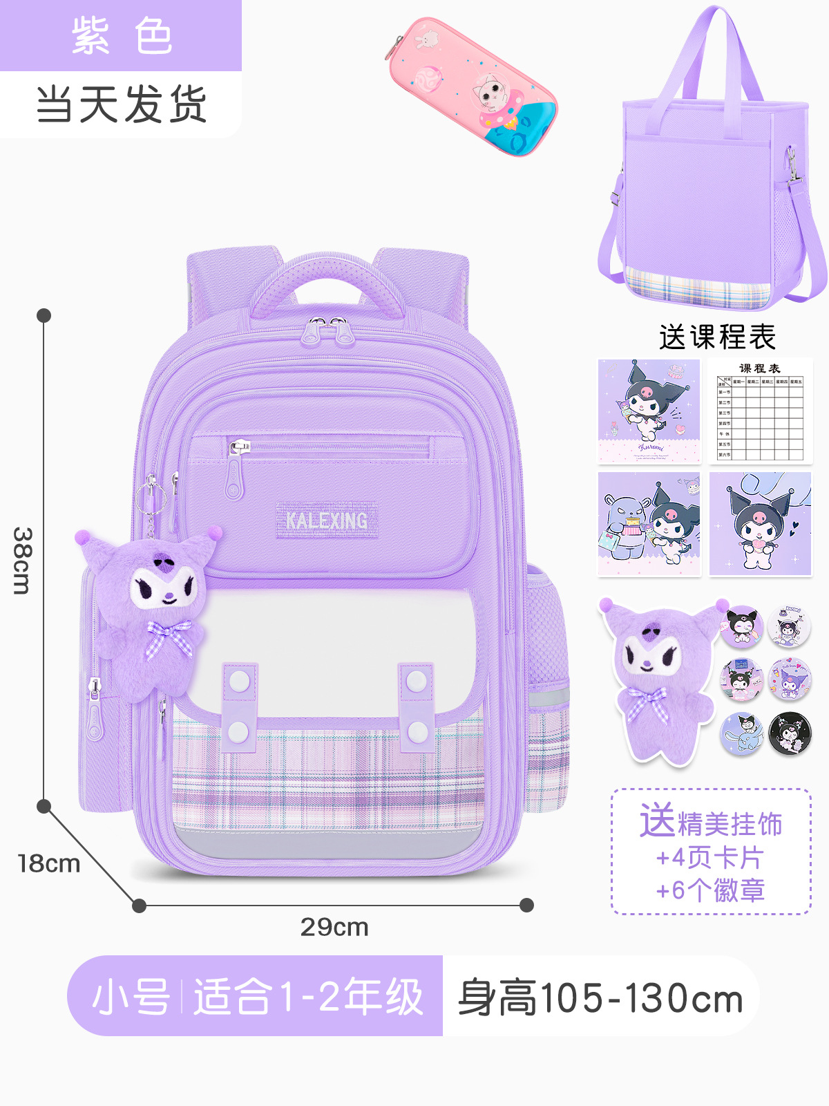 • 보라색 대형 + 문구 상자 + 과외 가방 (배지 + 쿠로미 펜던트 + 카드)
