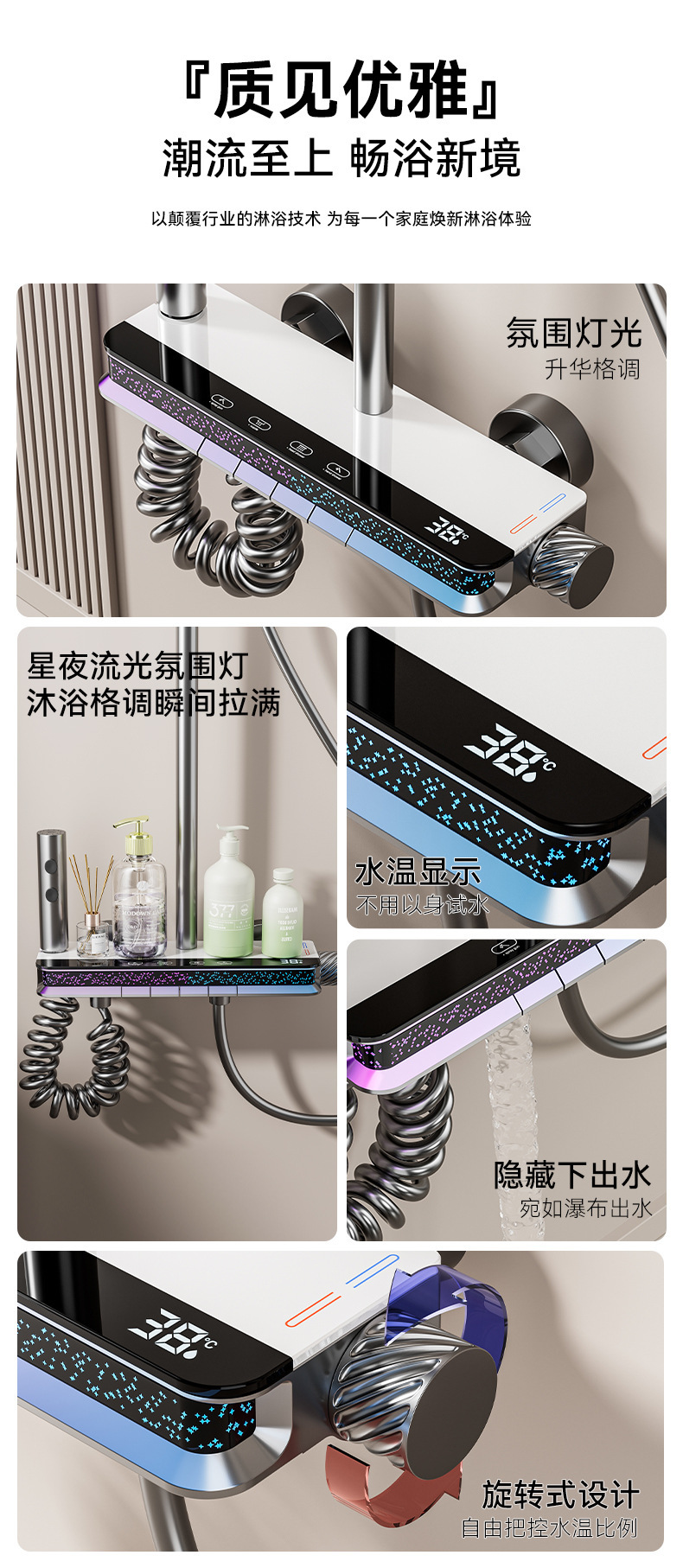 카이투오 순동 샤워기 세트 가정용 욕실 고압 스프레이 노즐 욕실 샤워기 온도 조절 기능