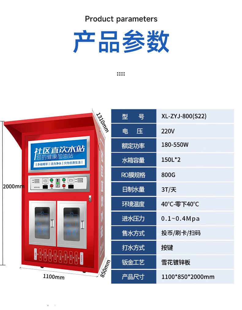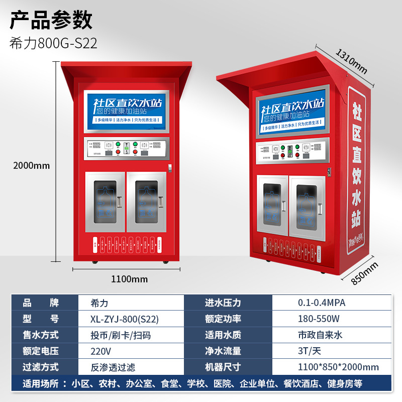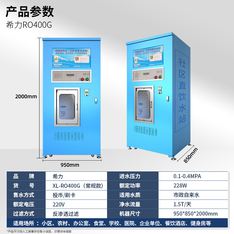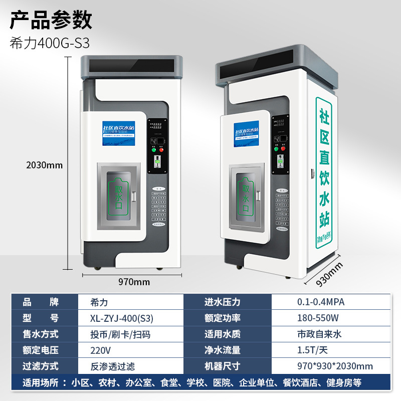시리 자동판매기 RO 역삼투압 정수기 커뮤니티 자가운영 동전/스캔코드/카드 결제 직수형 정수기