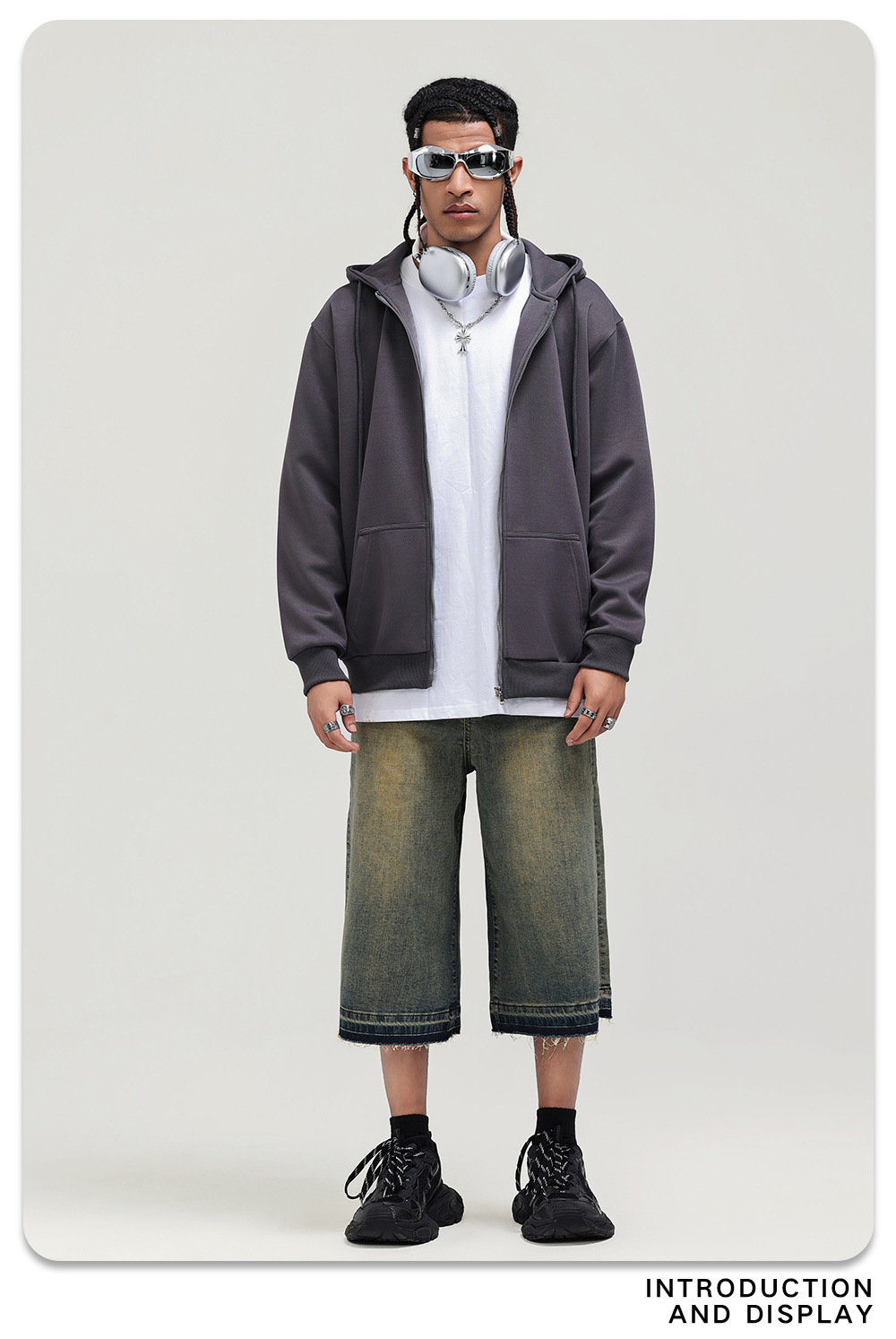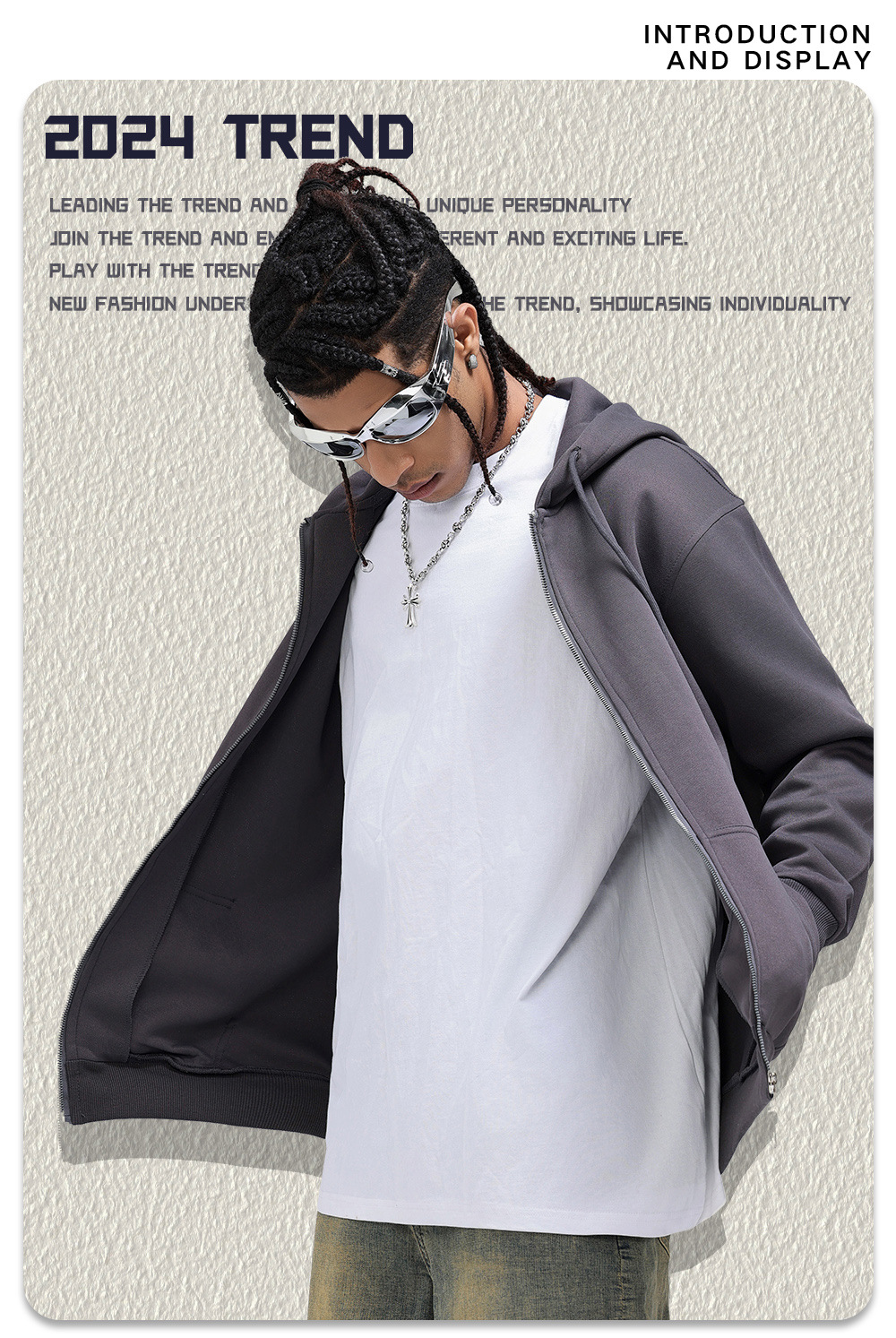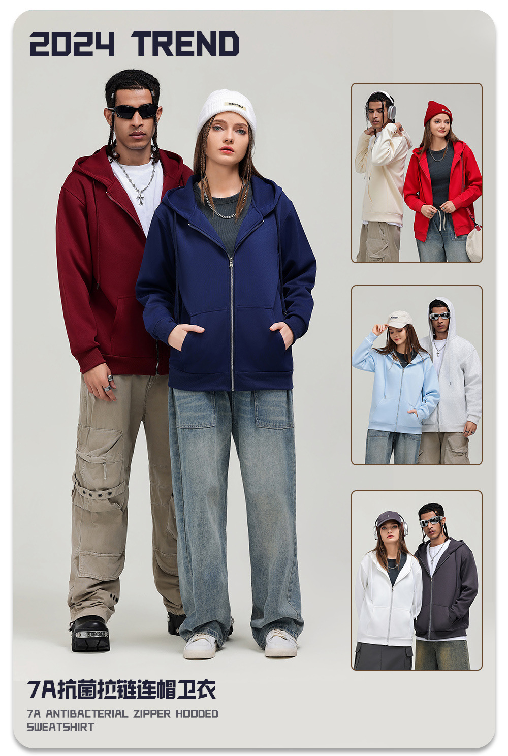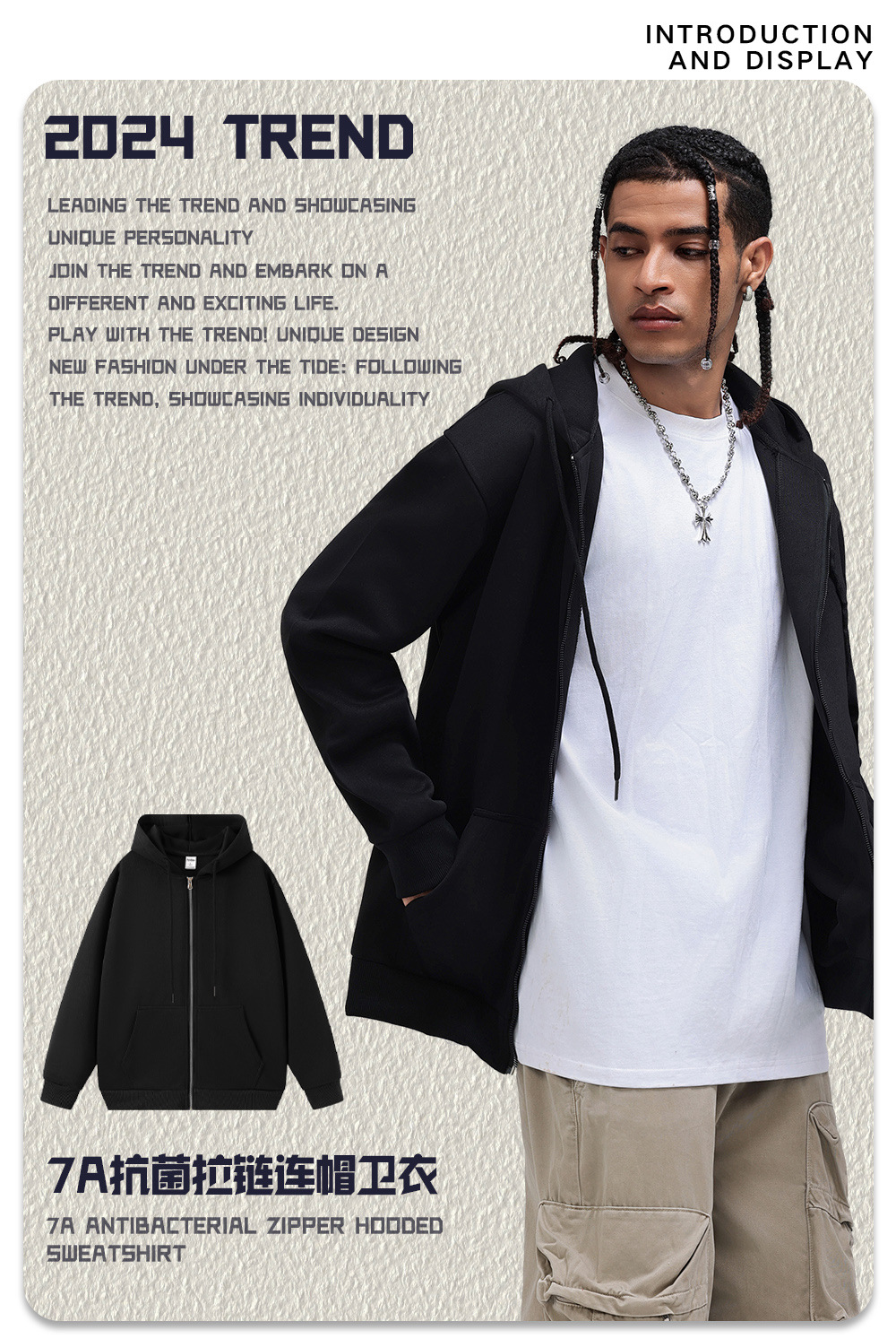 2024 가을과 겨울 7A 항균 카디건 스웨터 남자 봄과 가을 미국 커플의 더블 풀 올 매치 솔리드 컬러 트렌디 브랜드 후드 자켓