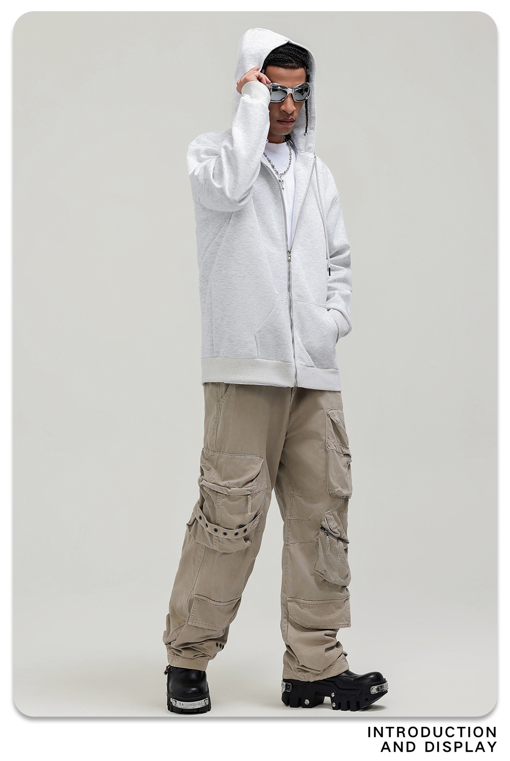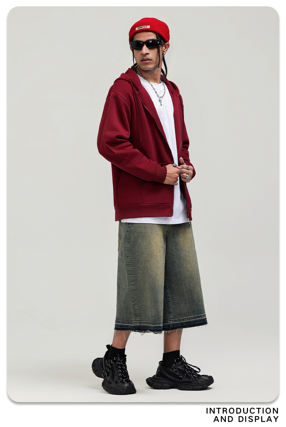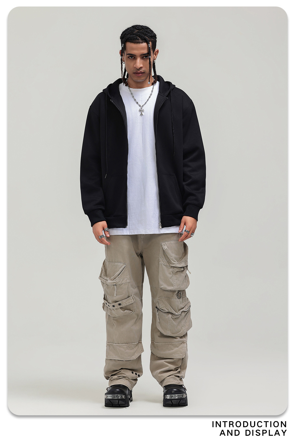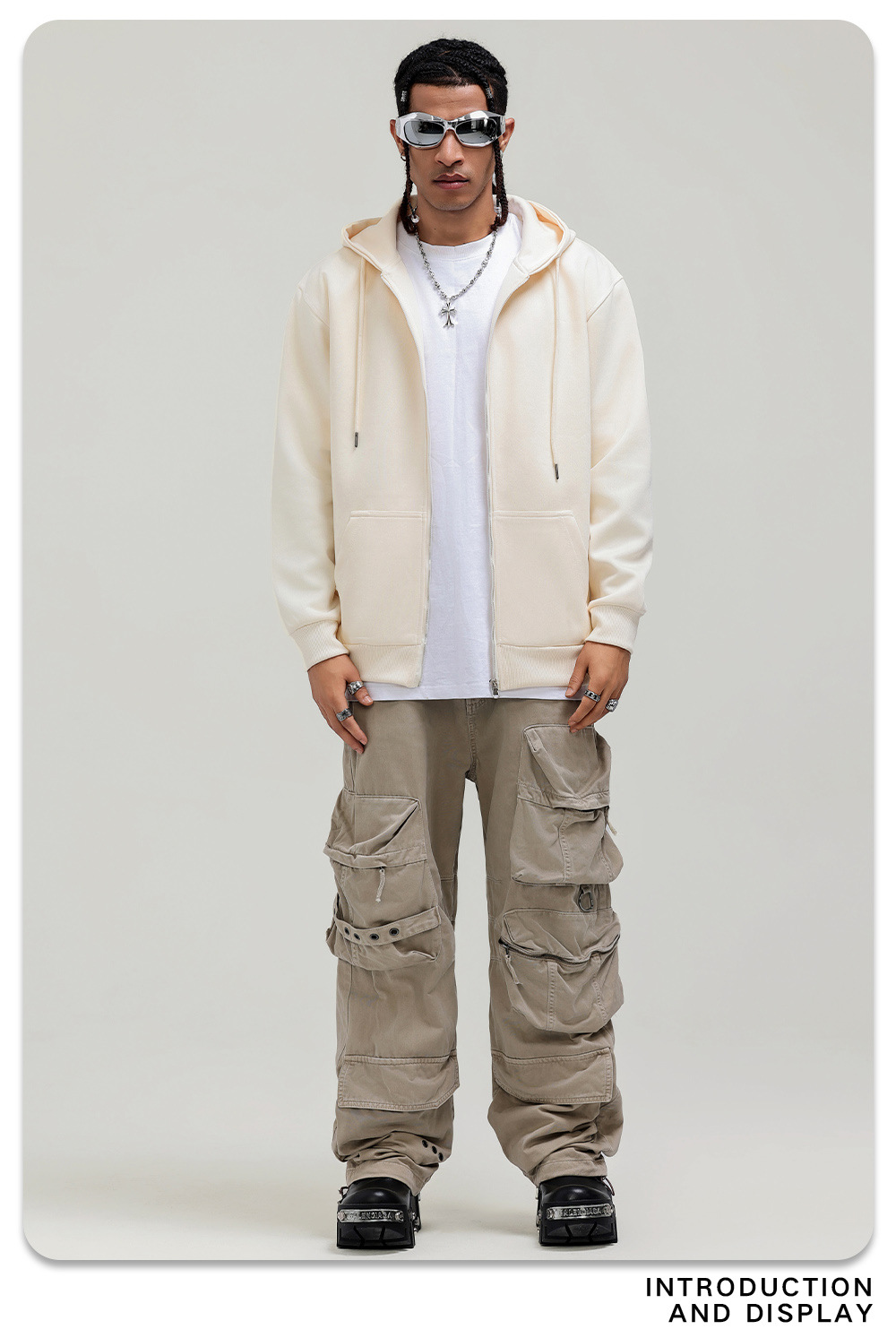 2024 가을과 겨울 7A 항균 카디건 스웨터 남자 봄과 가을 미국 커플의 더블 풀 올 매치 솔리드 컬러 트렌디 브랜드 후드 자켓