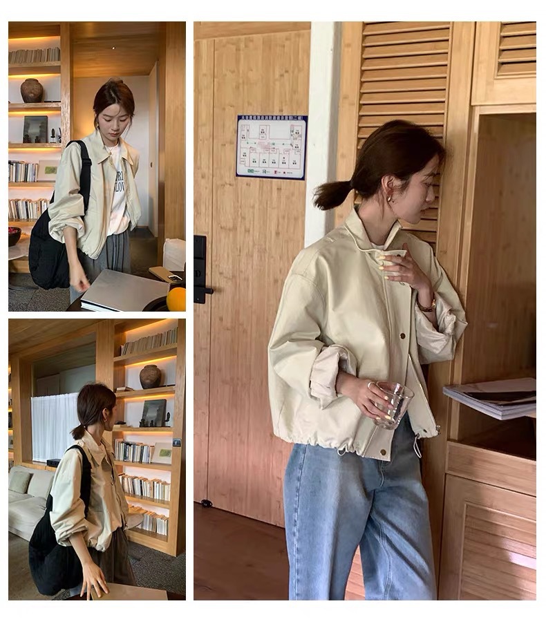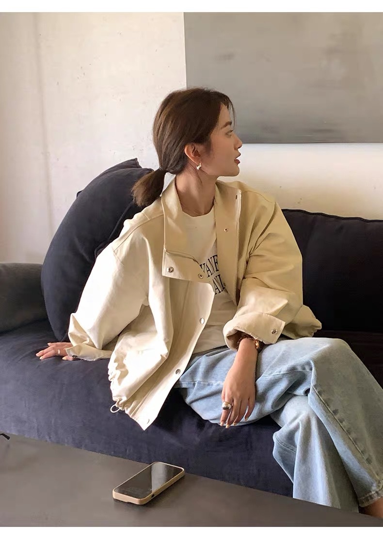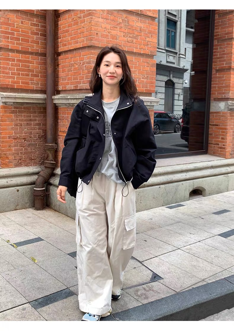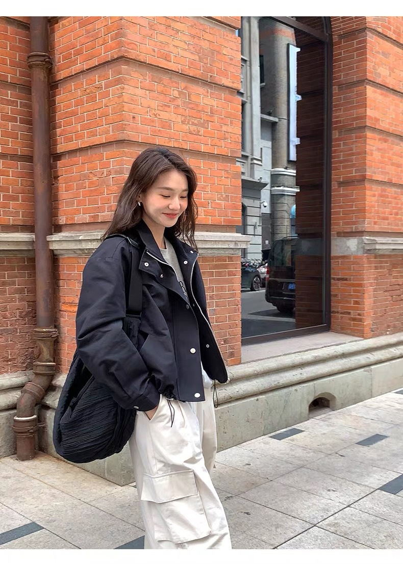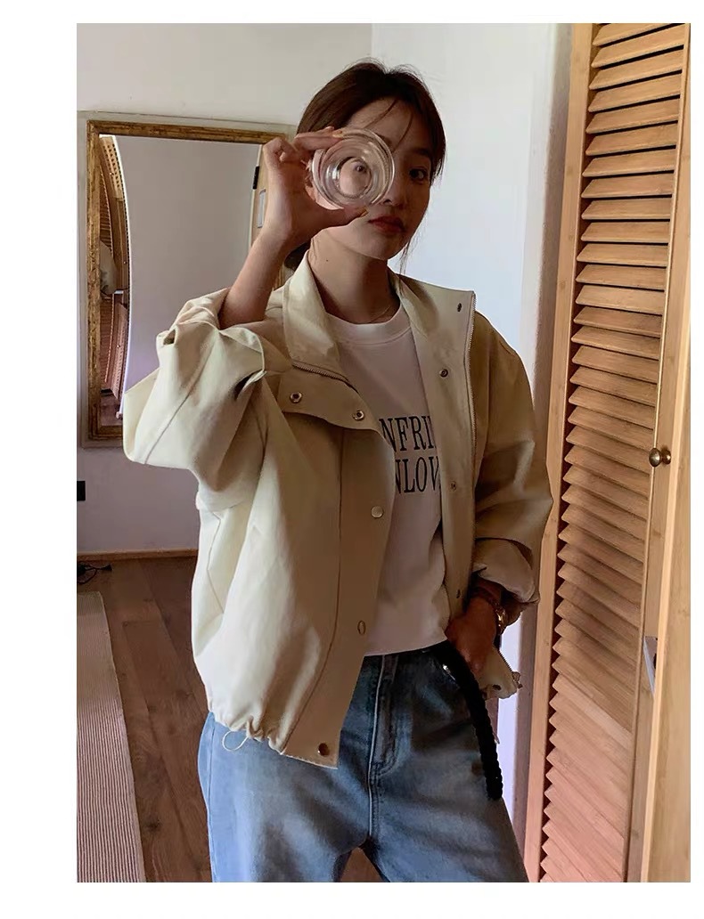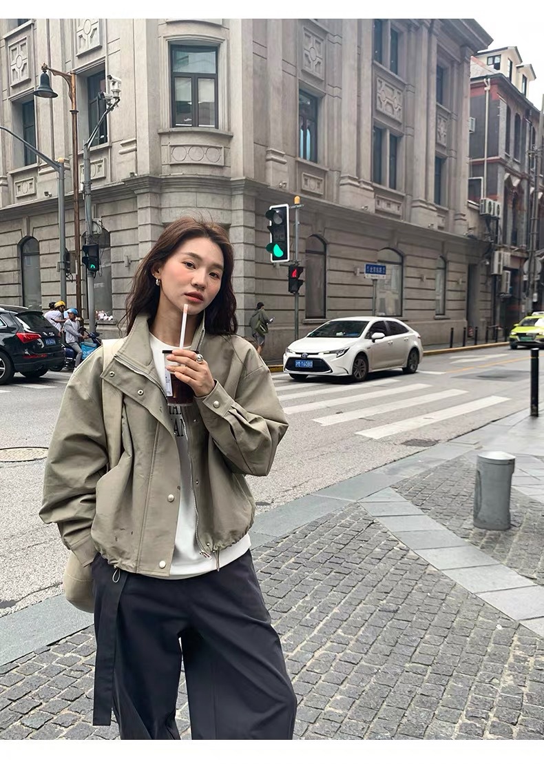 여자 쇼트 윈드브레이커 재킷, 세로 칼라 올매치 한국식 슬림 가을 · 겨울 새 스타일 쁘띠 2024 재킷 카키스토어 가기