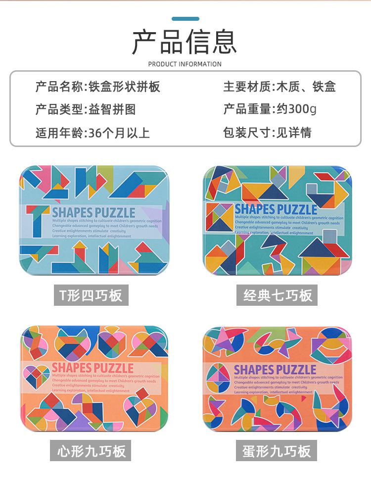 창조적 인 다채로운 철 상자 Tangram 어린이 조기 교육 Tetrapagy T-word 퍼즐 Diy 블록 퍼즐 장난감스토어 가기