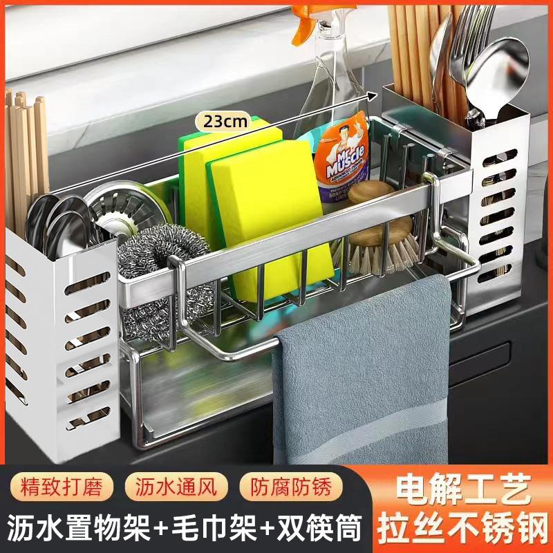 스테인레스 스틸 주방 랙 다기능 걸레 배수 랙 가정용 싱크 스폰지 식기 세척액 수조 보관 랙