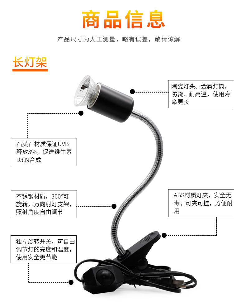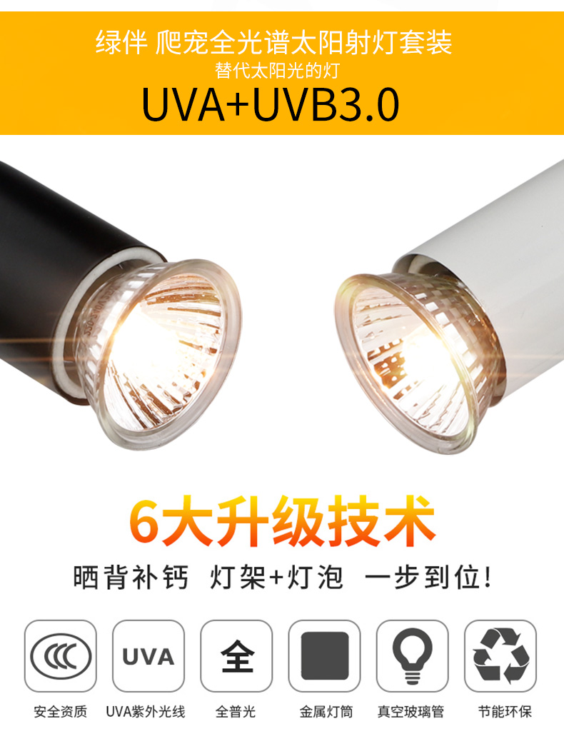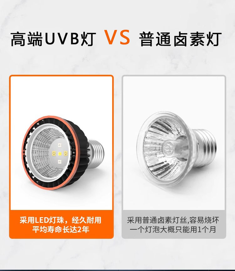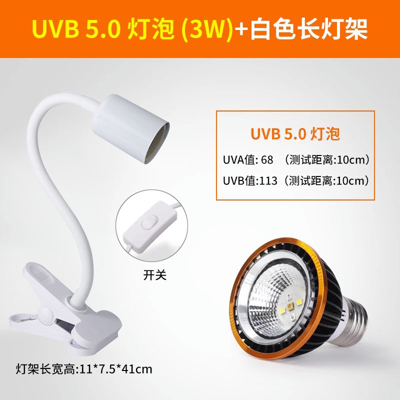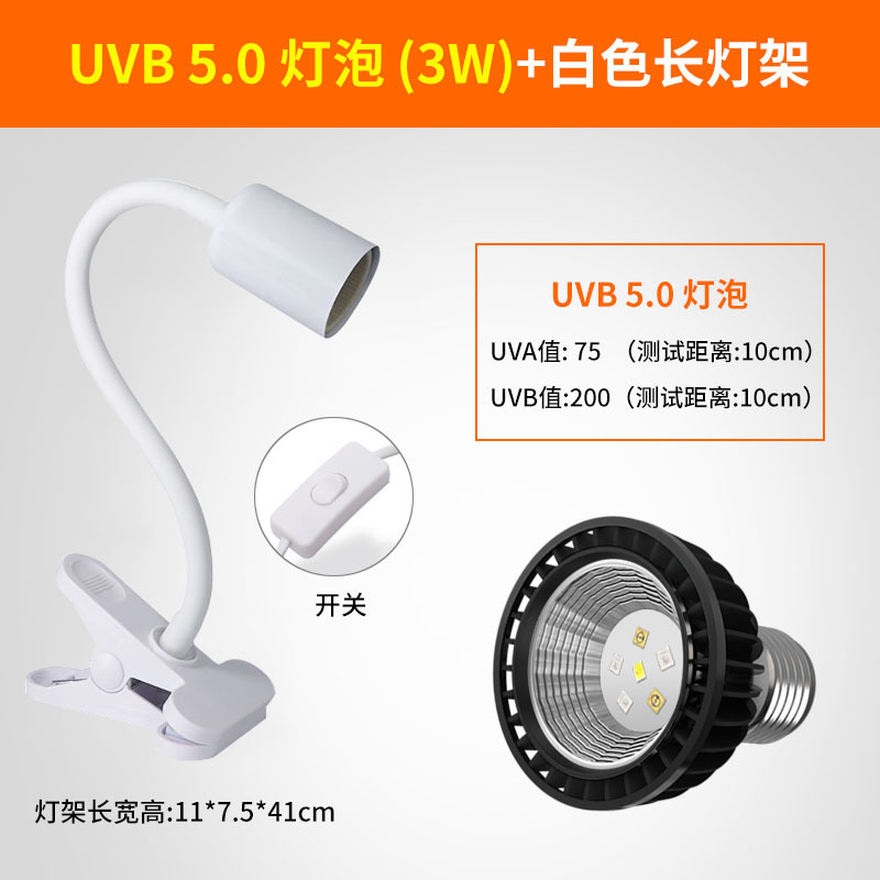 • 고급 UVB 램프 5.0 검정색 테두리 + 흰색 긴 램프 스탠드(일반 스위치)