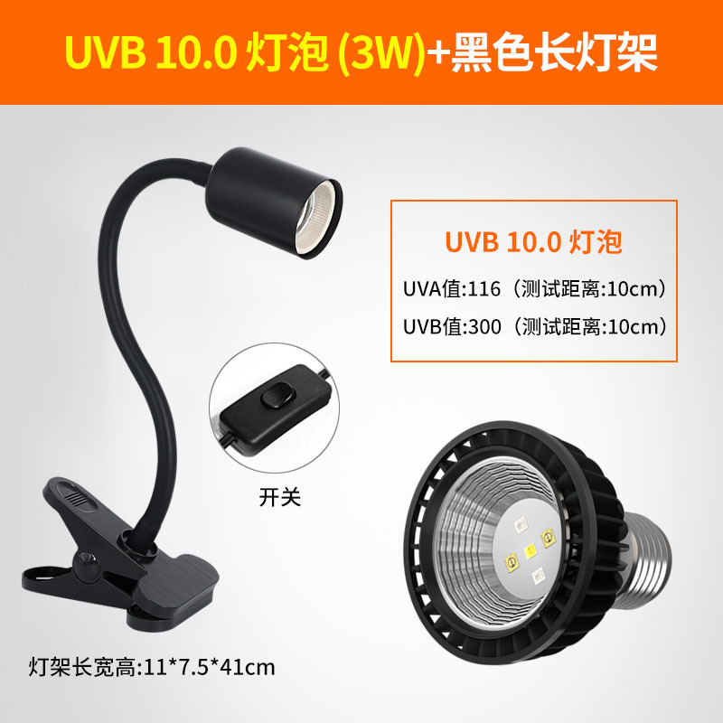• 고급 UVB 램프 10.0 검정색 테두리 + 검정색 긴 램프 스탠드(일반 스위치)