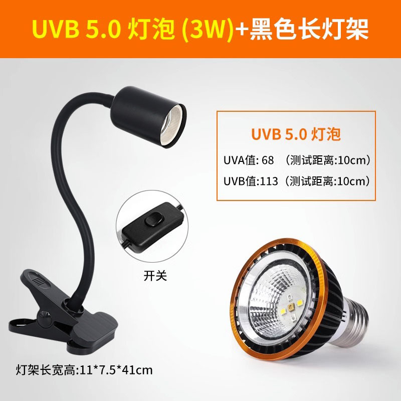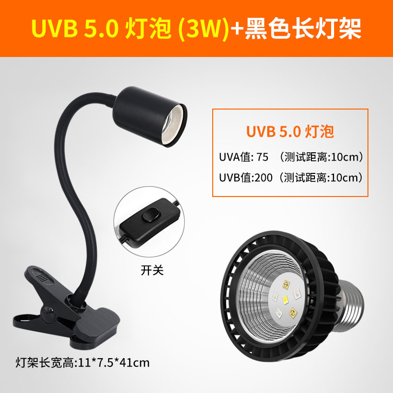 • 고급 UVB 램프 5.0 검정색 테두리 + 검정색 긴 램프 스탠드(일반 스위치)
