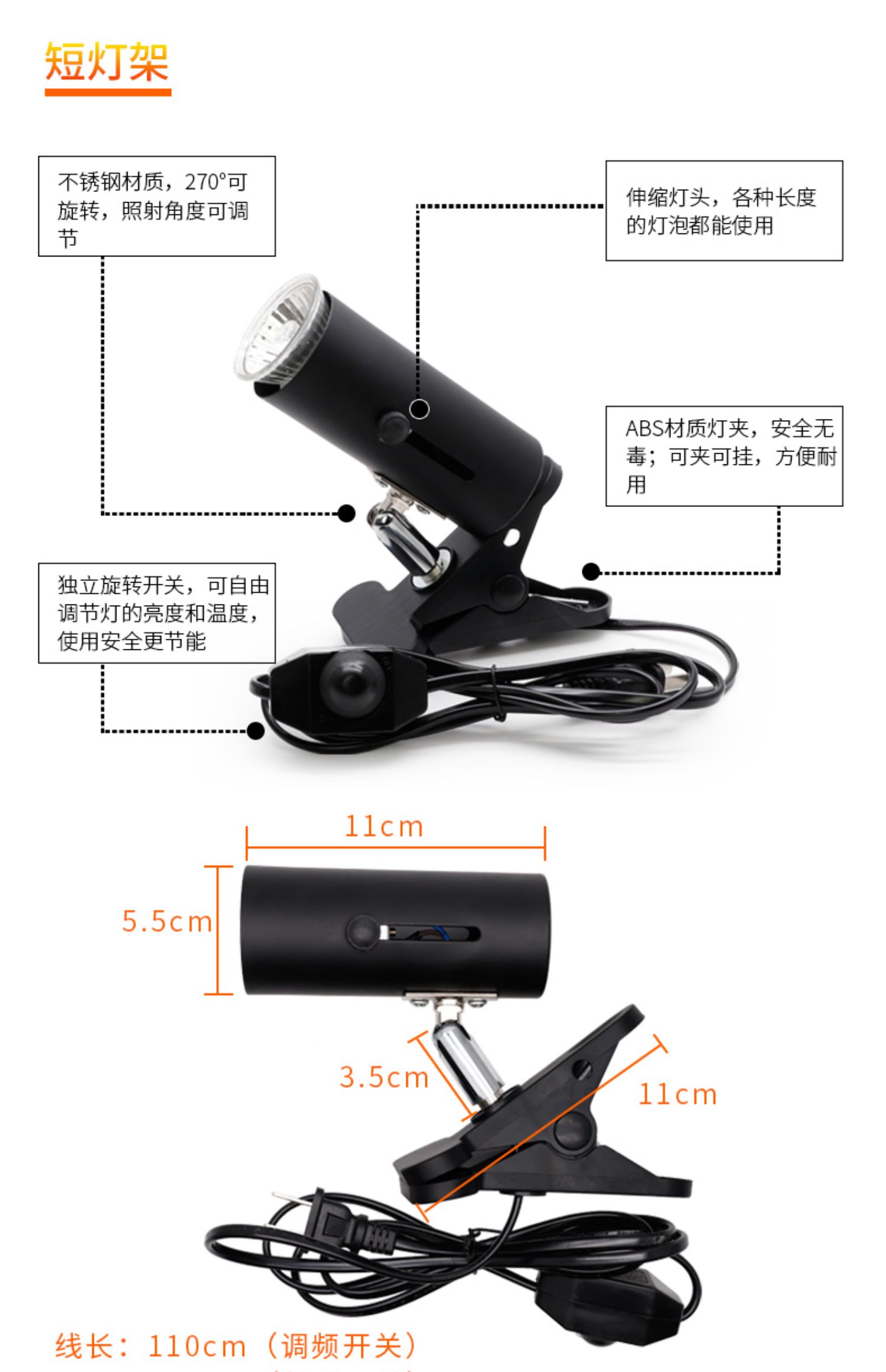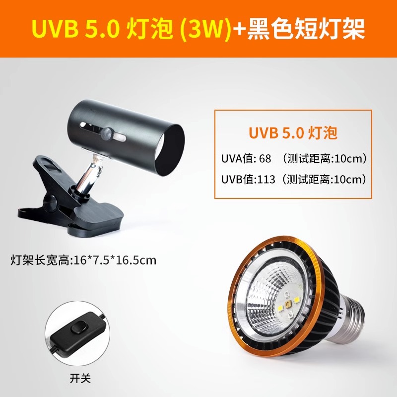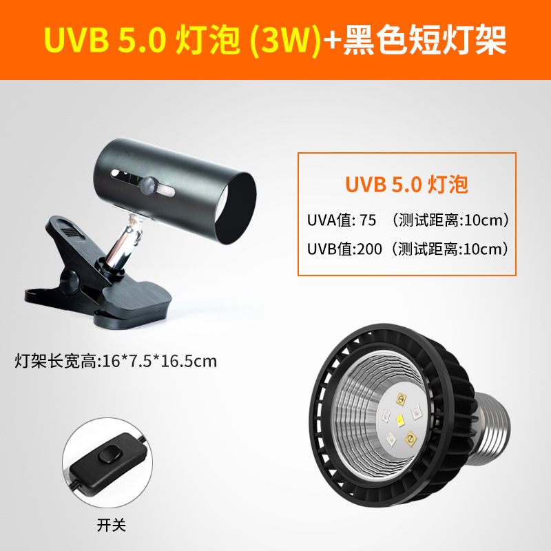 • 고급 UVB 램프 5.0 검정색 테두리 + 검정색 짧은 램프 스탠드(일반 스위치)