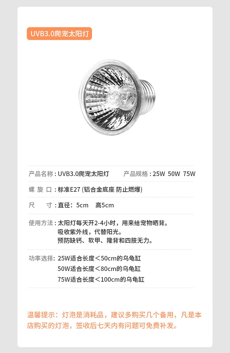 거북이 태양 백라이트 전체 스펙트럼 태양 램프 uvb 거북이 탱크 특수 램프 uva 난방 전구 등반 애완 동물 빛 다시 태양 거북이 램프스토어 가기