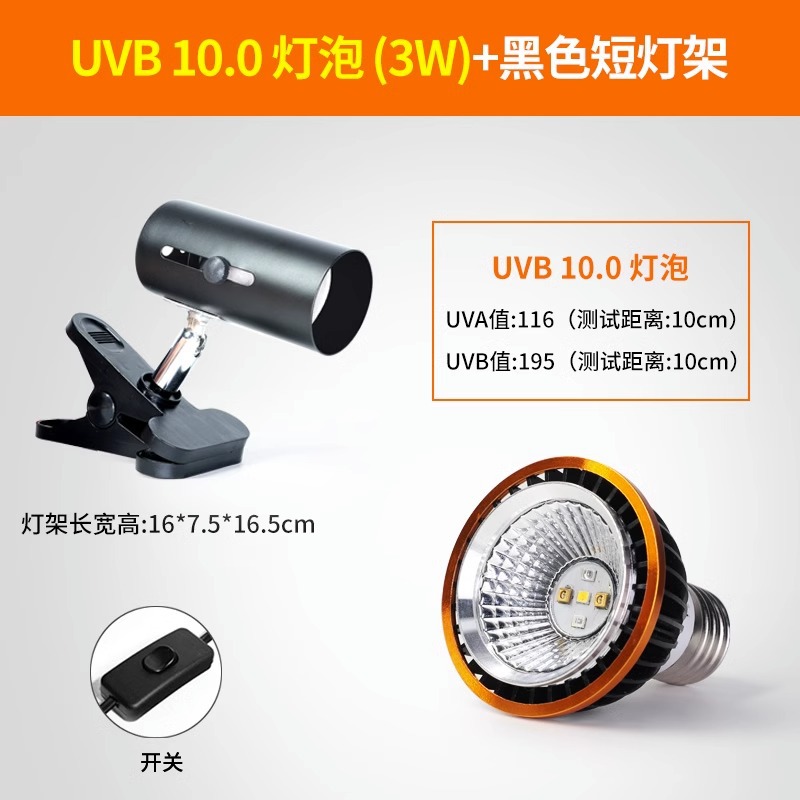 • 고급 UVB 램프 10.0 검정색 테두리 + 검정색 짧은 램프 스탠드(일반 스위치)