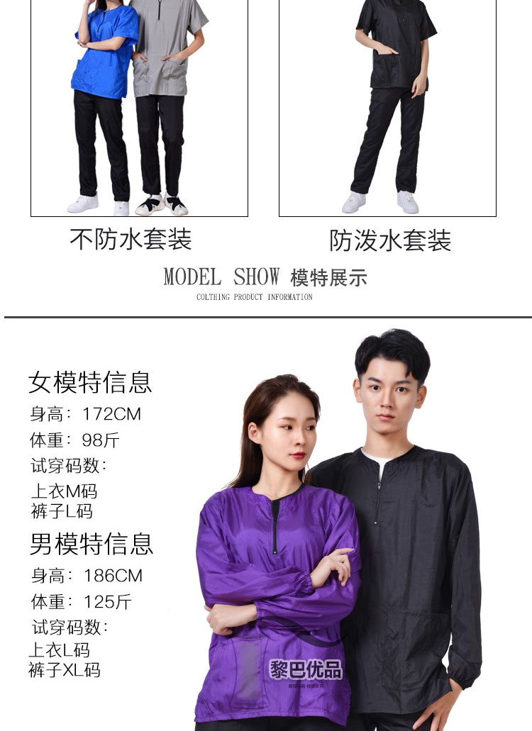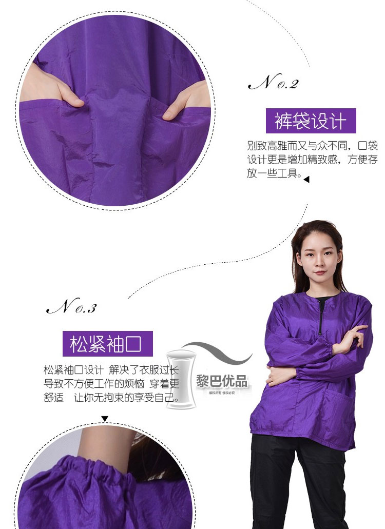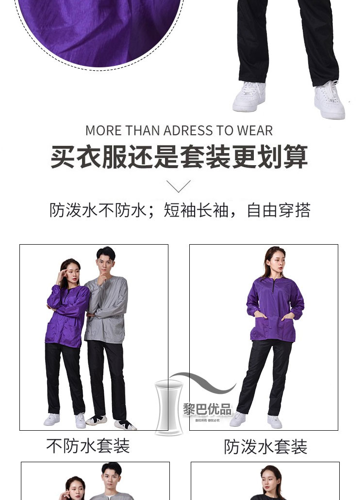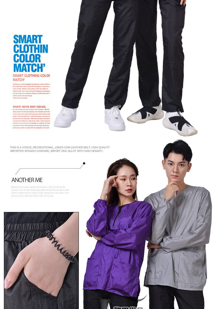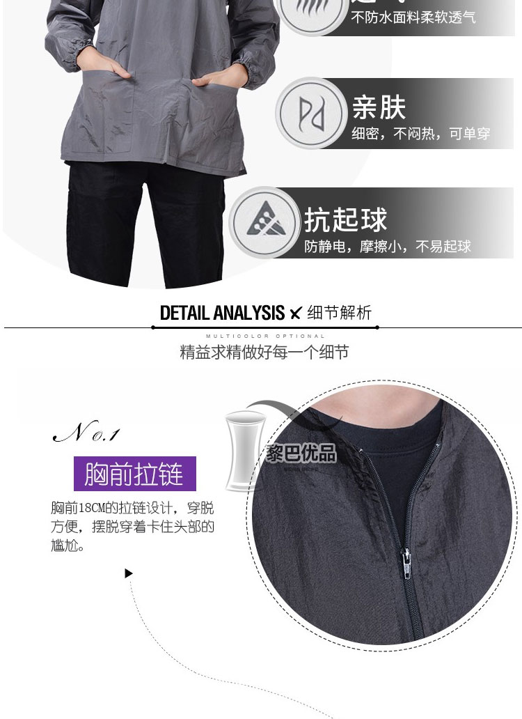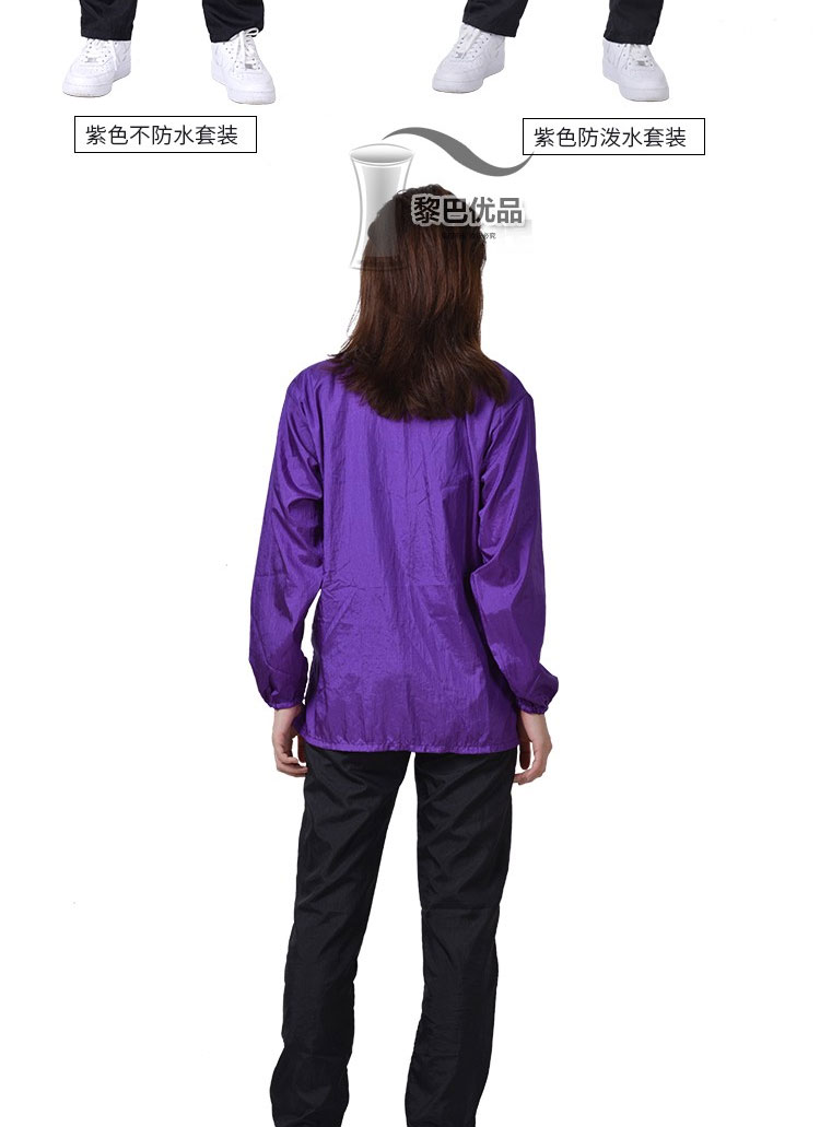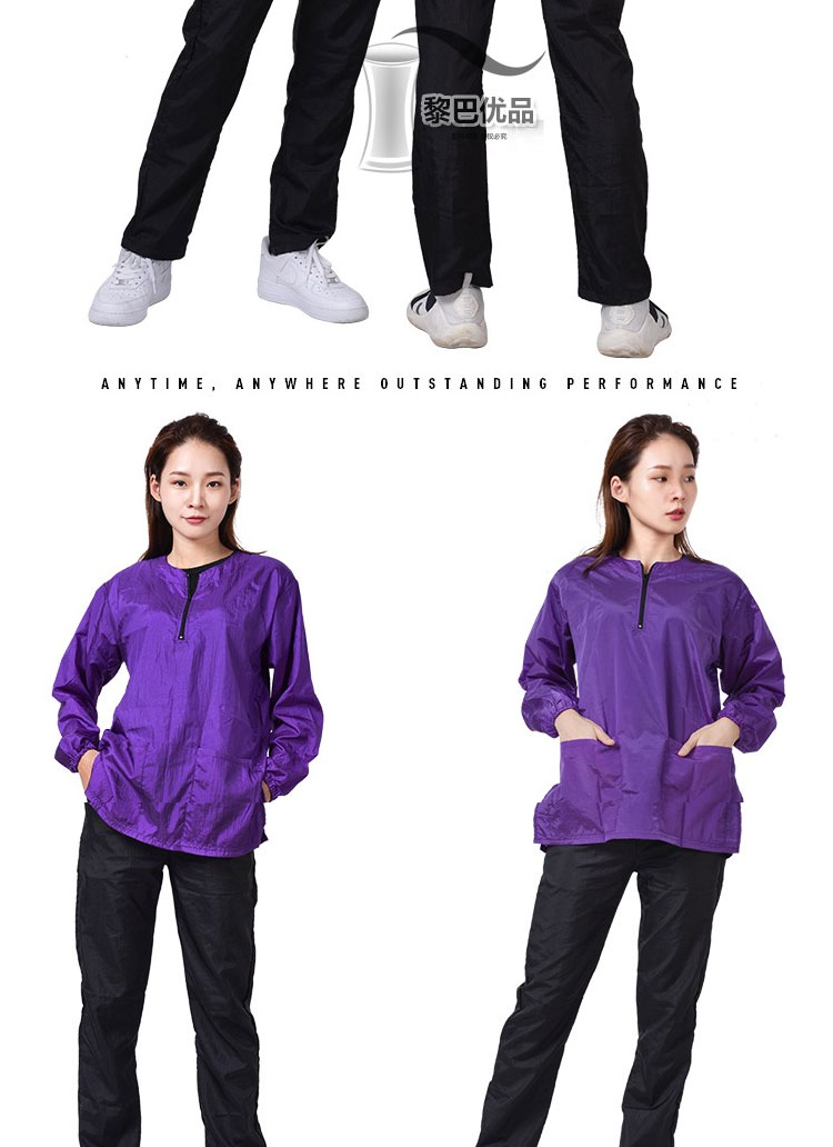 • 보라색 긴 소매 지퍼는 방수가 되지 않습니다.