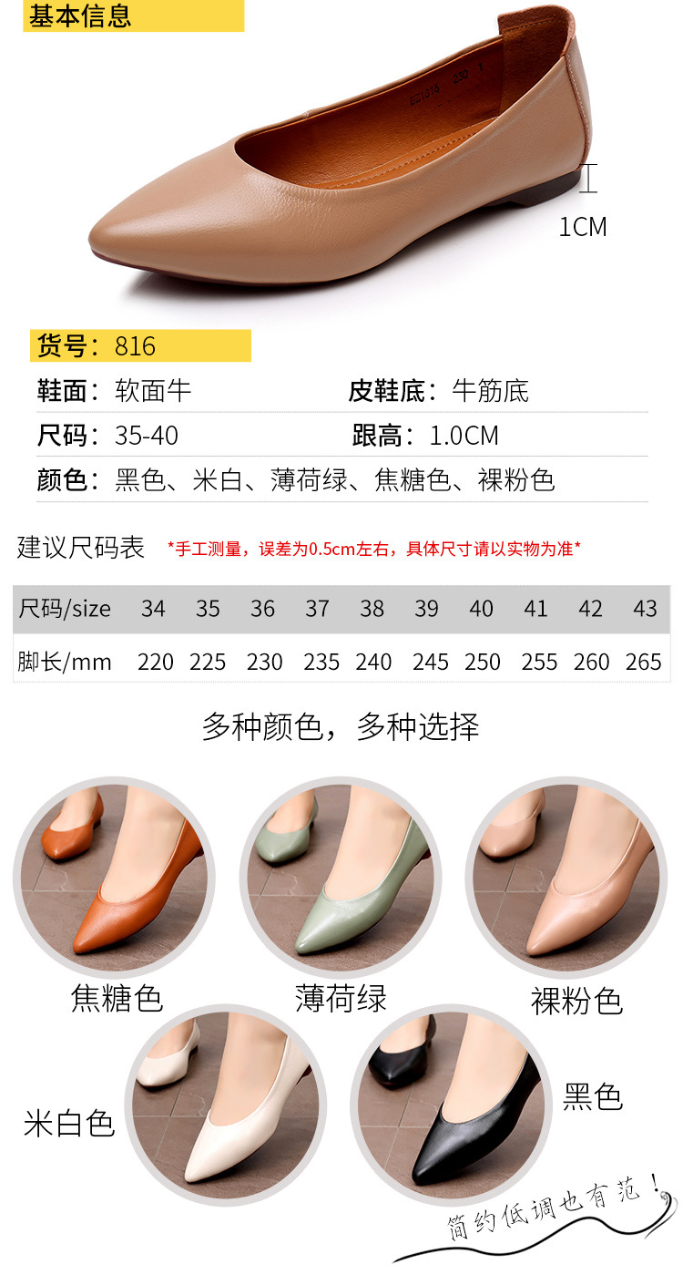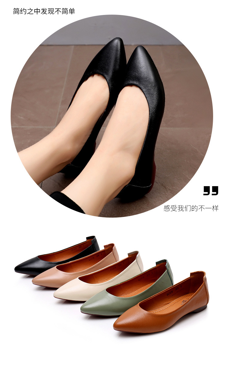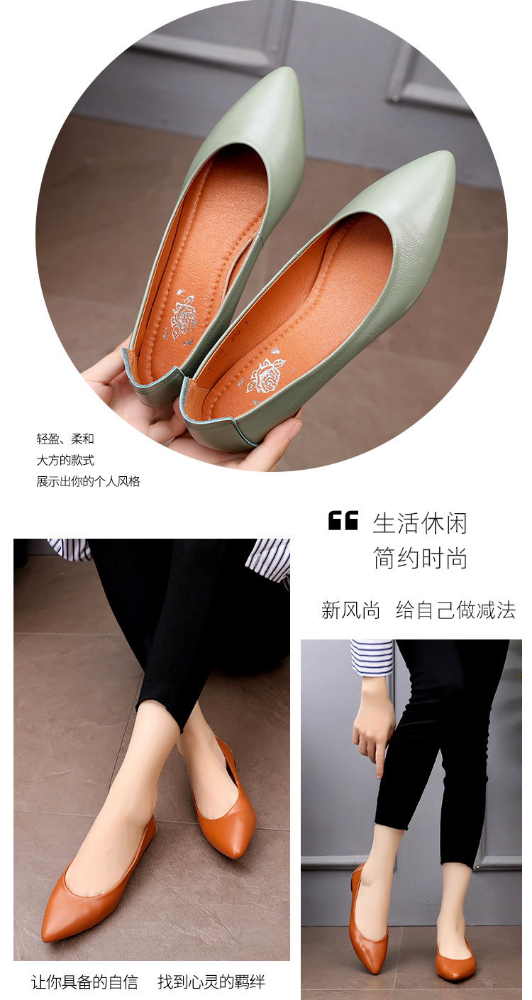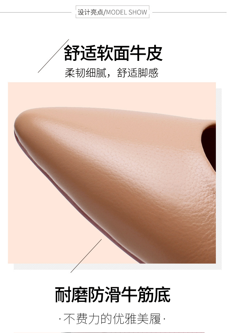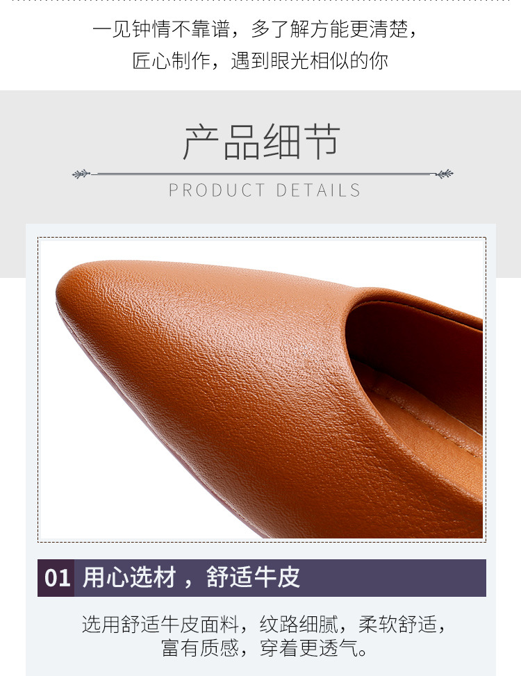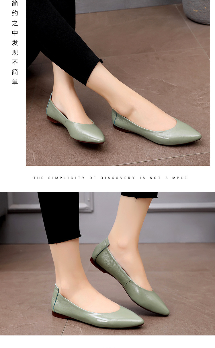 가을 2024 새로운 평면 어머니 신발 여성의 부드러운 가죽 소프트 하단 상단 레이어 Cowhide 포인팅 얕은 입 페달스토어 가기