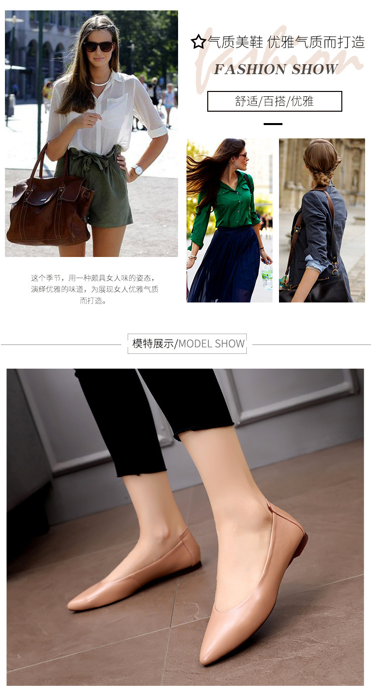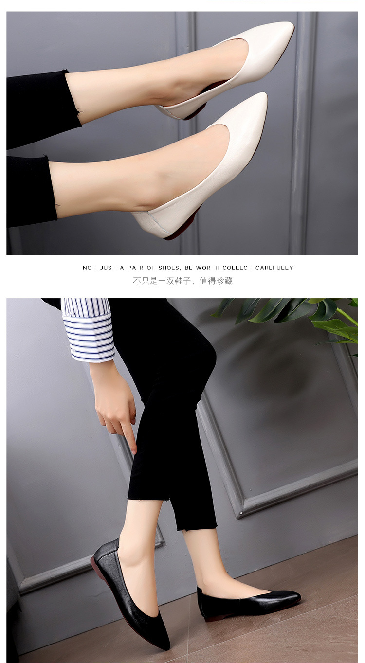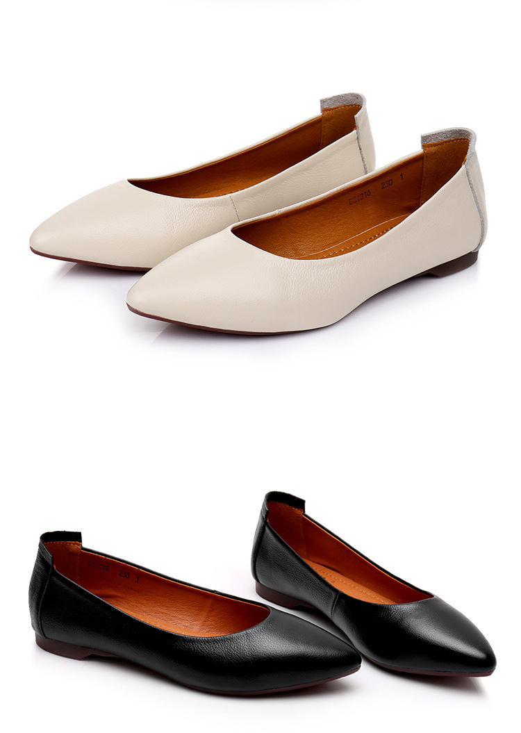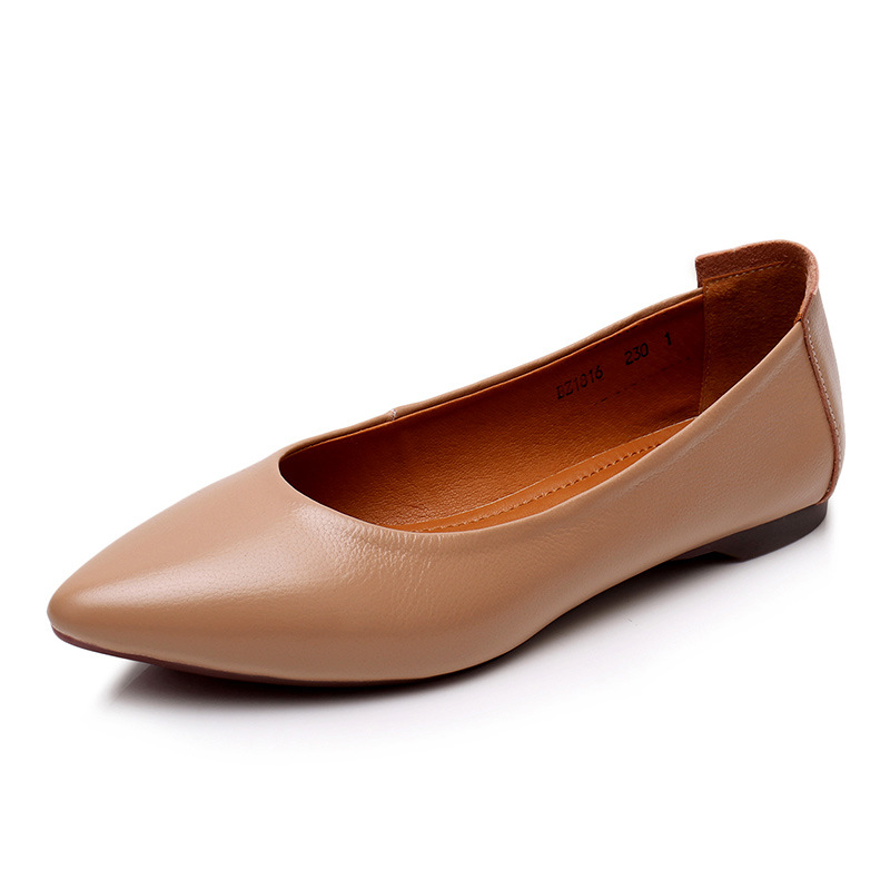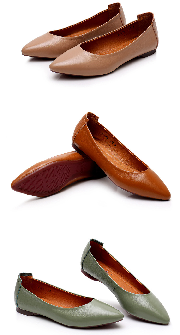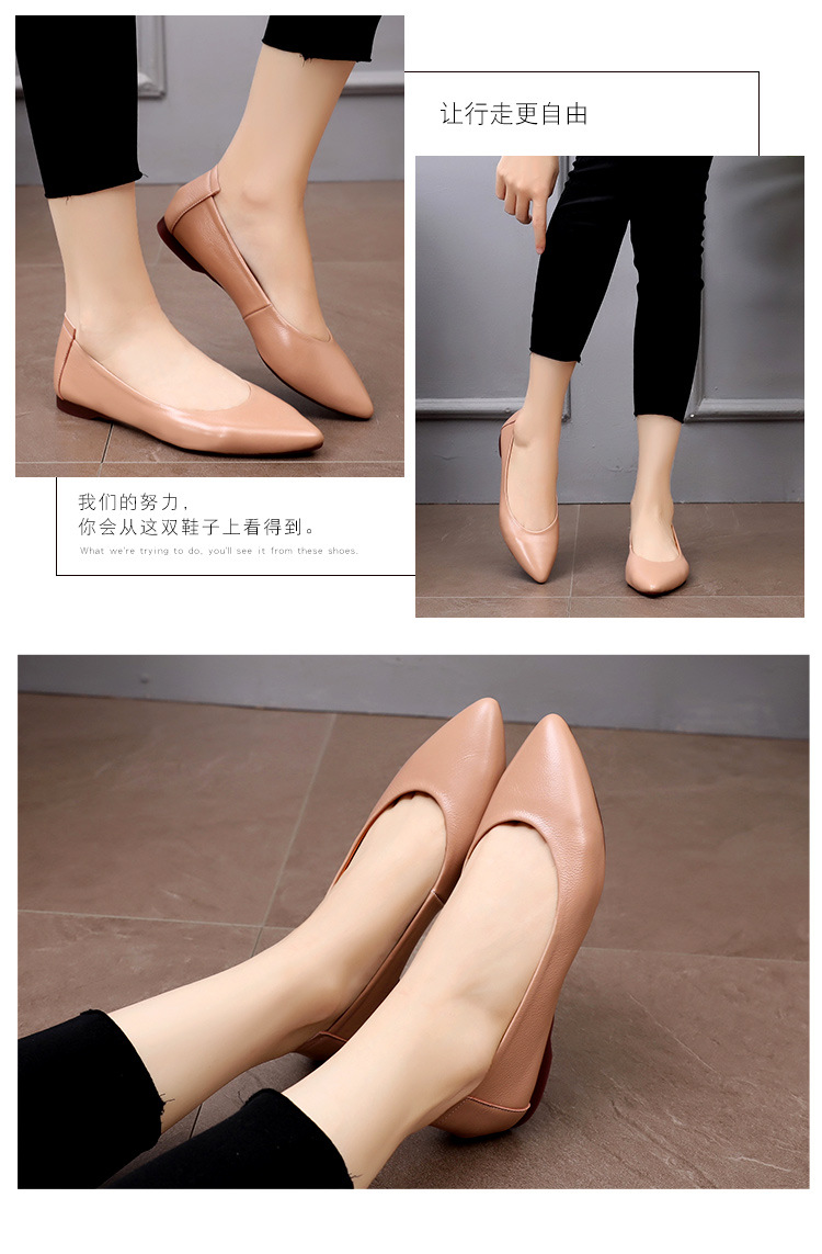 가을 2024 새로운 평면 어머니 신발 여성의 부드러운 가죽 소프트 하단 상단 레이어 Cowhide 포인팅 얕은 입 페달스토어 가기
