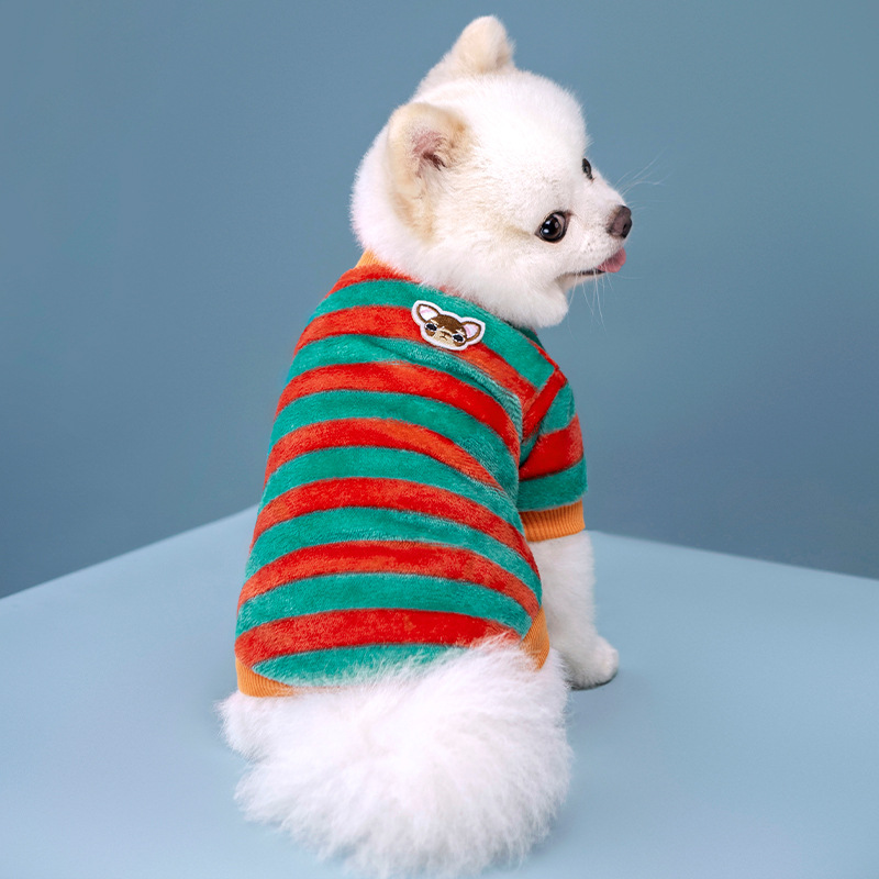 애완 동물 옷 가을과 겨울 무지개 줄무늬 솜털 옷 2 피트 따뜻한 테디 고양이 개 의류 애완 동물 용품 도매