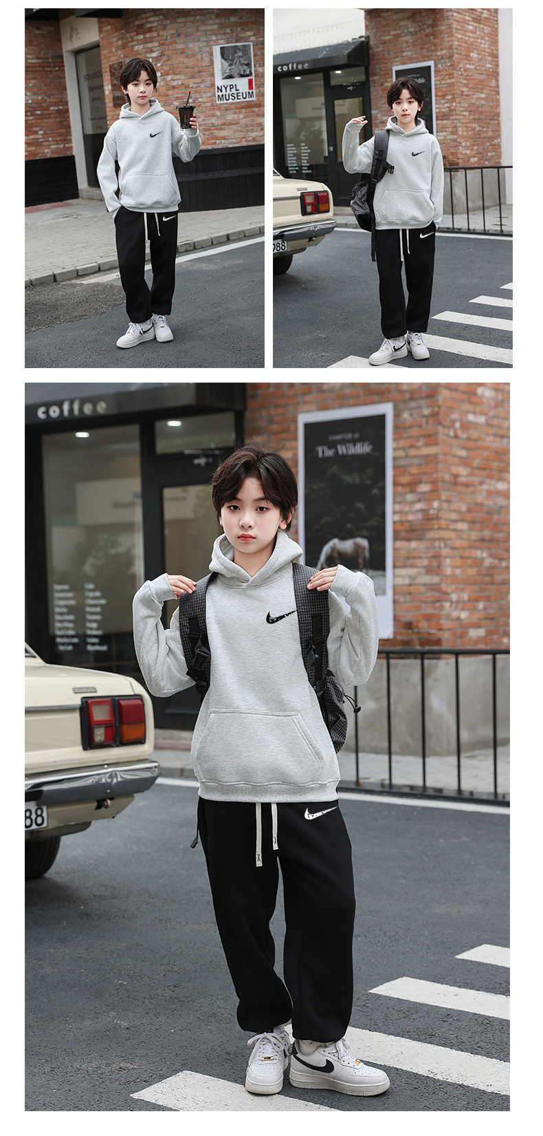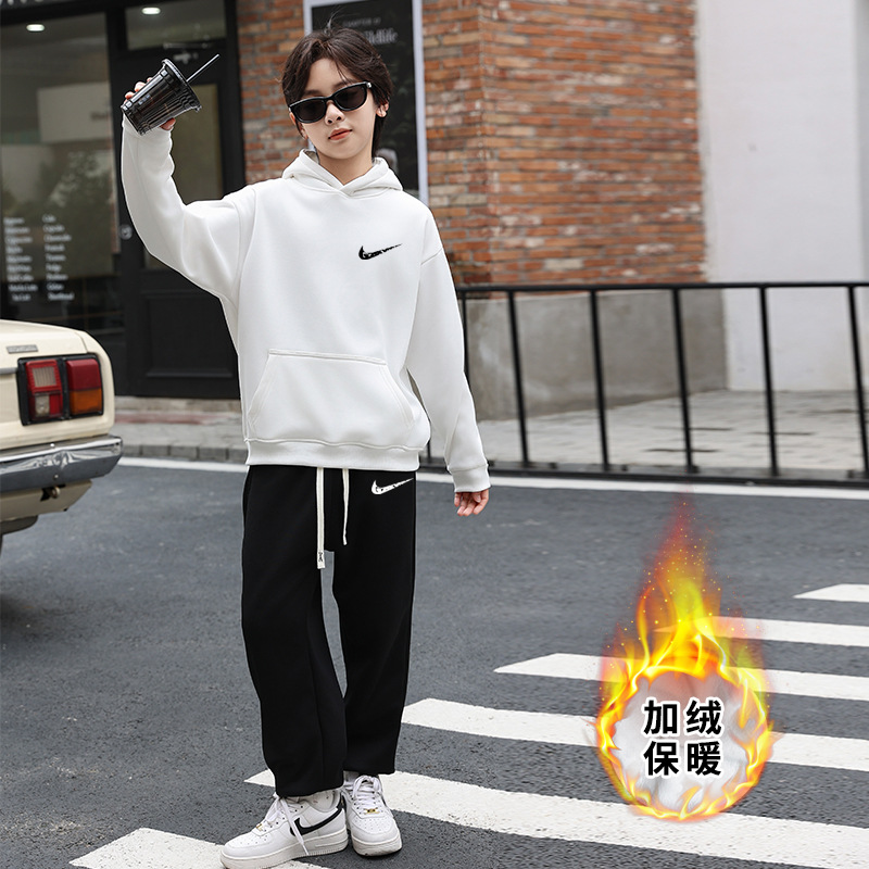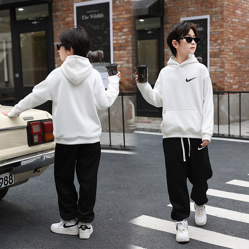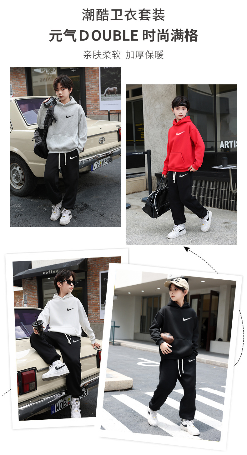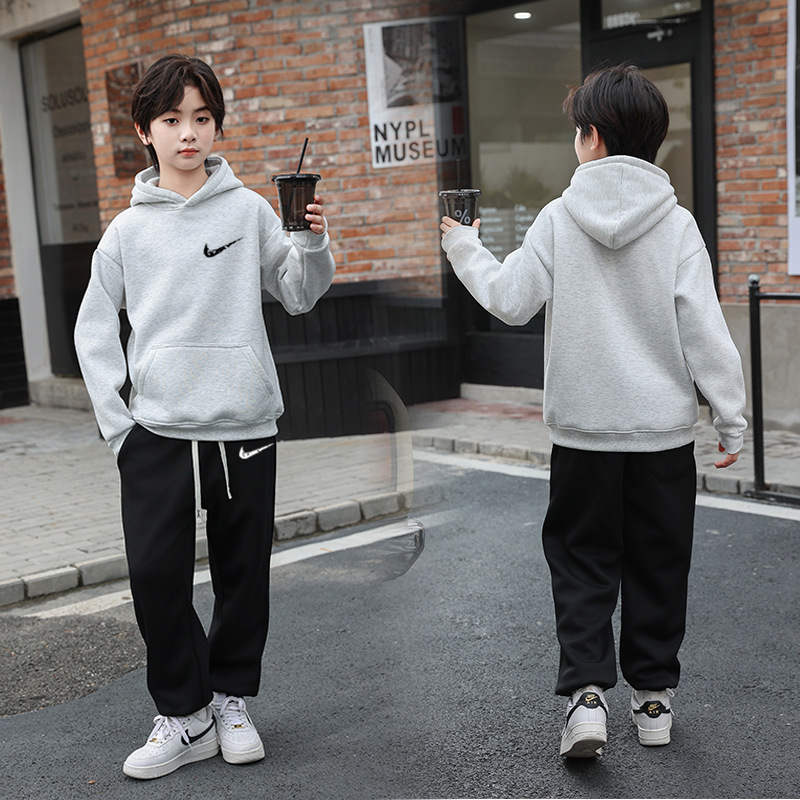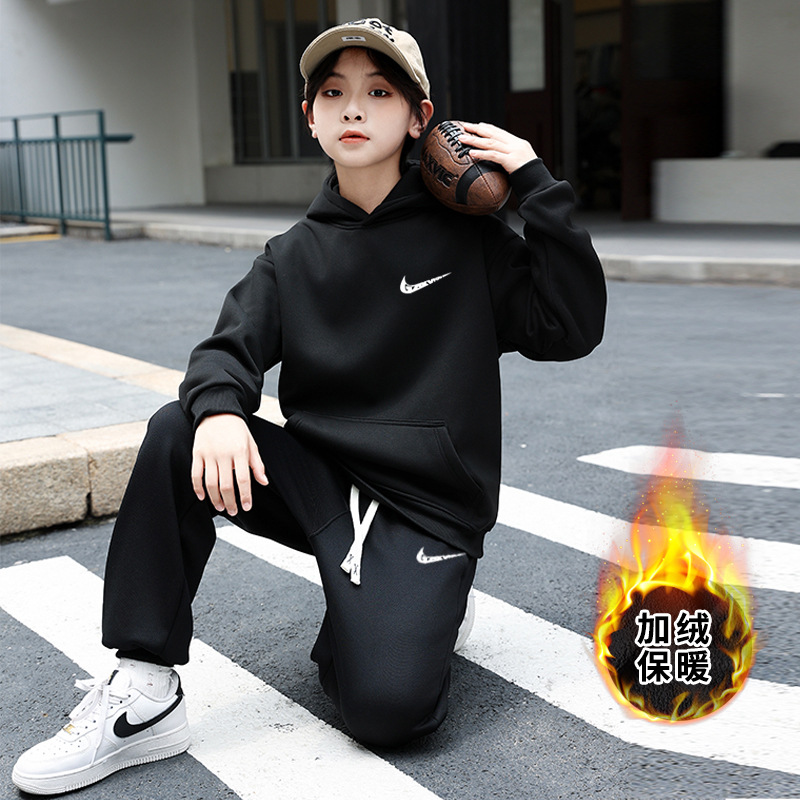 소년 세트 가을과 겨울 기모 두꺼운 운동복 어린이 후드 스웨터 바지 투피스 패션 브랜드스토어 가기
