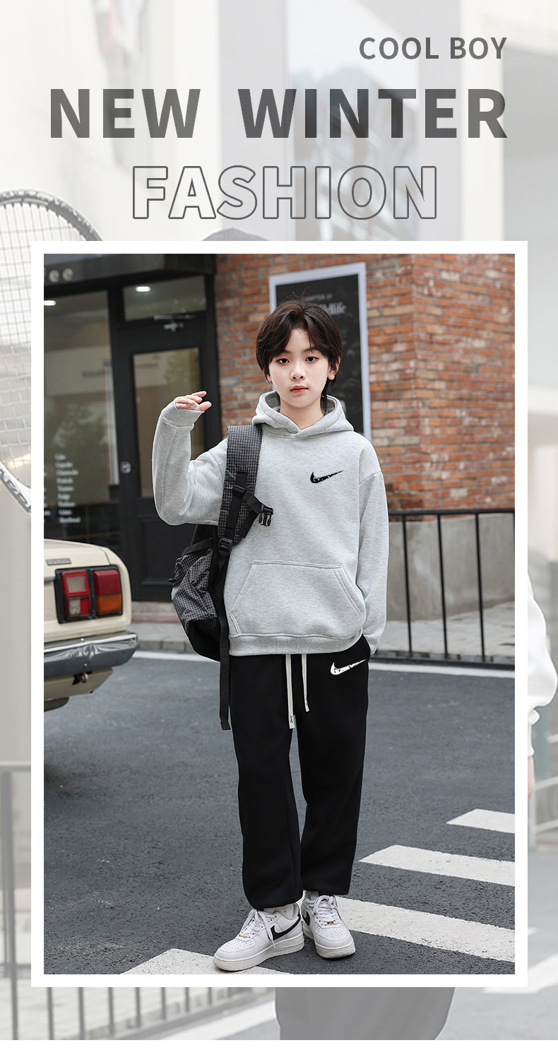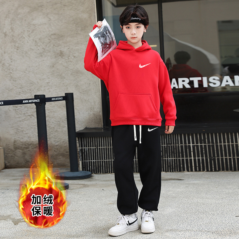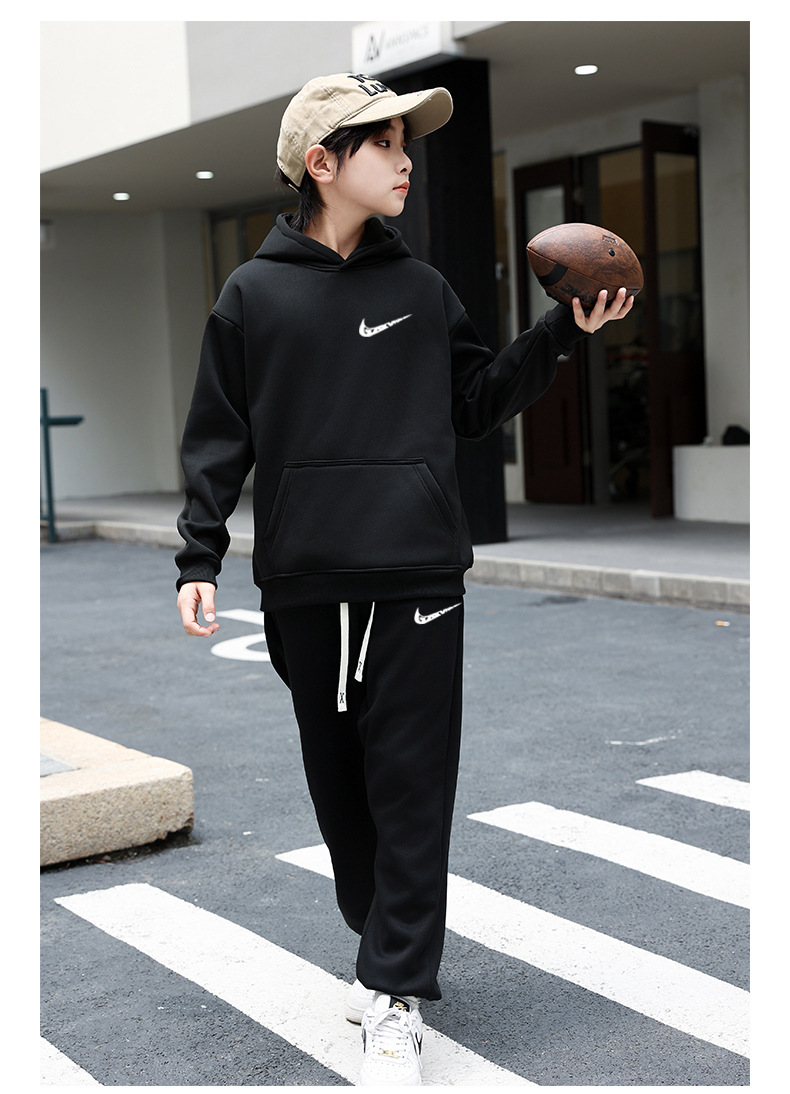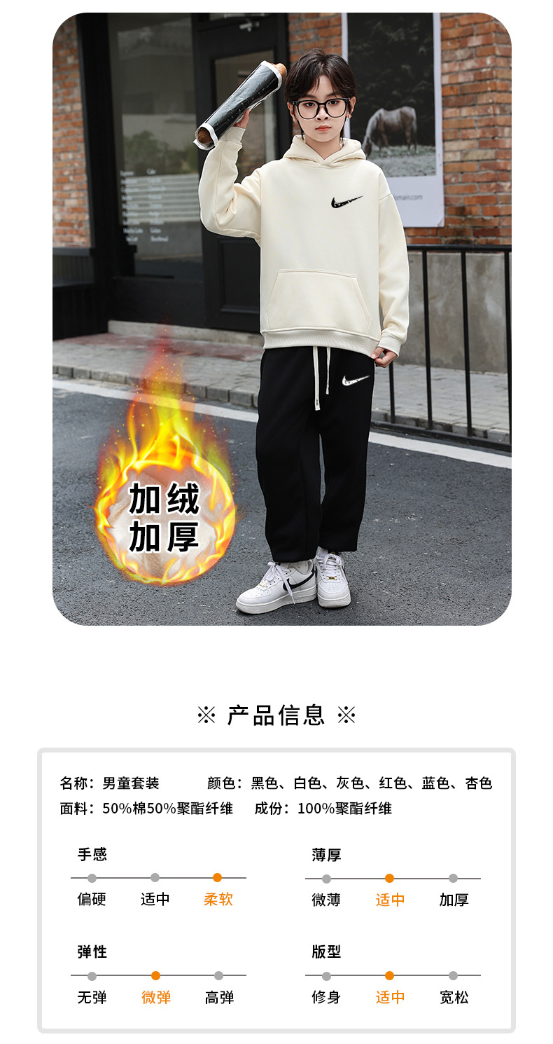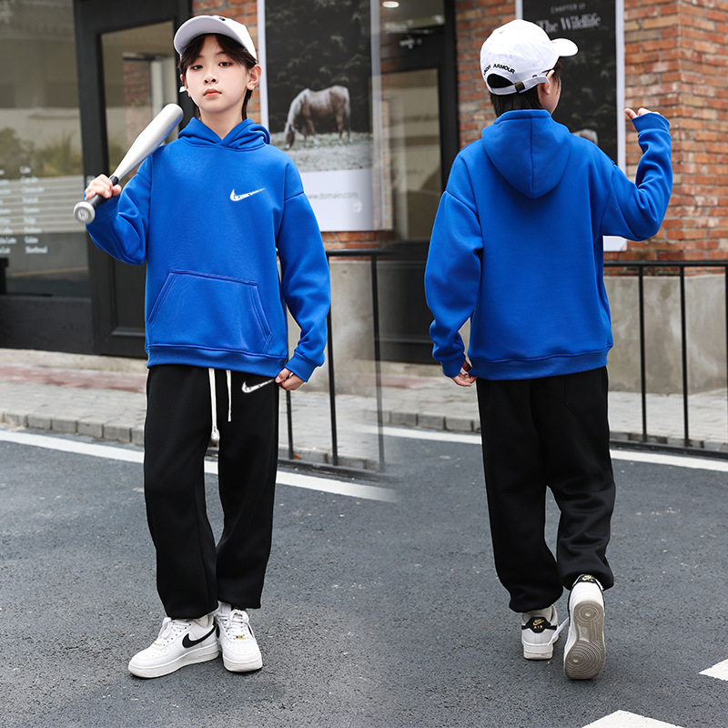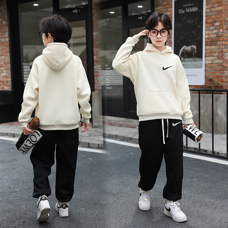 소년 세트 가을과 겨울 기모 두꺼운 운동복 어린이 후드 스웨터 바지 투피스 패션 브랜드스토어 가기