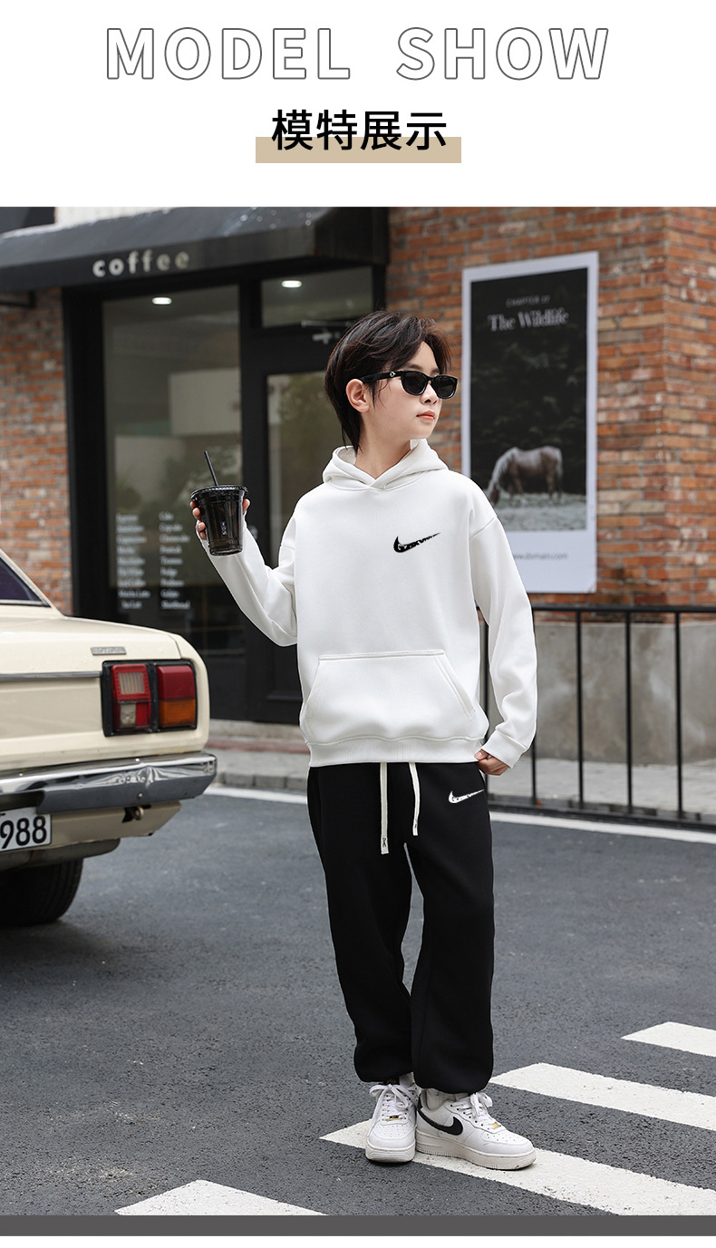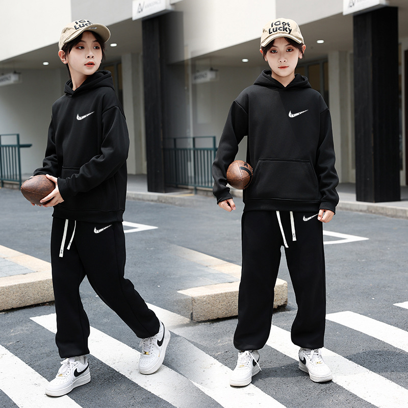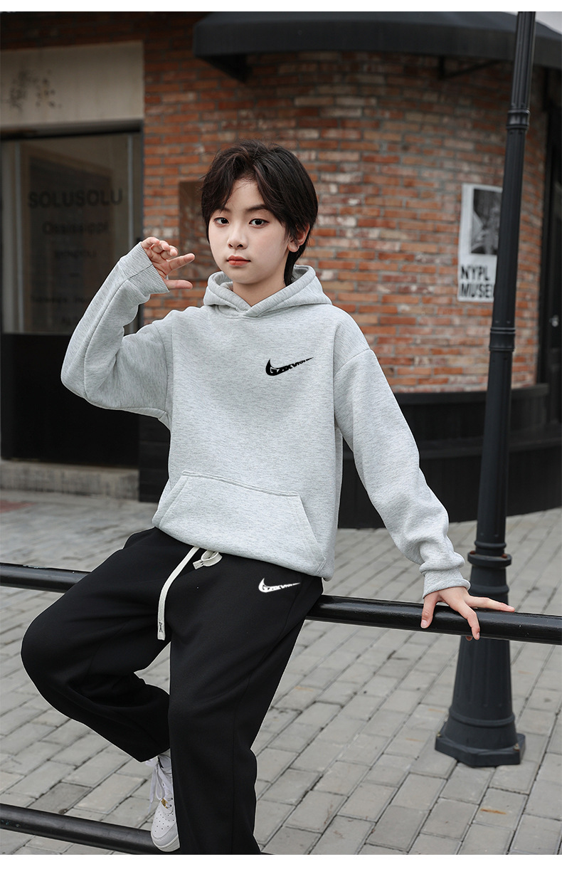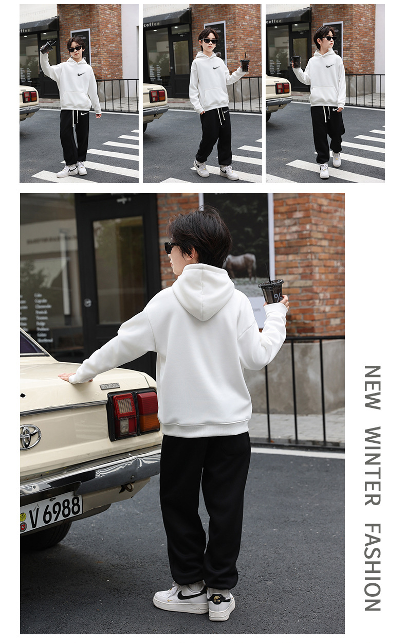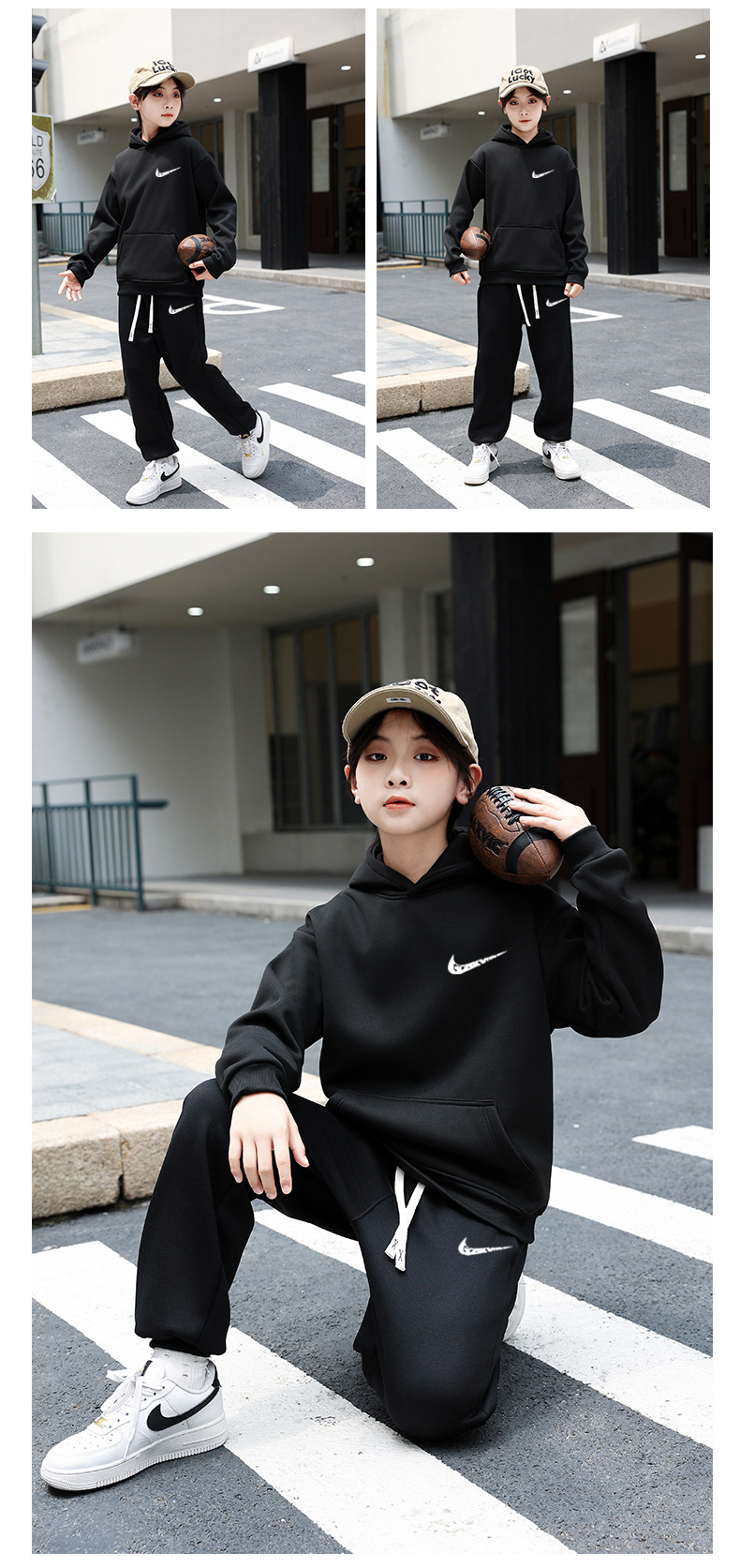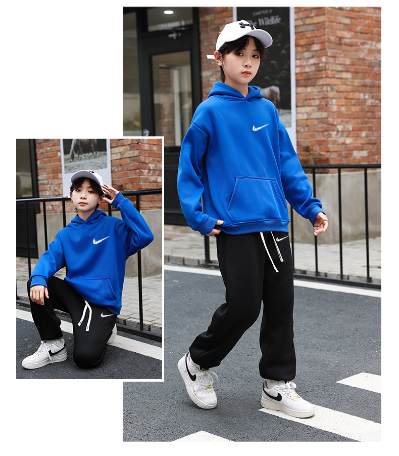 소년 세트 가을과 겨울 기모 두꺼운 운동복 어린이 후드 스웨터 바지 투피스 패션 브랜드스토어 가기
