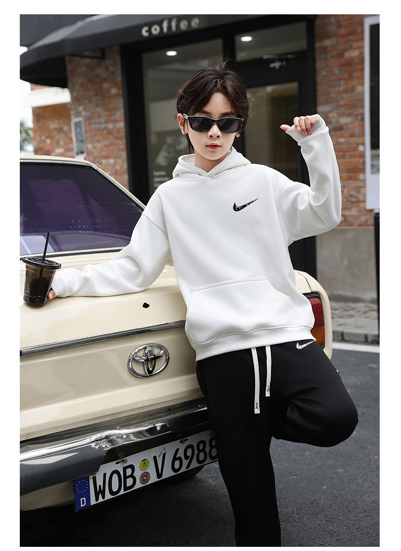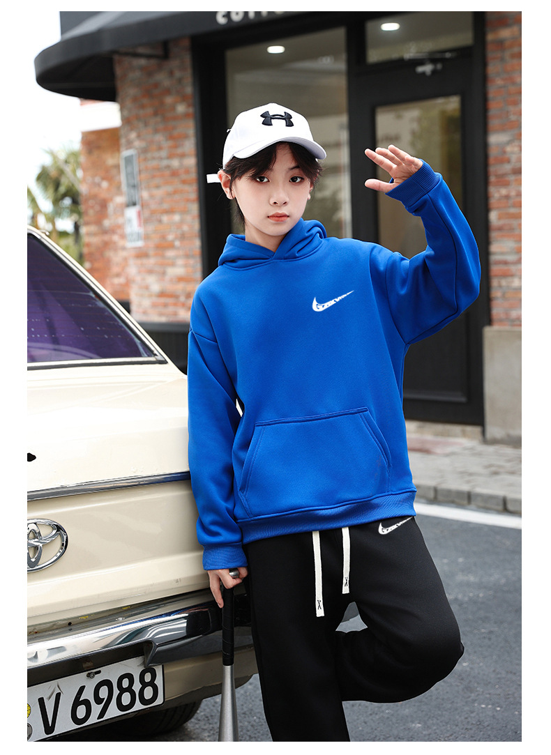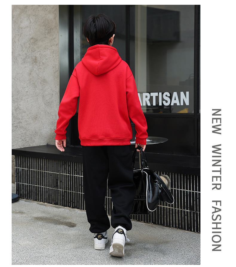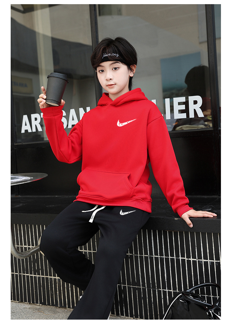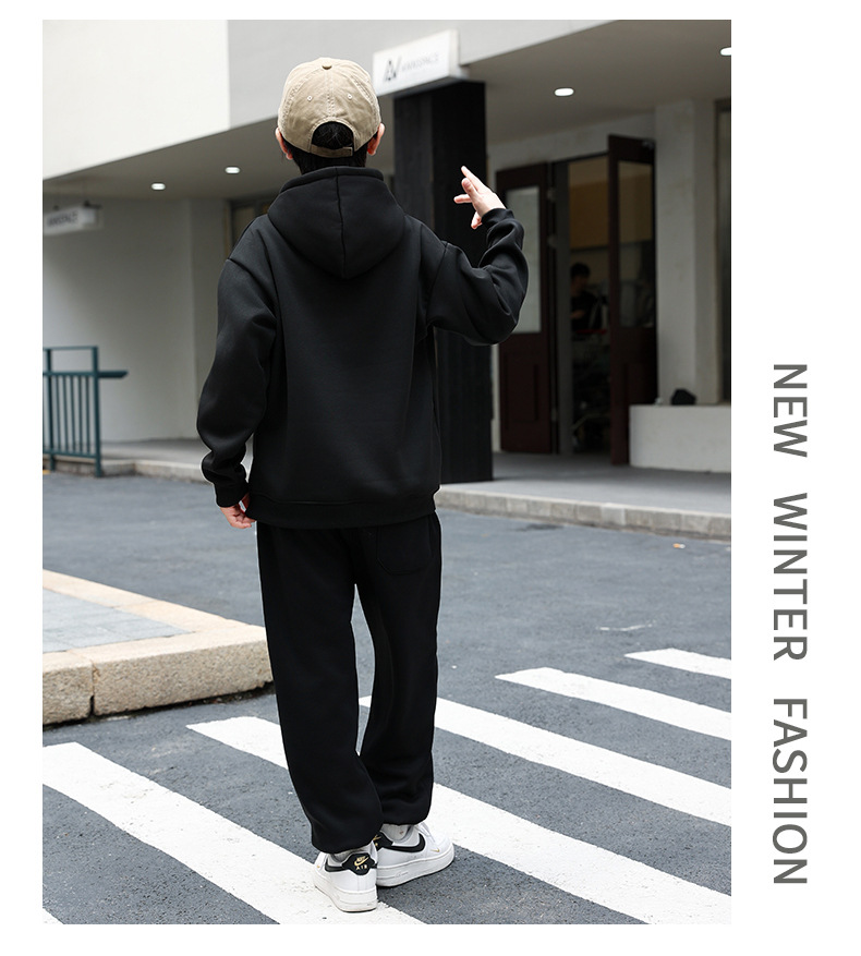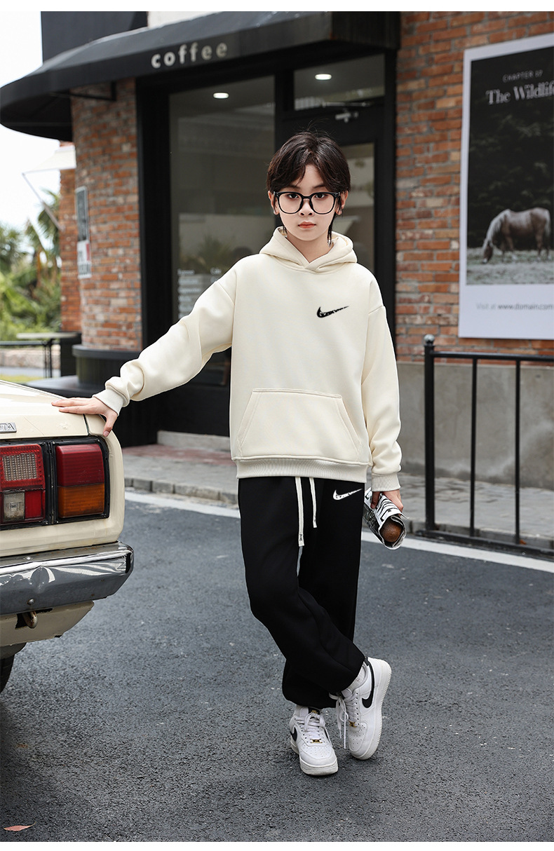 소년 세트 가을과 겨울 기모 두꺼운 운동복 어린이 후드 스웨터 바지 투피스 패션 브랜드스토어 가기