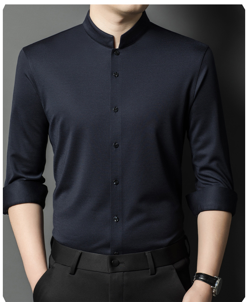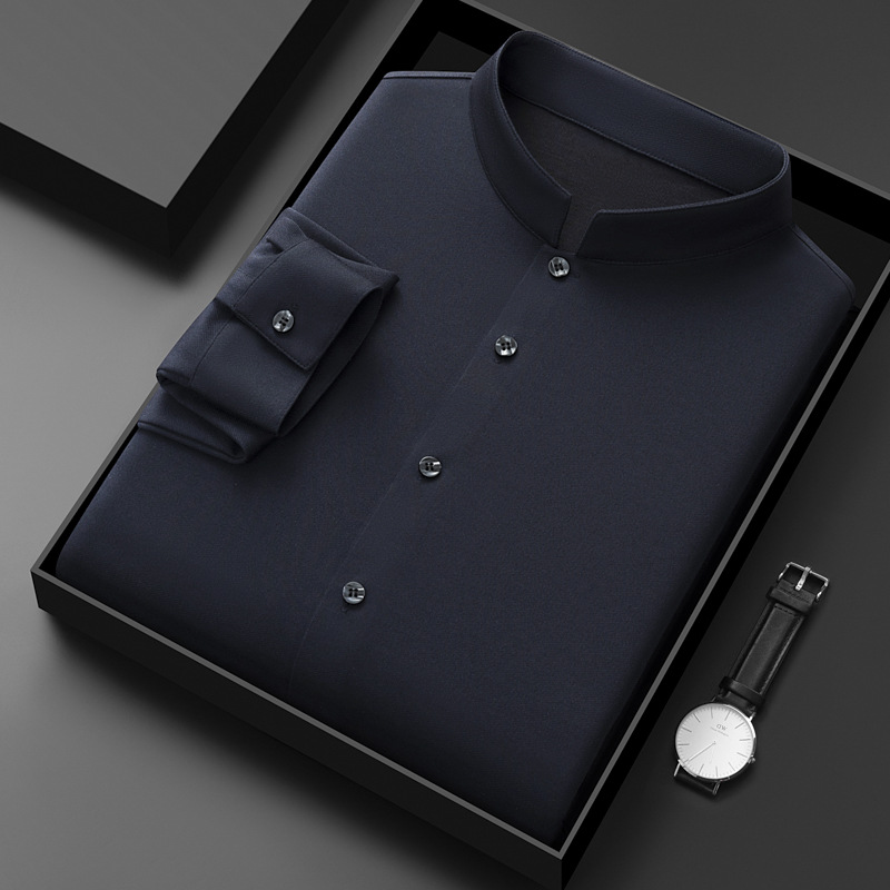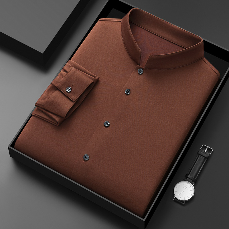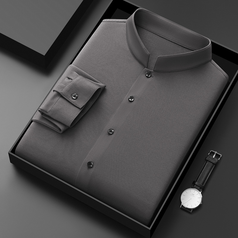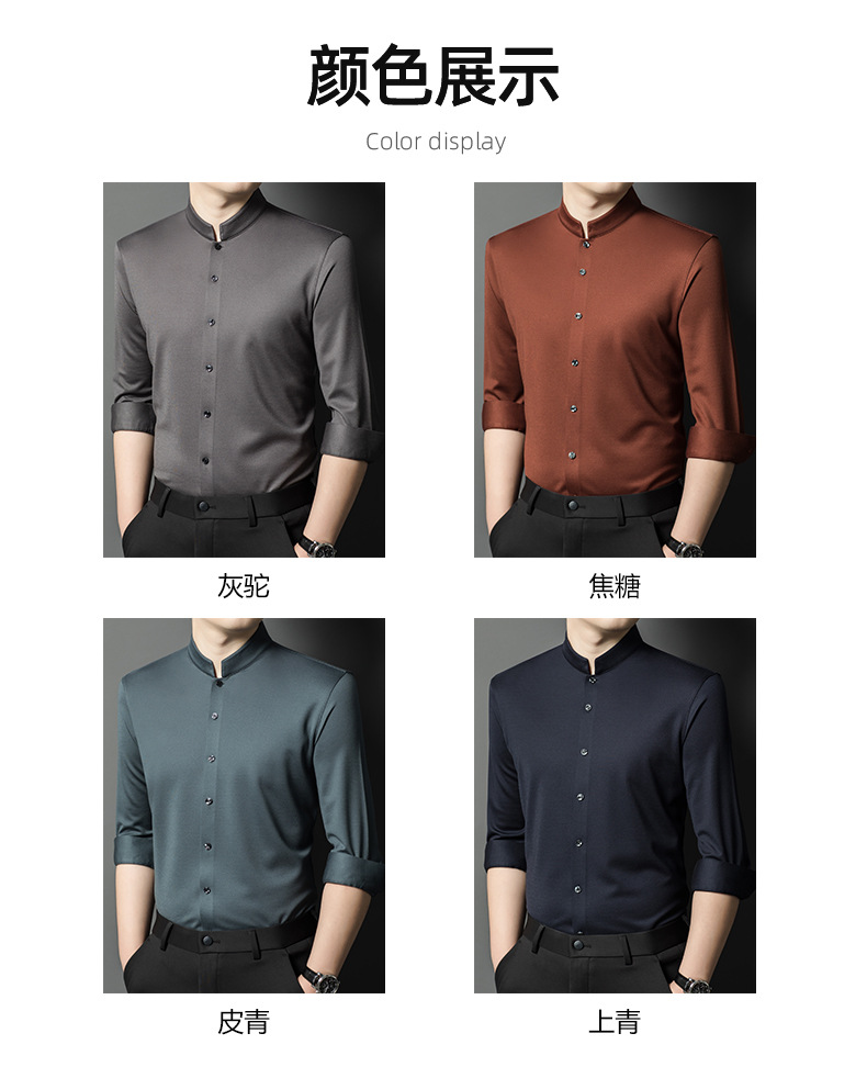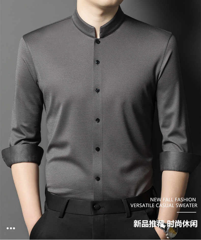 가을과 겨울 2024 새로운 양모 긴팔 셔츠 남성 젊고 중년 비즈니스 느슨한 아빠 단색 셔츠스토어 가기