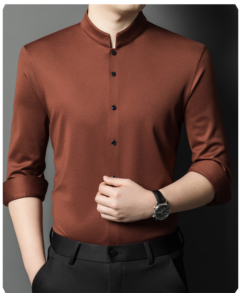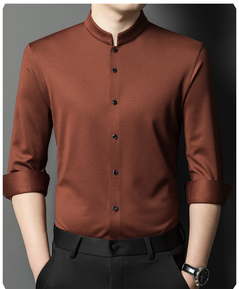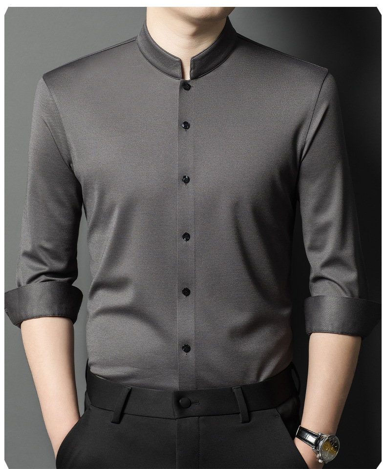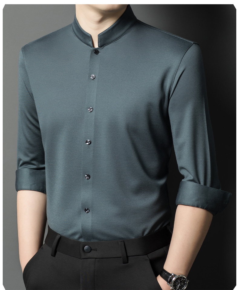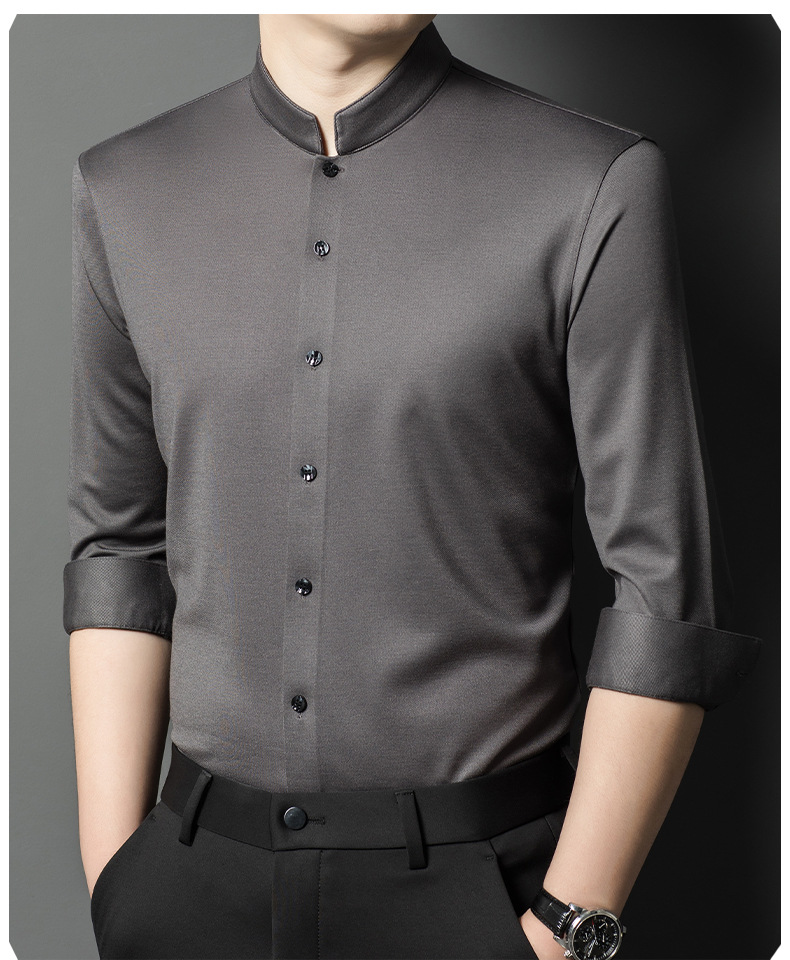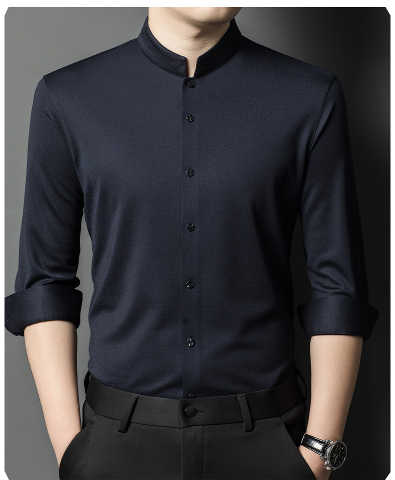 가을과 겨울 2024 새로운 양모 긴팔 셔츠 남성 젊고 중년 비즈니스 느슨한 아빠 단색 셔츠스토어 가기