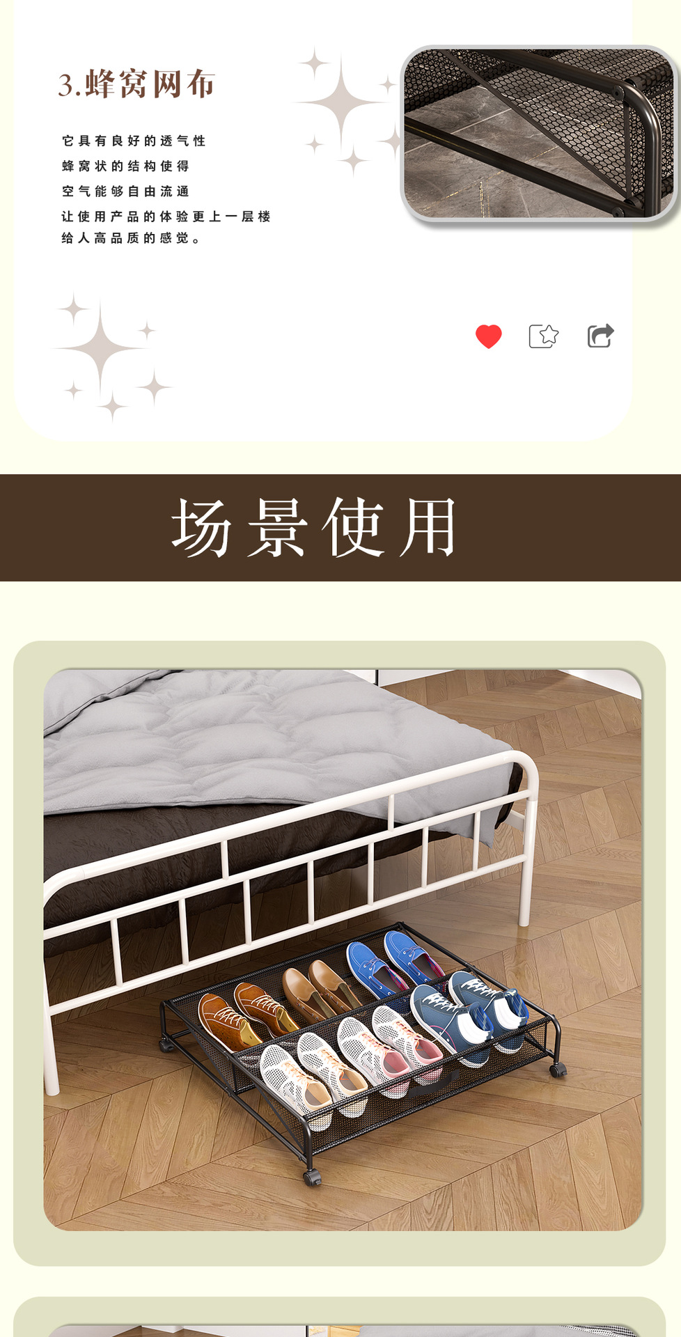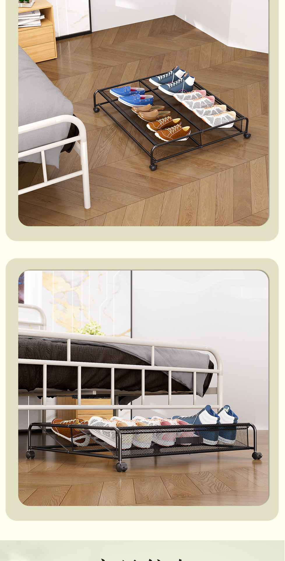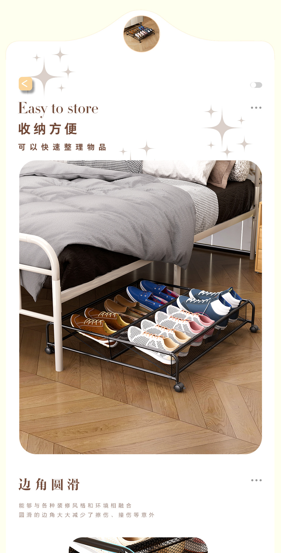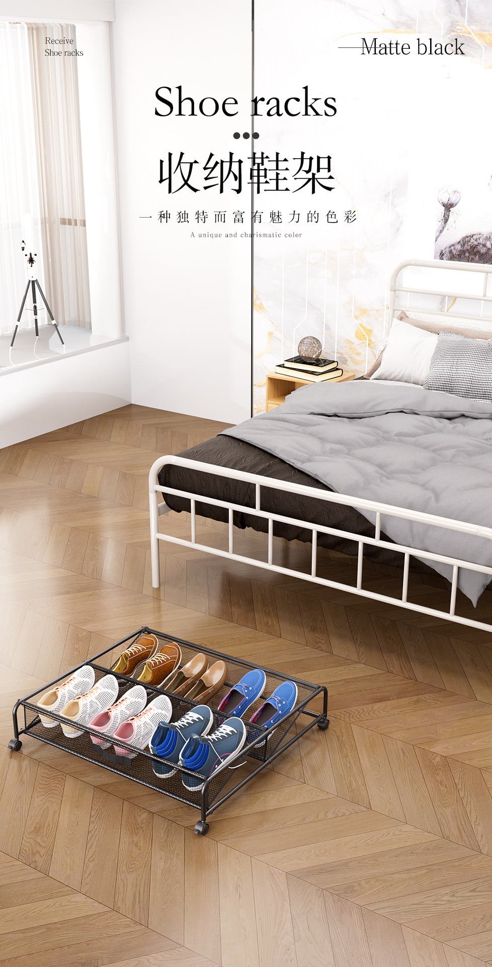 간단한 신발 랙 침대 바닥 스토리지 랙 다기능 철 침대 바닥 스토리지 박스 스토리지 메쉬 풀리 신발 마무리