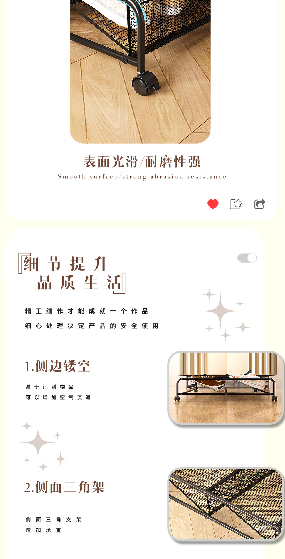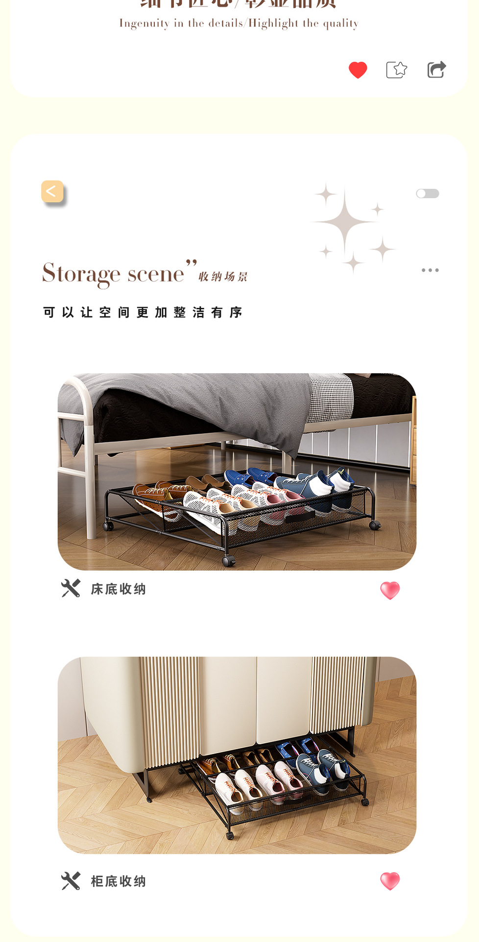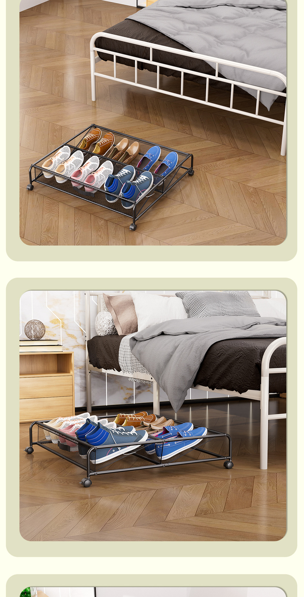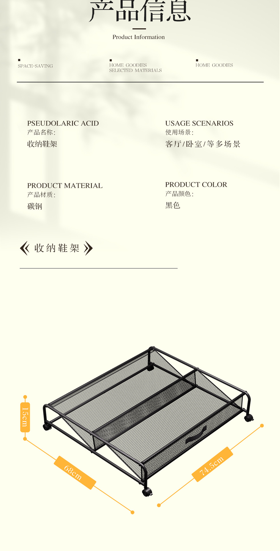 간단한 신발 랙 침대 바닥 스토리지 랙 다기능 철 침대 바닥 스토리지 박스 스토리지 메쉬 풀리 신발 마무리
