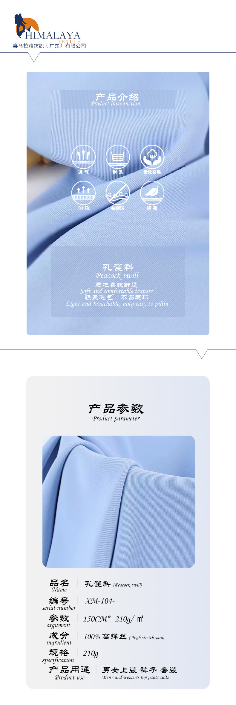 210g 공작새 사선 폴리에스터 원단, 드레이프한 능직, 정전기 방지, 신축성 있는 원단, 공장 직배송스토어 가기