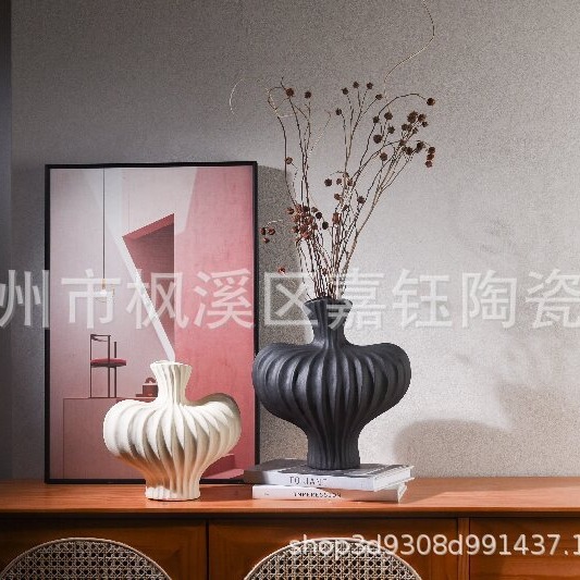 노르딕 스타일 프랑스 스타일 가벼운 고급 특수 모양의 세라믹 대형 꽃병 호텔 클럽 모델 룸 쥬얼리 장식품