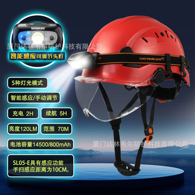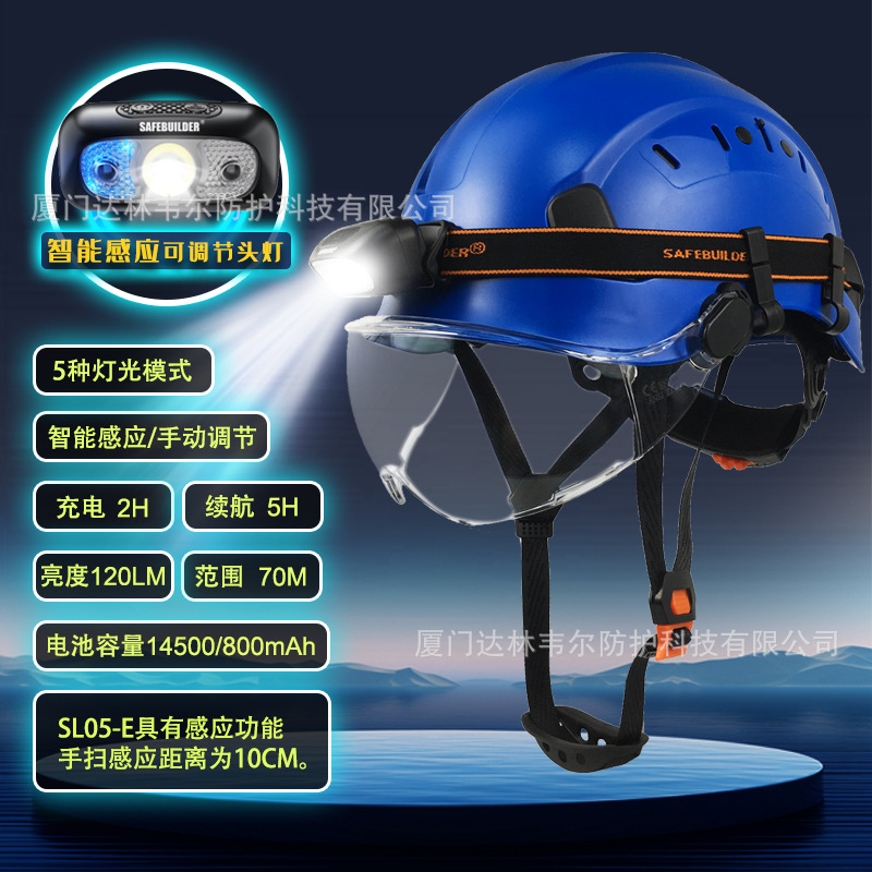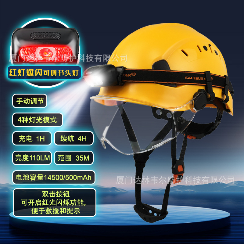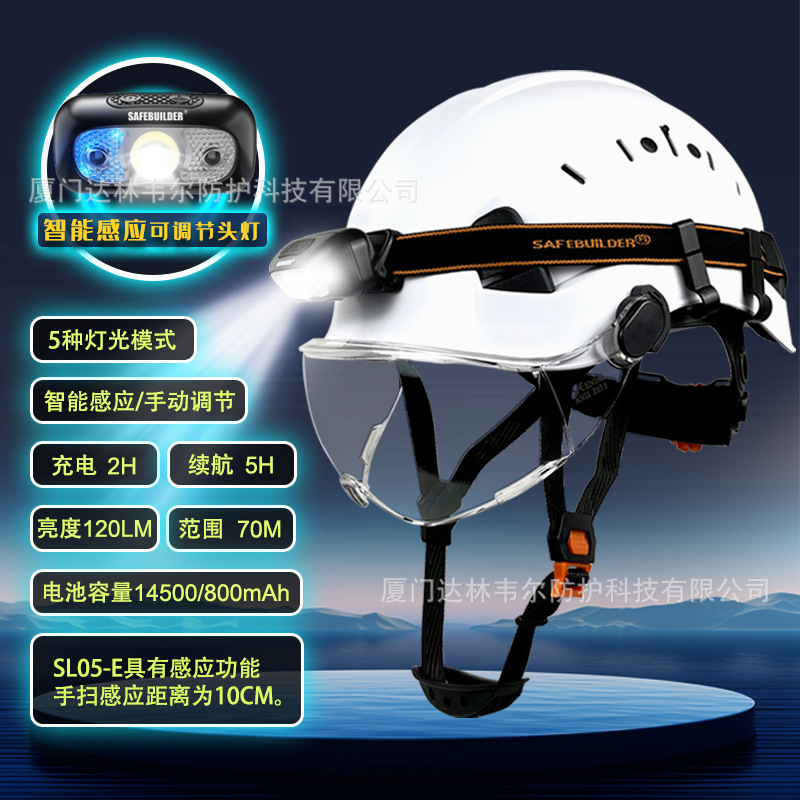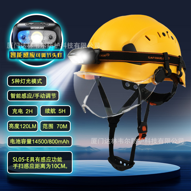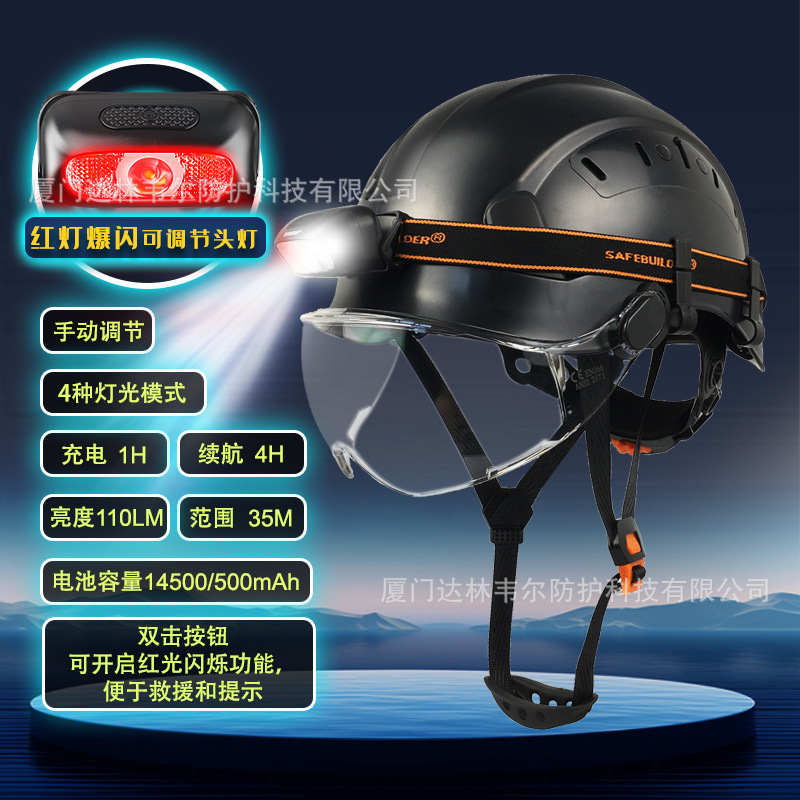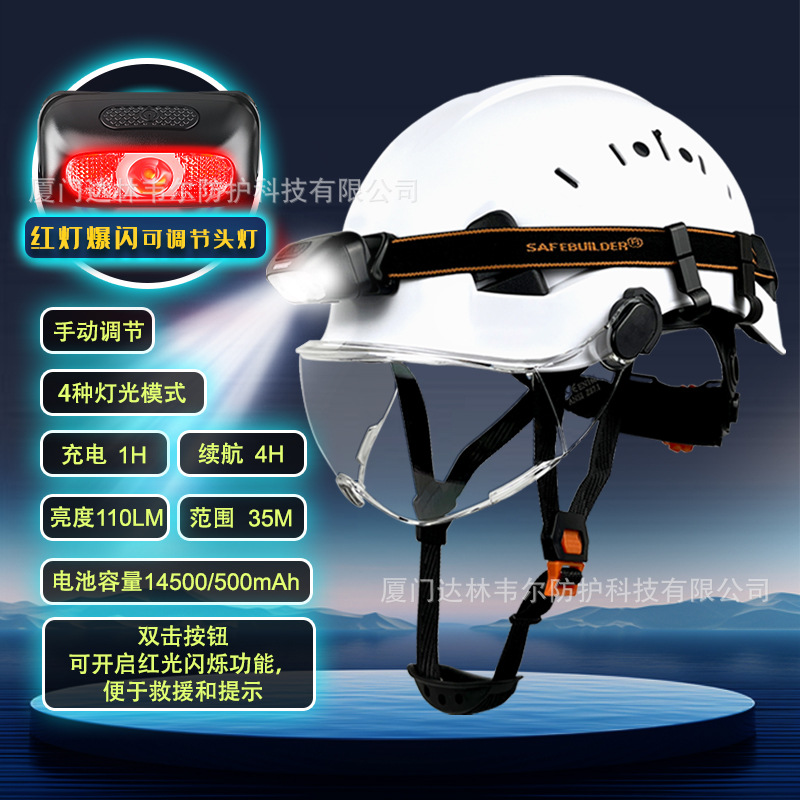 Dalinwell ABS 안전 헬멧 사이트 LED 헤드라이트 야간 조명 다중 속도 조정 가능한 방수 충전식 작업 조명
