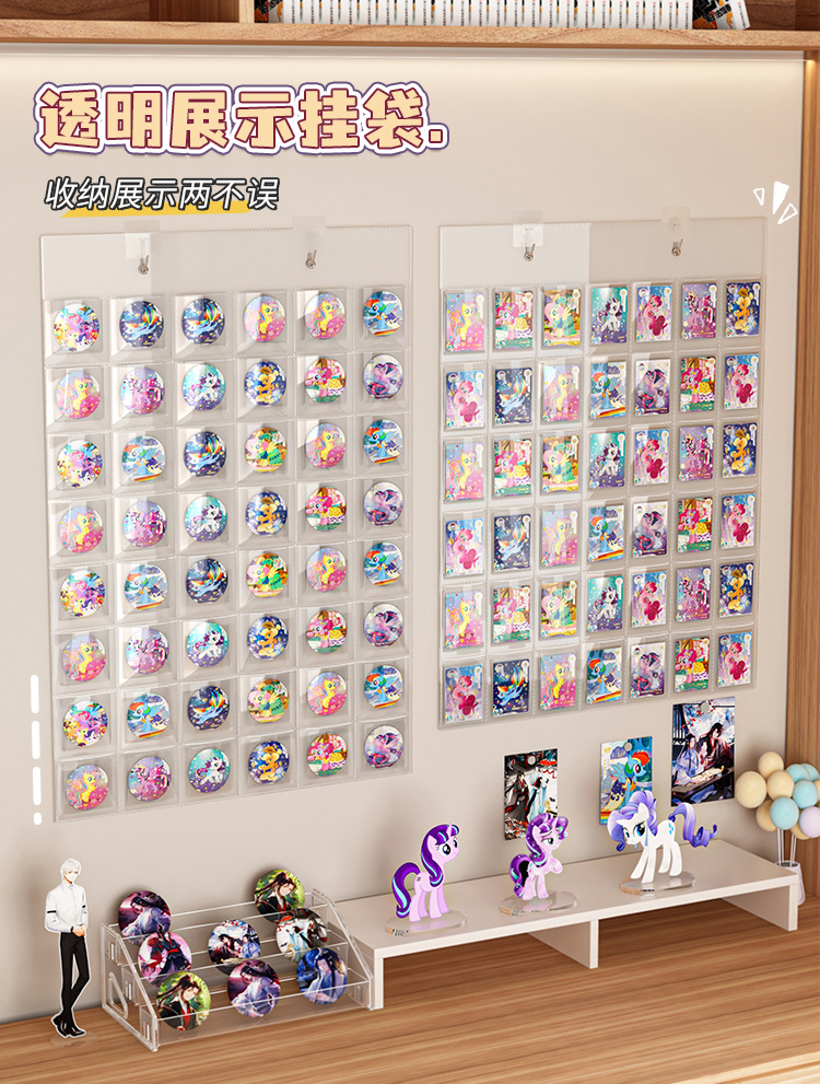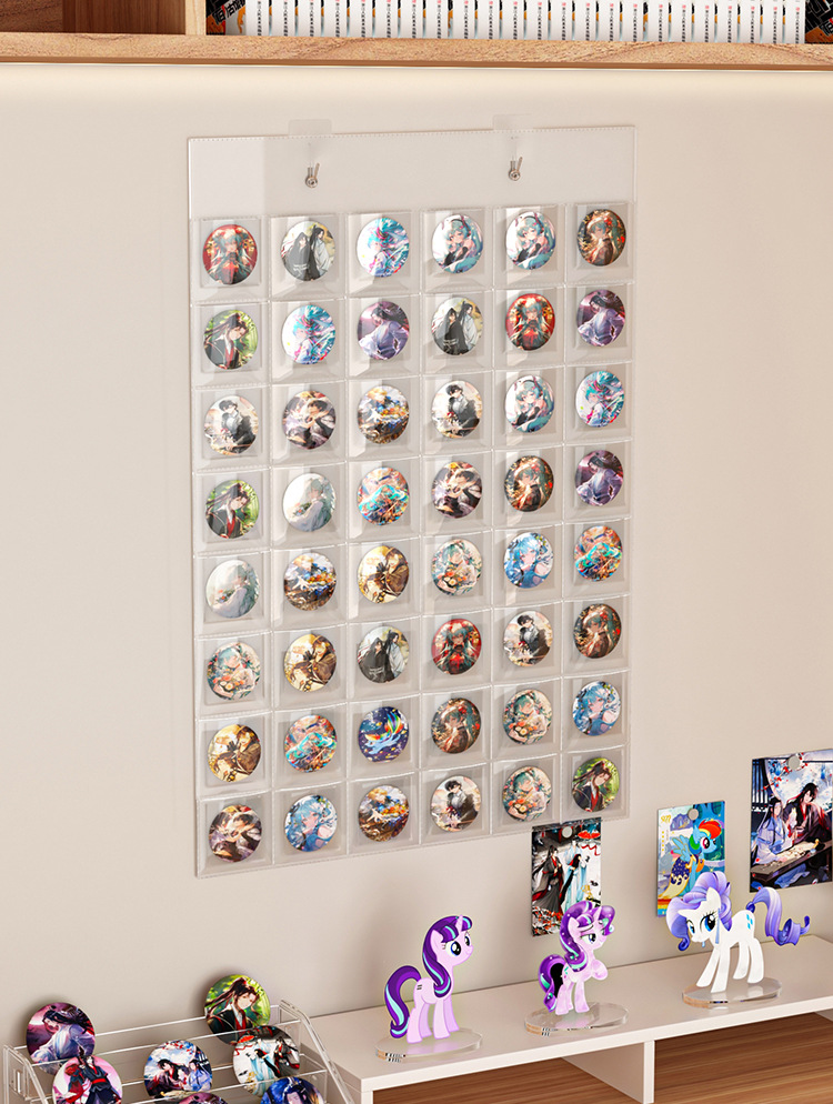 48 그리드 디스플레이 스탠드 투명 벽 교수형 벽 구획 배지 조랑말 폴리 카드 책 42 기장 보관 가방