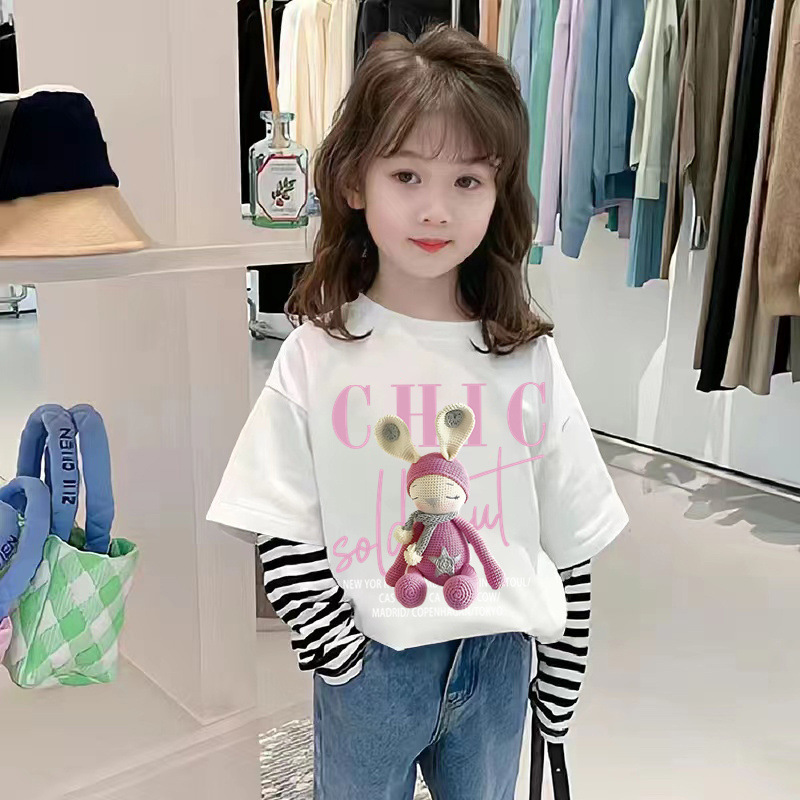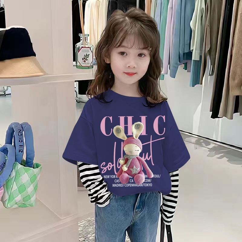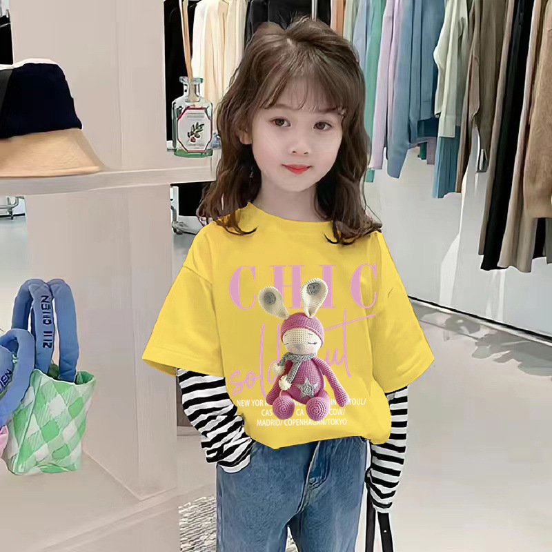 G2345 # 여자 긴팔 면화 티셔츠 가짜 두 개의 새로운 외국 스타일 어린이 가을 캐주얼 코트 아기 봄과 가을