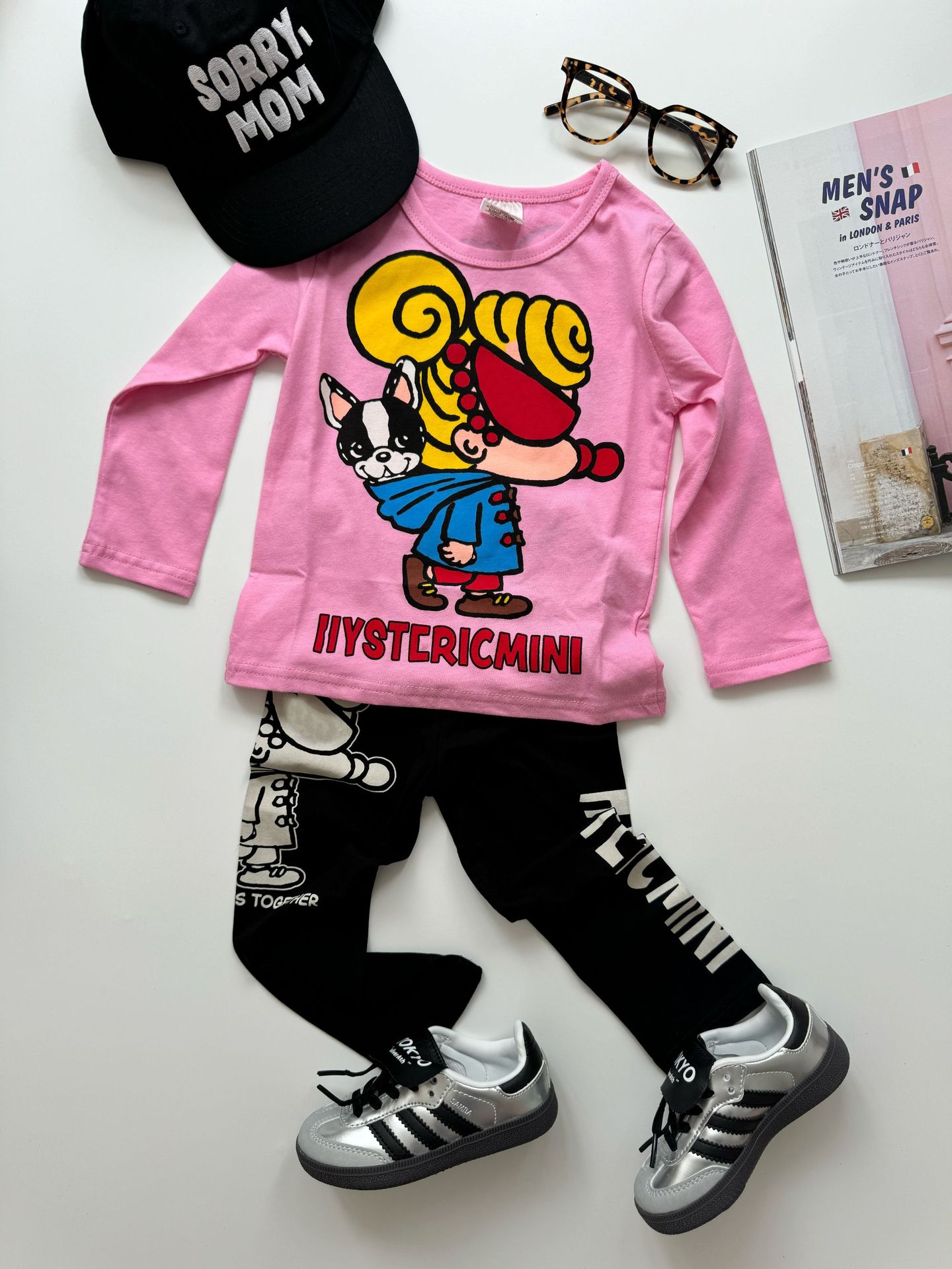 2024 새로운 블랙 슈퍼 조수 브랜드 젖꼭지 방법 버킷 케이프 모양 인쇄 레깅스 젖꼭지 어린이 바지 재고