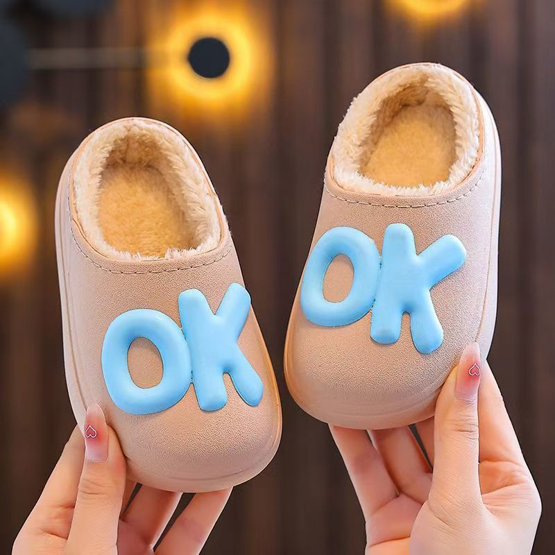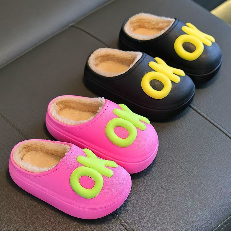 겨울 어린이 부모-자식 성인 울 슬리퍼 부드러운 바닥 미끄럼 방지 따뜻한 방수 아기 편지 만화 플러시 겉옷 새로운스토어 가기