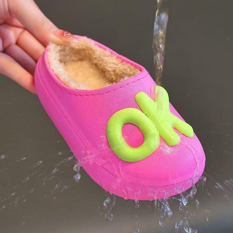 겨울 어린이 부모-자식 성인 울 슬리퍼 부드러운 바닥 미끄럼 방지 따뜻한 방수 아기 편지 만화 플러시 겉옷 새로운