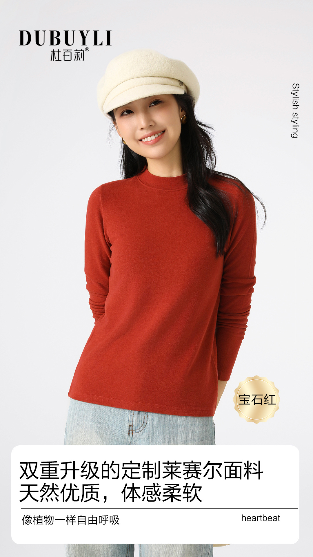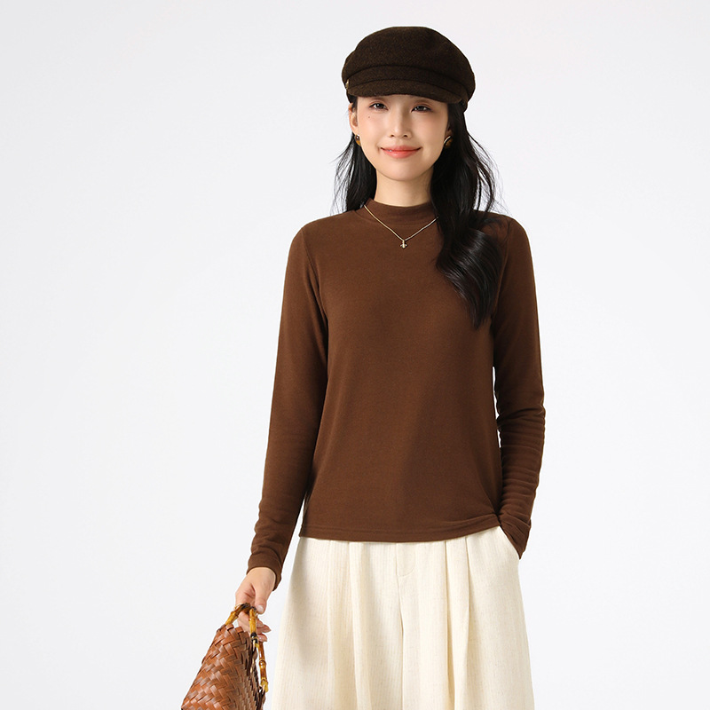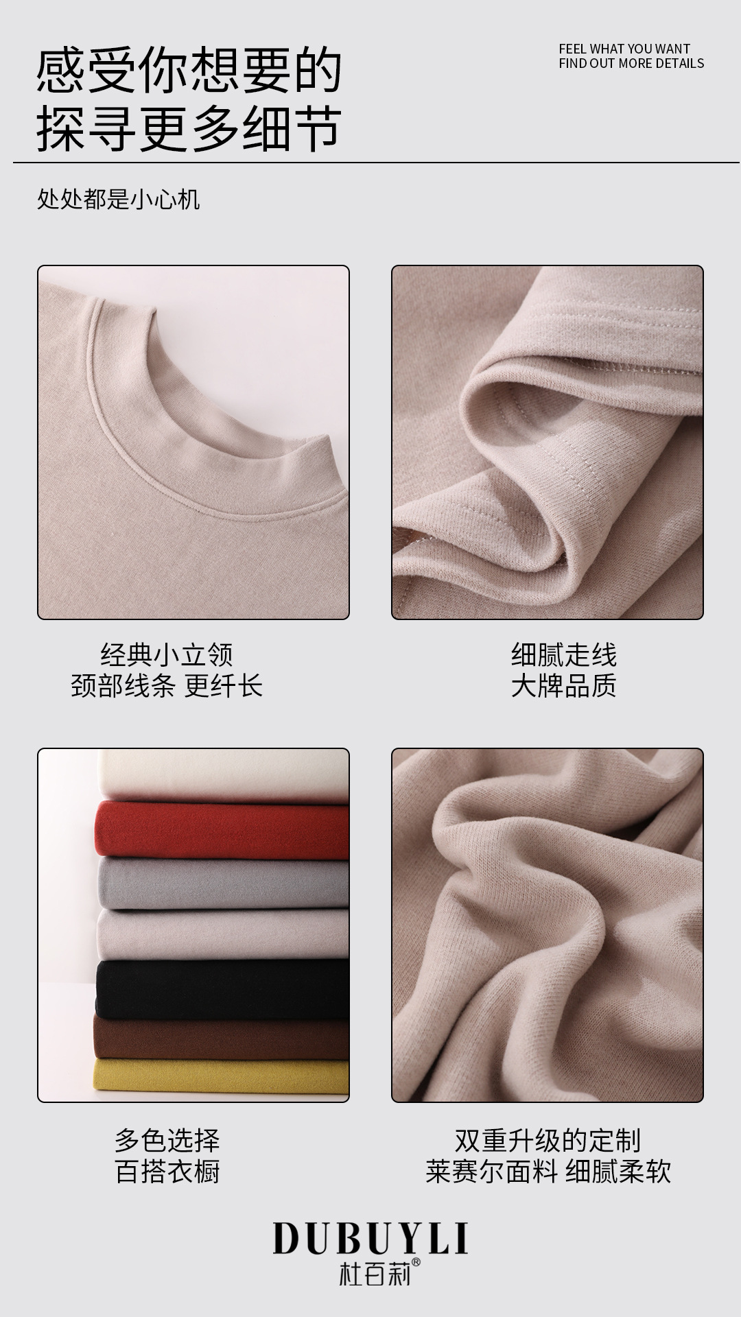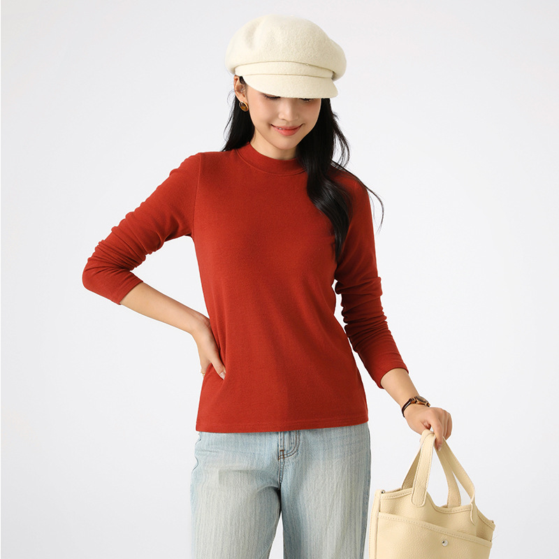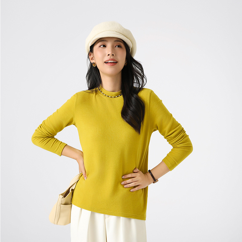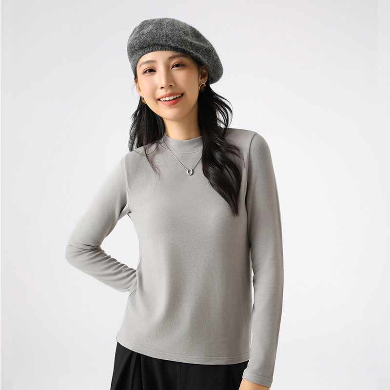 Lyocell Tencel 모직베이스 셔츠 스탠드 칼라 긴팔 티셔츠 여성의 2024 가을 및 겨울 새로운 통근 슬림 탑