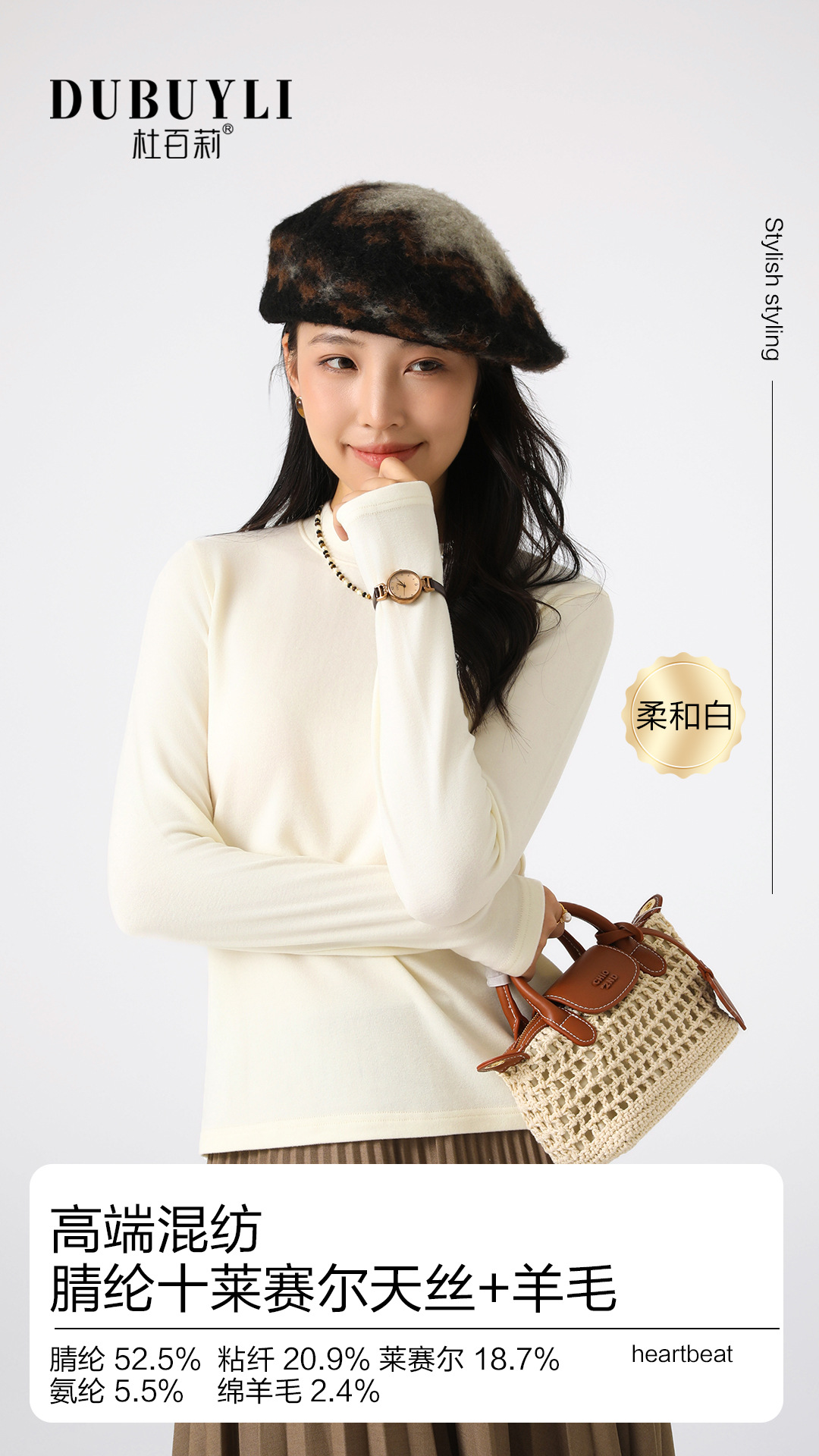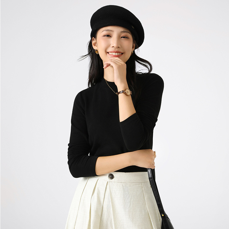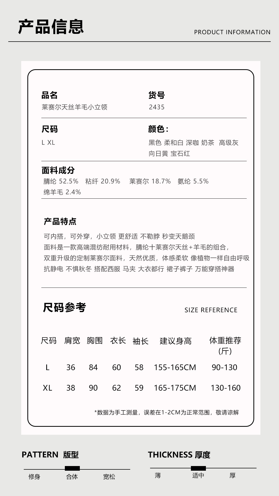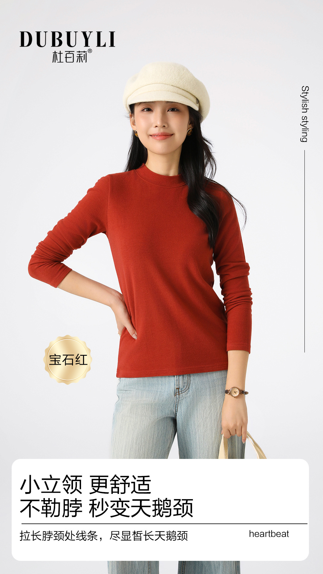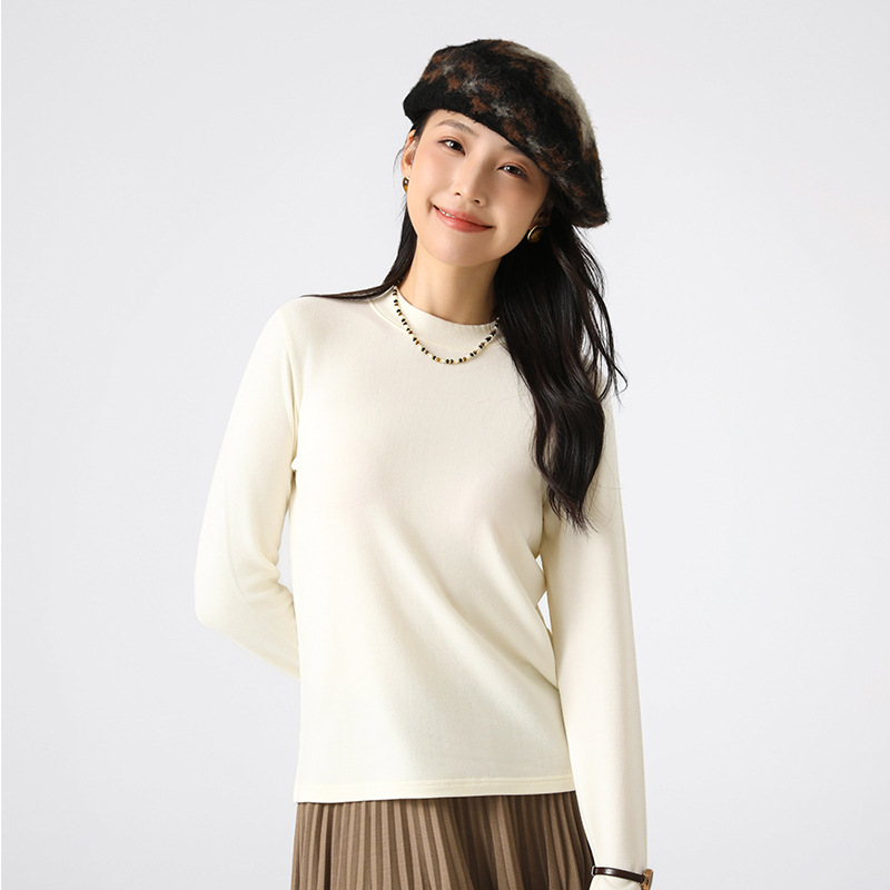 Lyocell Tencel 모직베이스 셔츠 스탠드 칼라 긴팔 티셔츠 여성의 2024 가을 및 겨울 새로운 통근 슬림 탑