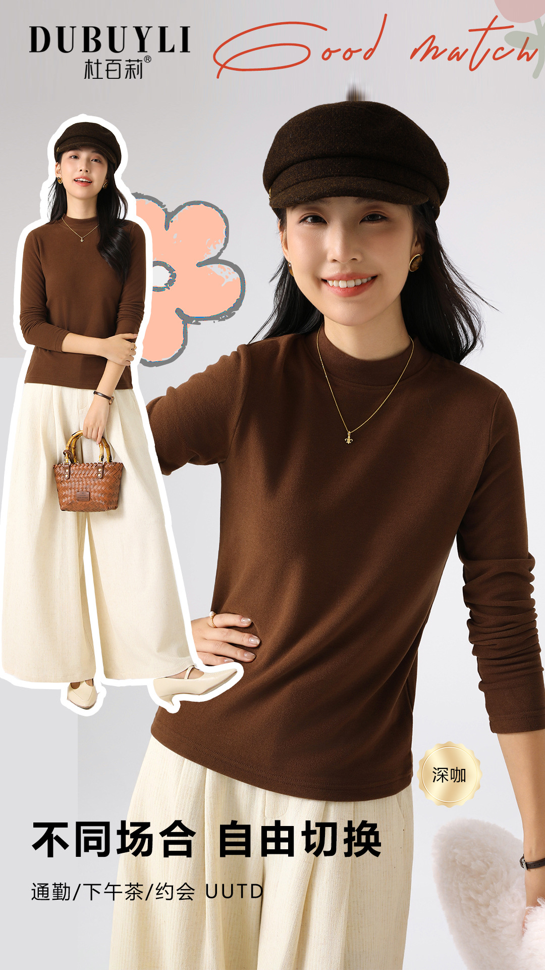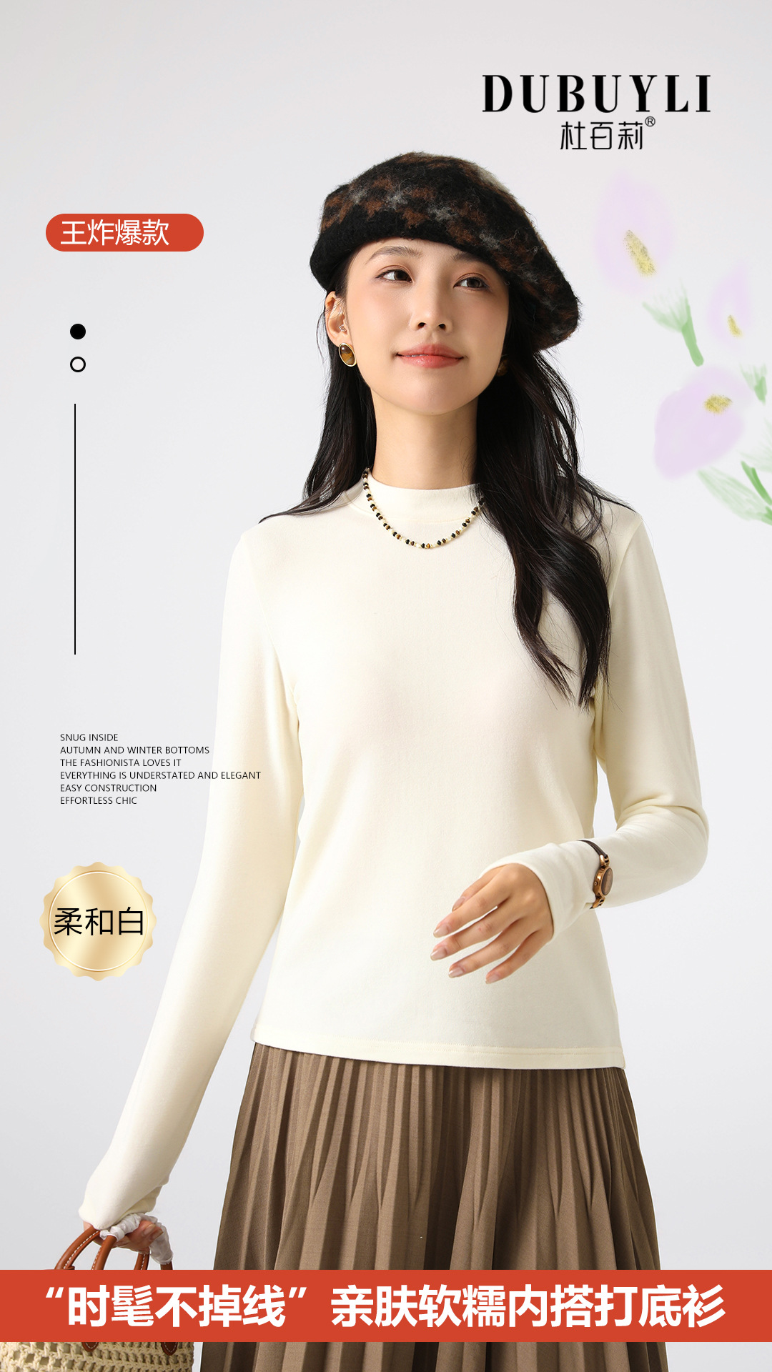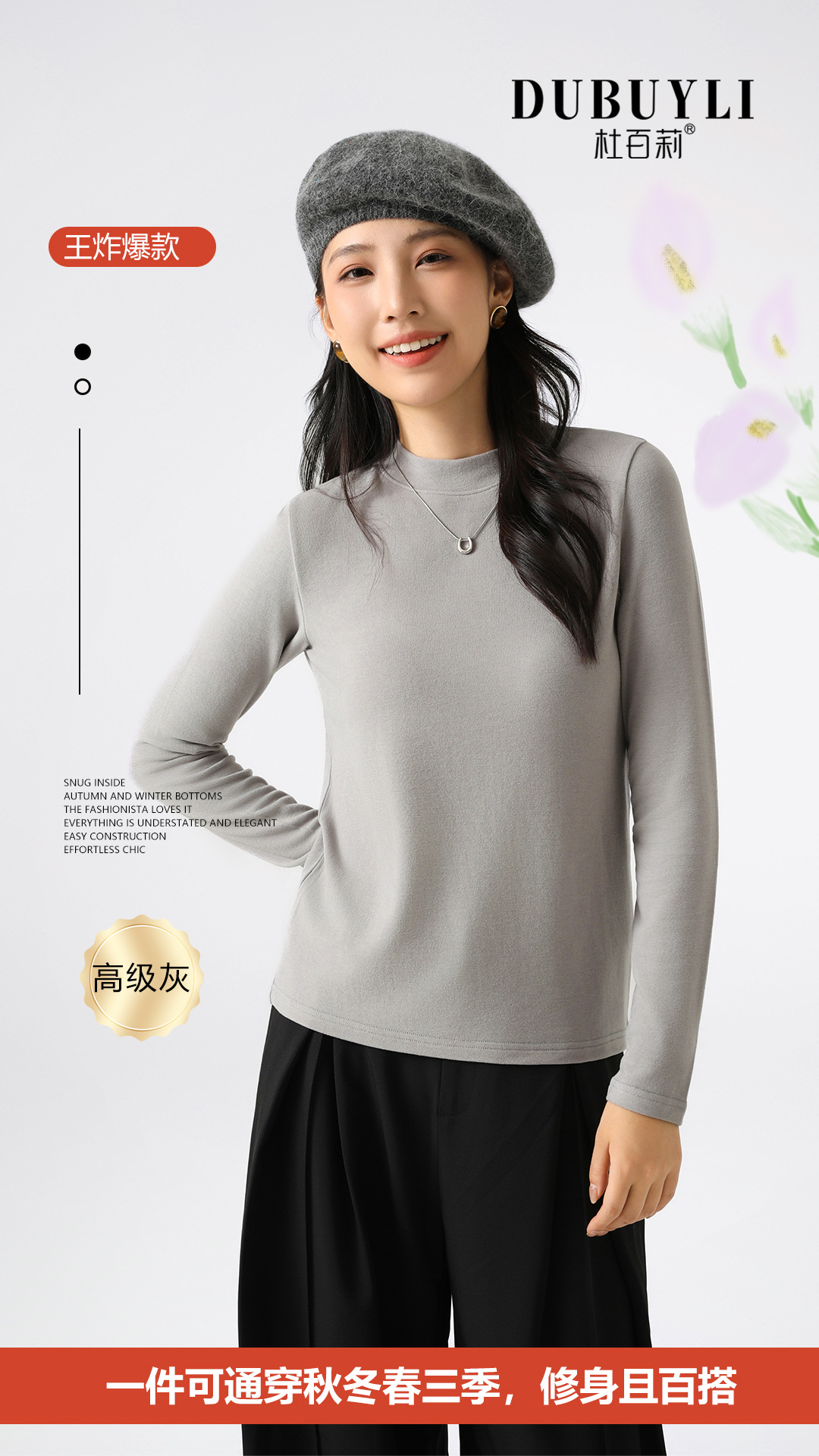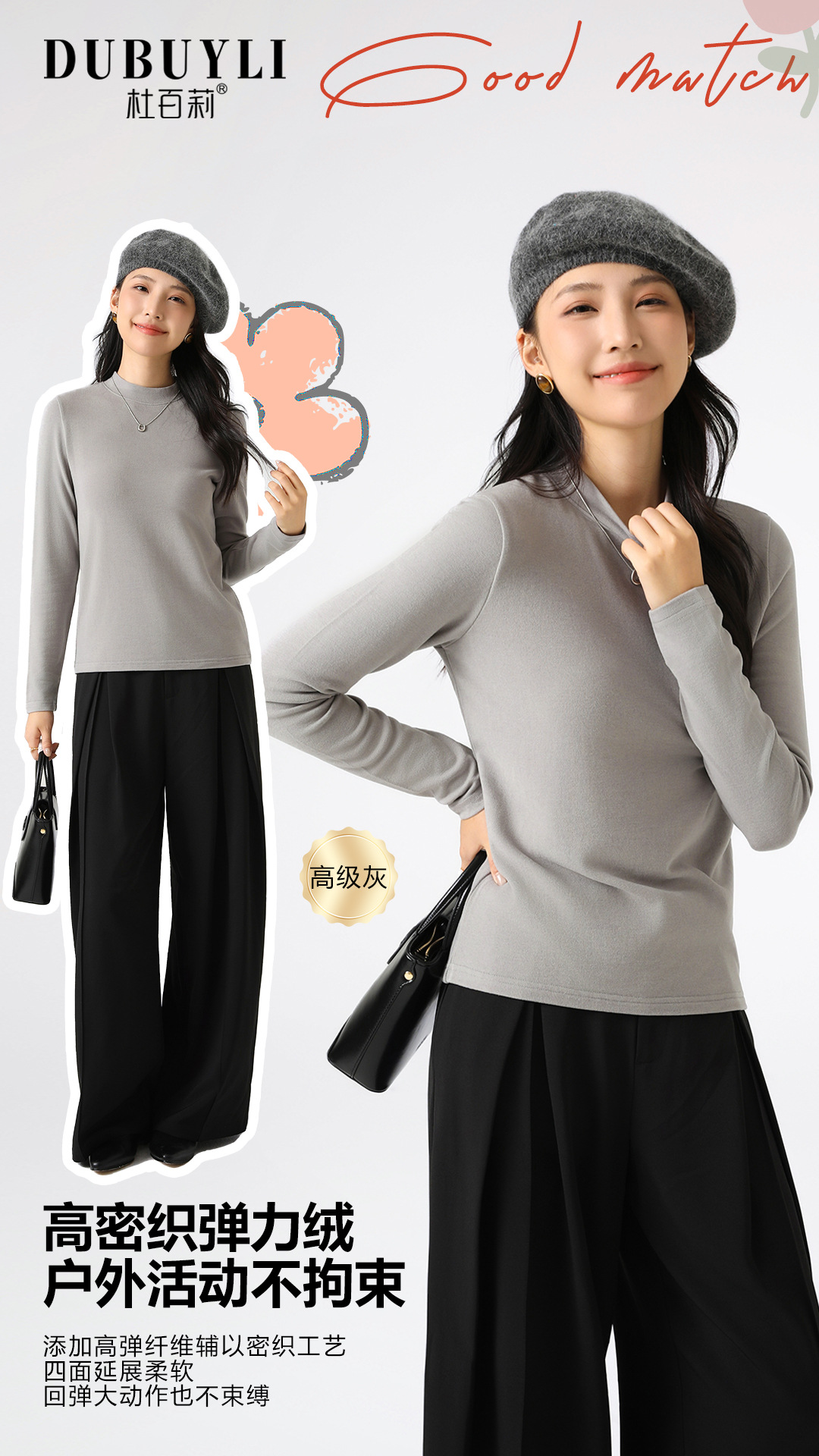 Lyocell Tencel 모직베이스 셔츠 스탠드 칼라 긴팔 티셔츠 여성의 2024 가을 및 겨울 새로운 통근 슬림 탑