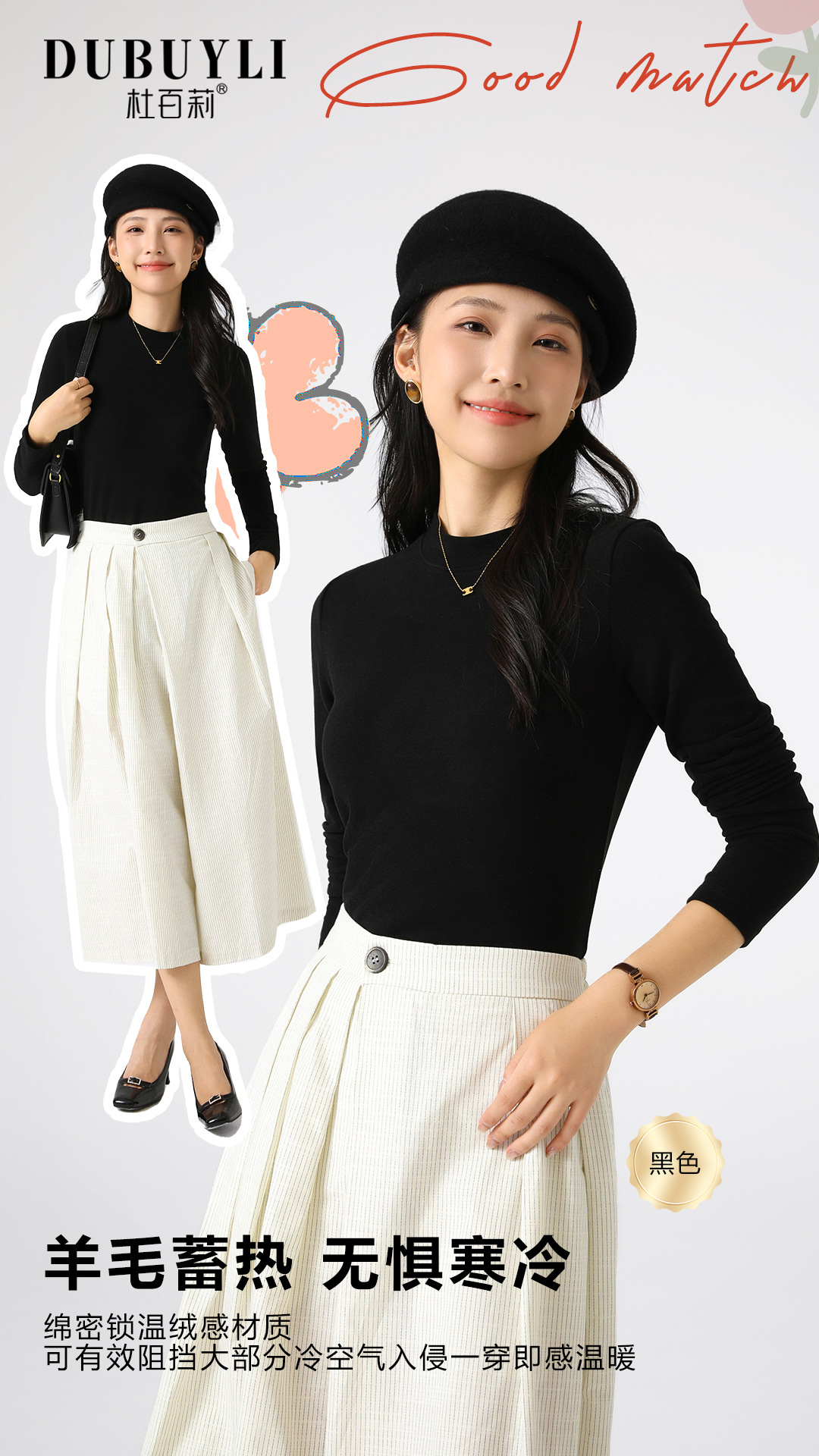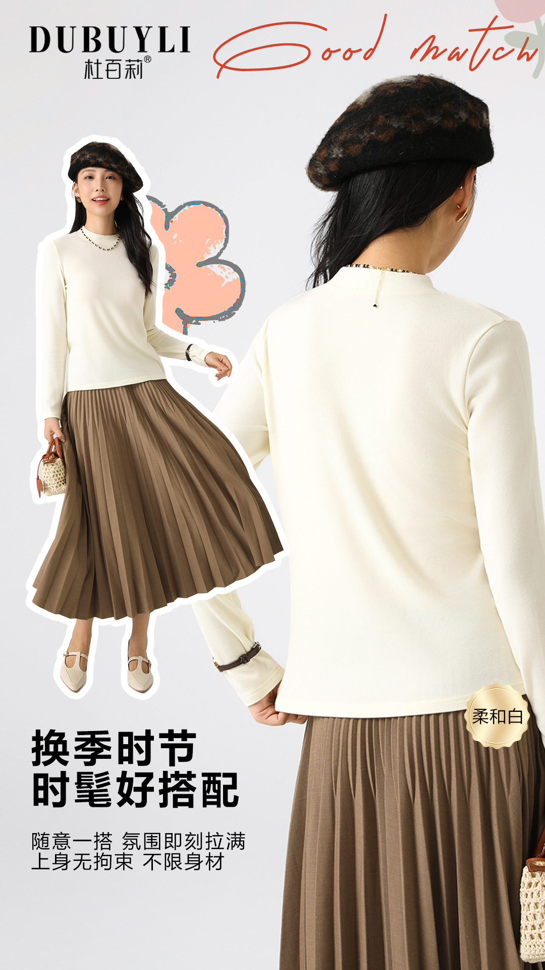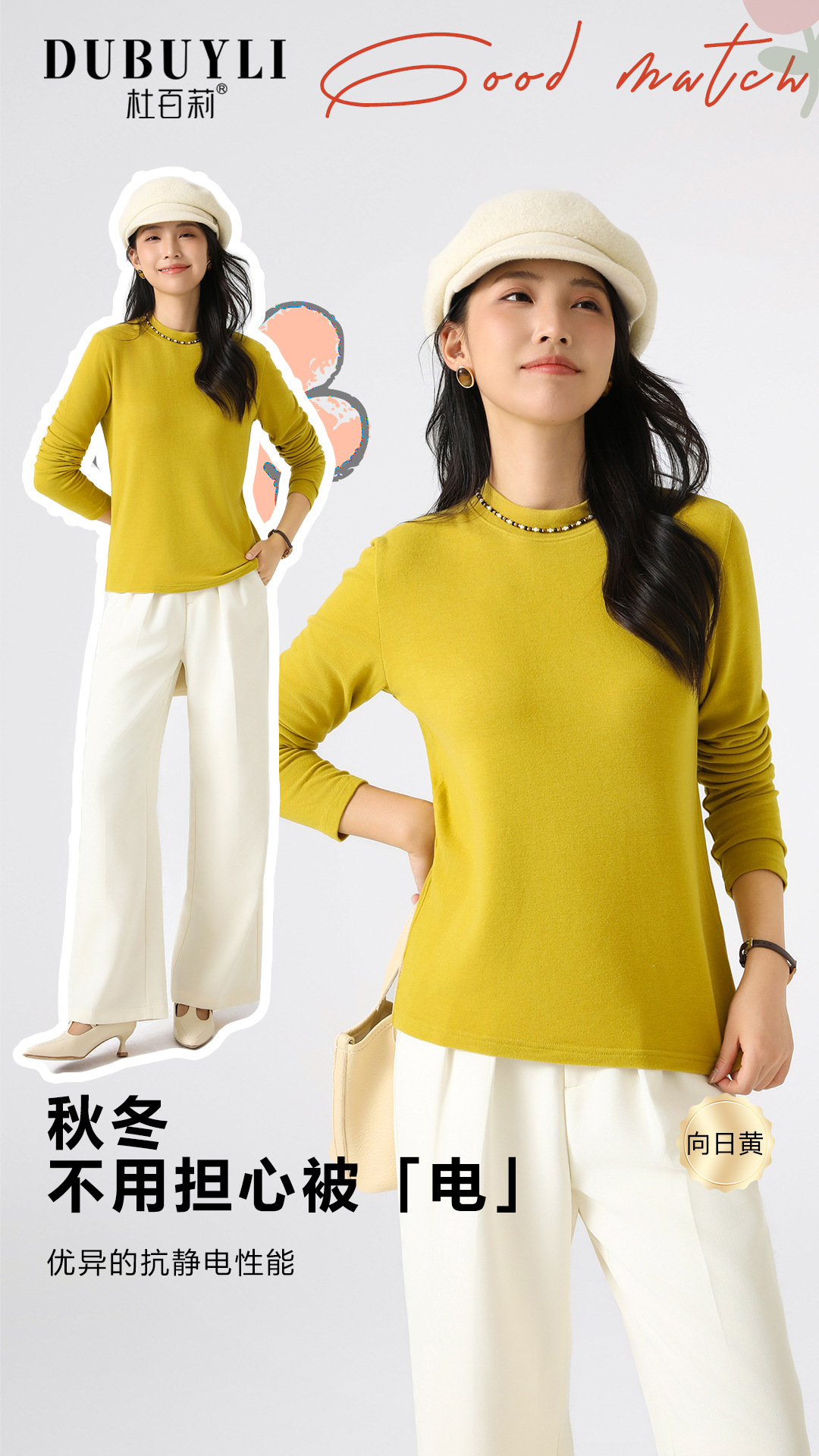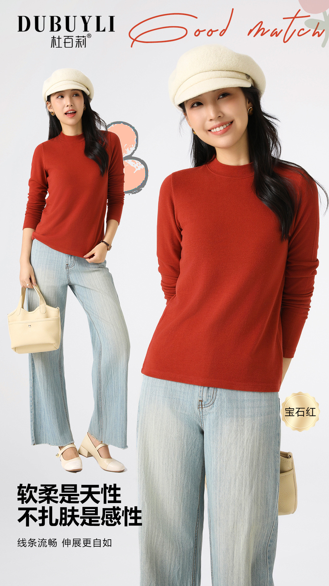 Lyocell Tencel 모직베이스 셔츠 스탠드 칼라 긴팔 티셔츠 여성의 2024 가을 및 겨울 새로운 통근 슬림 탑