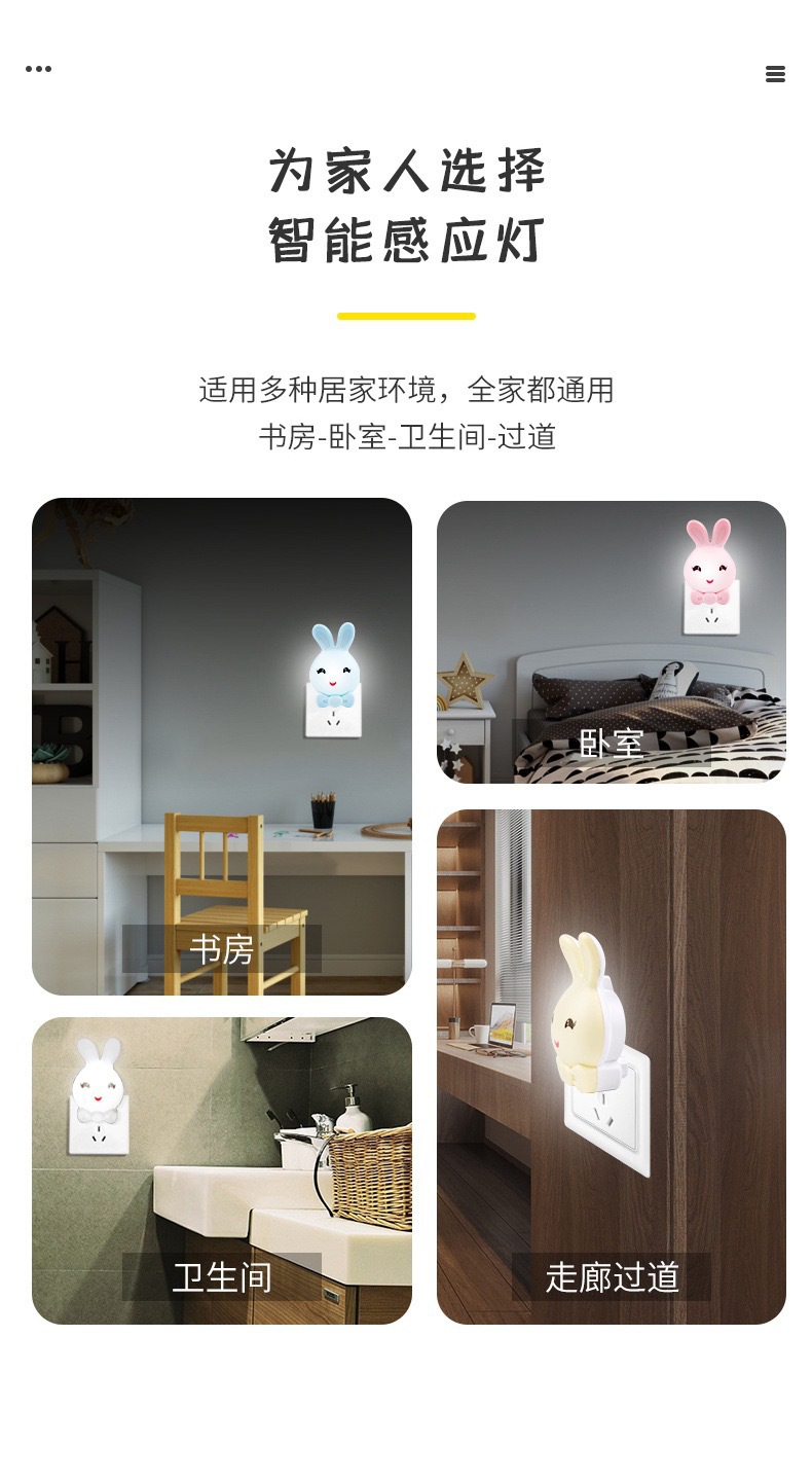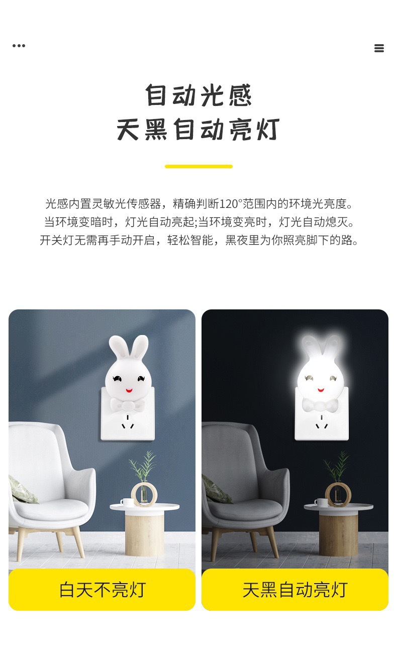 귀여운 토끼 스마트 LED 유도 램프 새로운 스톨 판매 창조적 인 선물 플러그인 에너지 절약 조명 제어 야간 조명스토어 가기