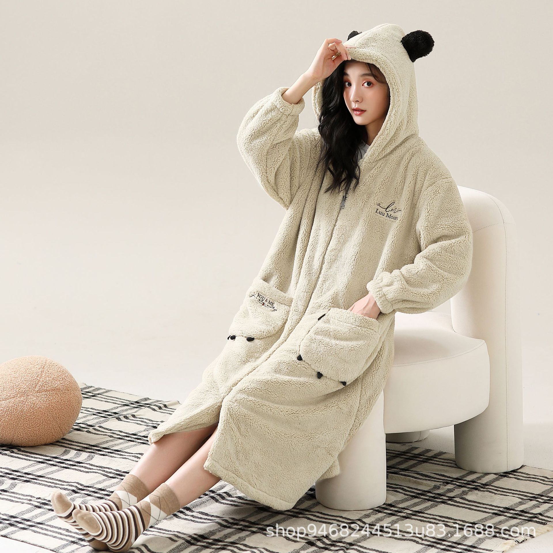 부드러운 고급스러운 가을 겨울 커플 잠옷 여성용 산호 벨벳 스탠드 칼라 지퍼 따뜻하고 두꺼운 남성용 홈웨어스토어 가기