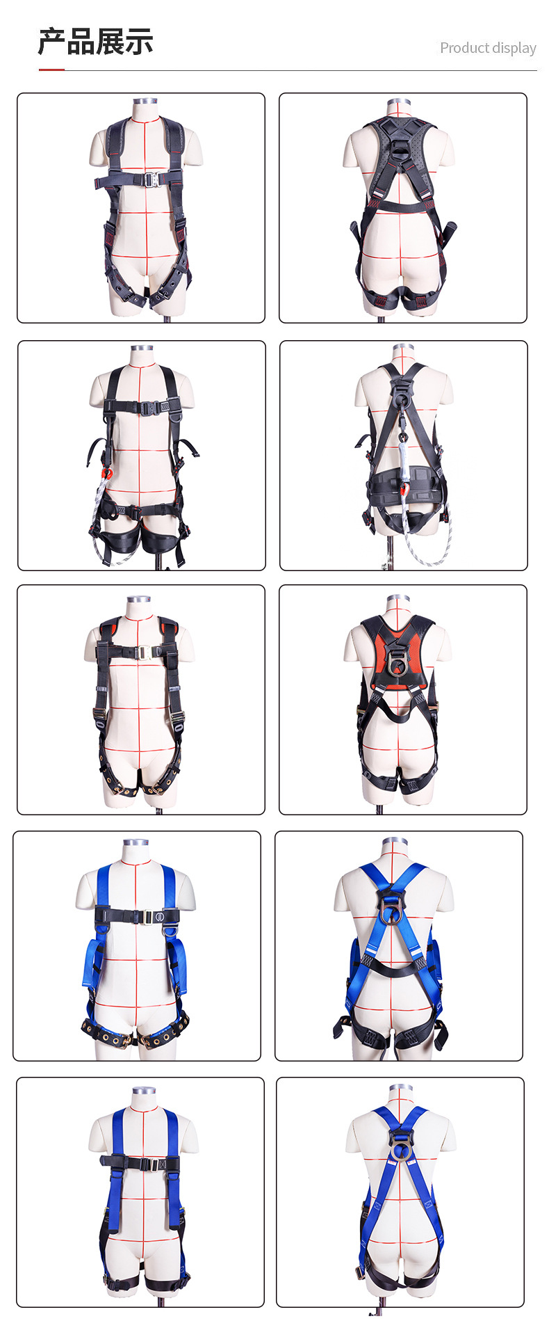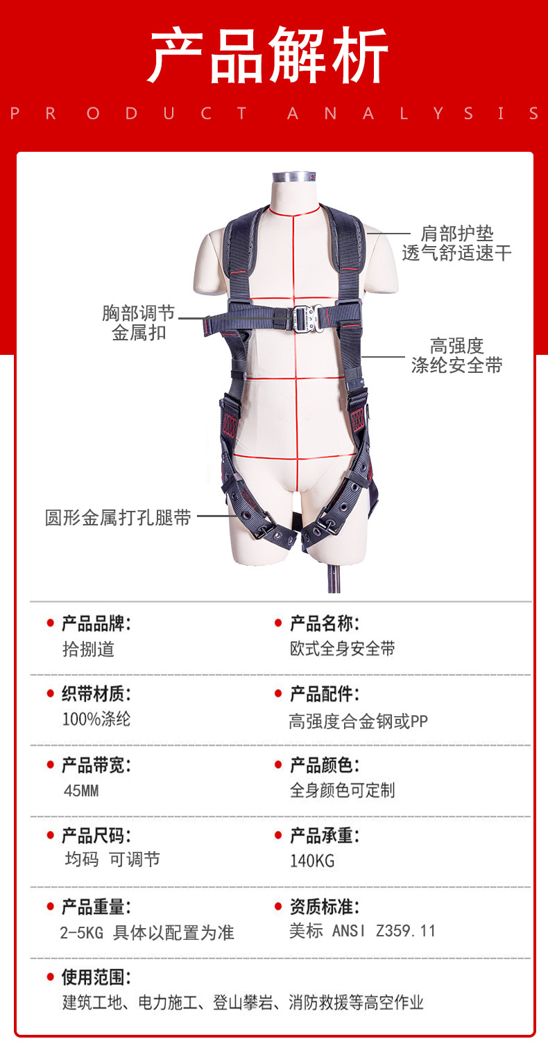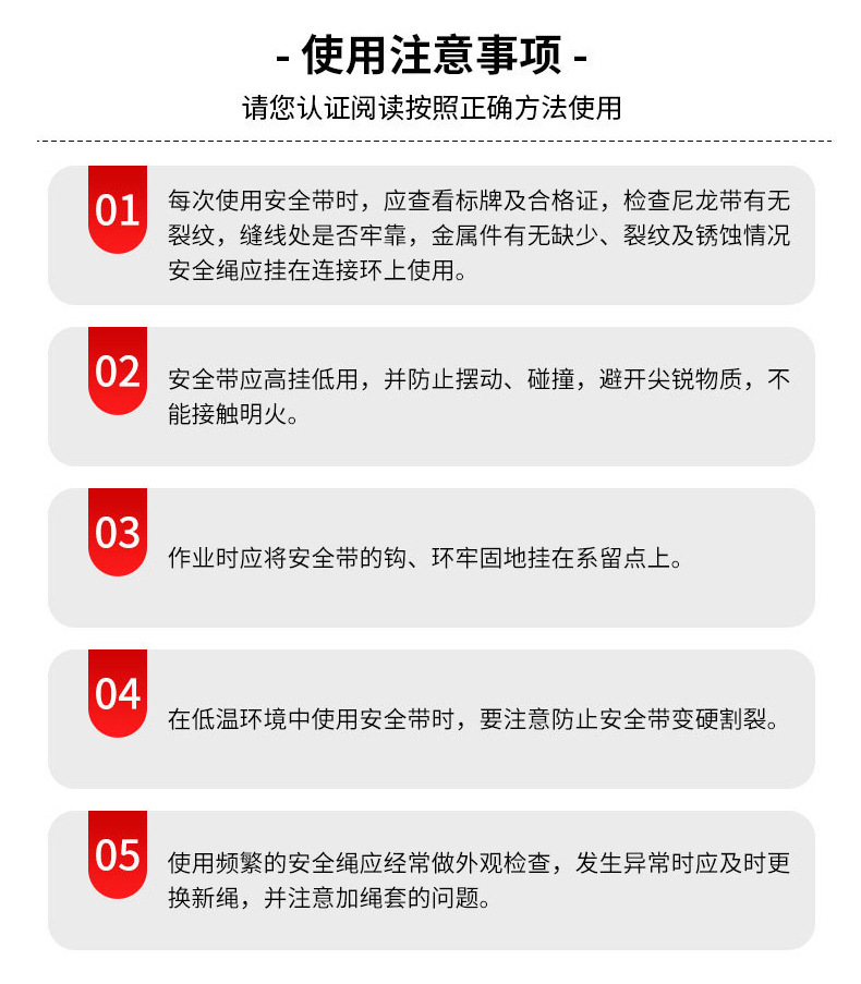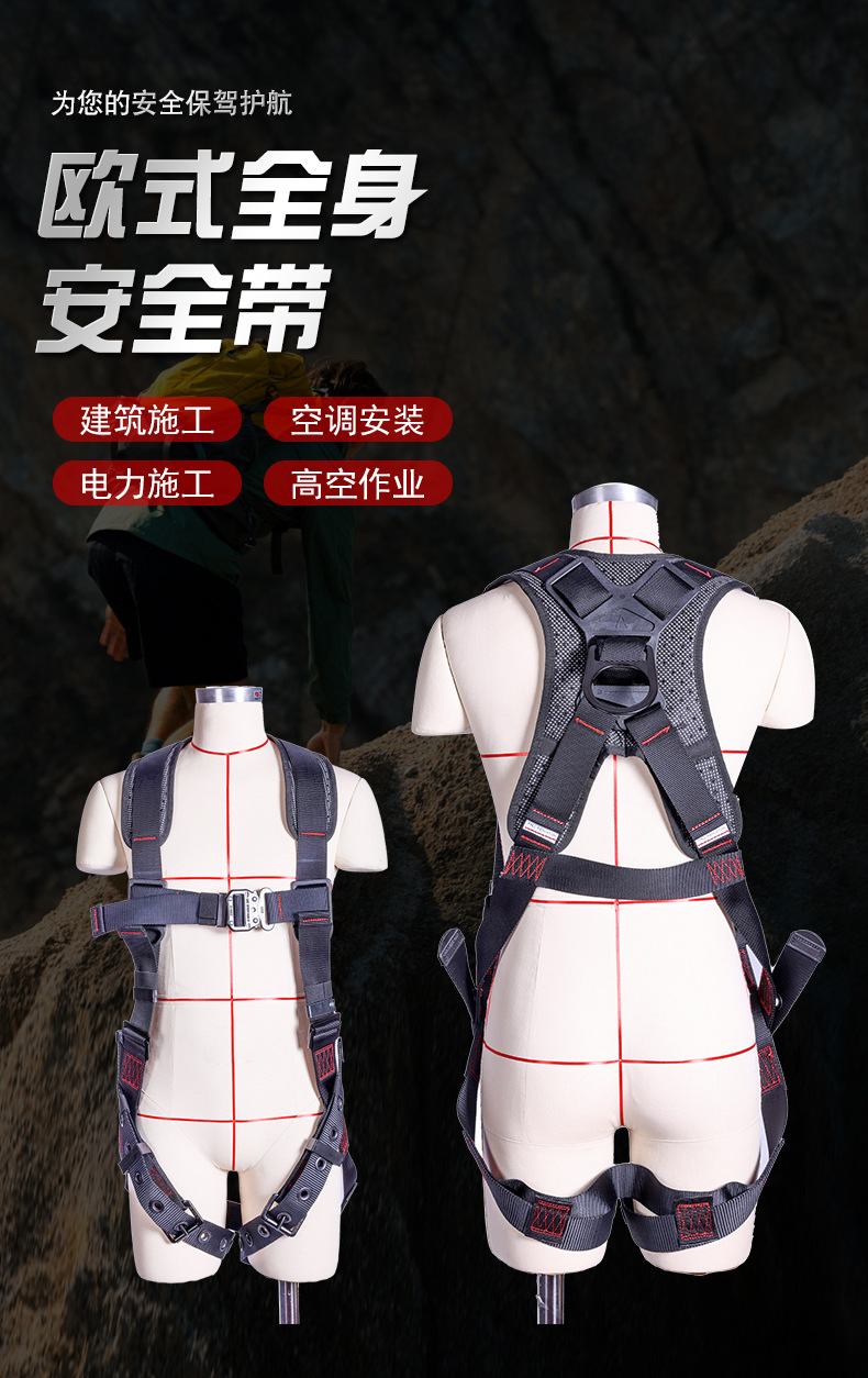 • 유럽식 전신 안전복 + 이중 대형 후크 안전 로프
