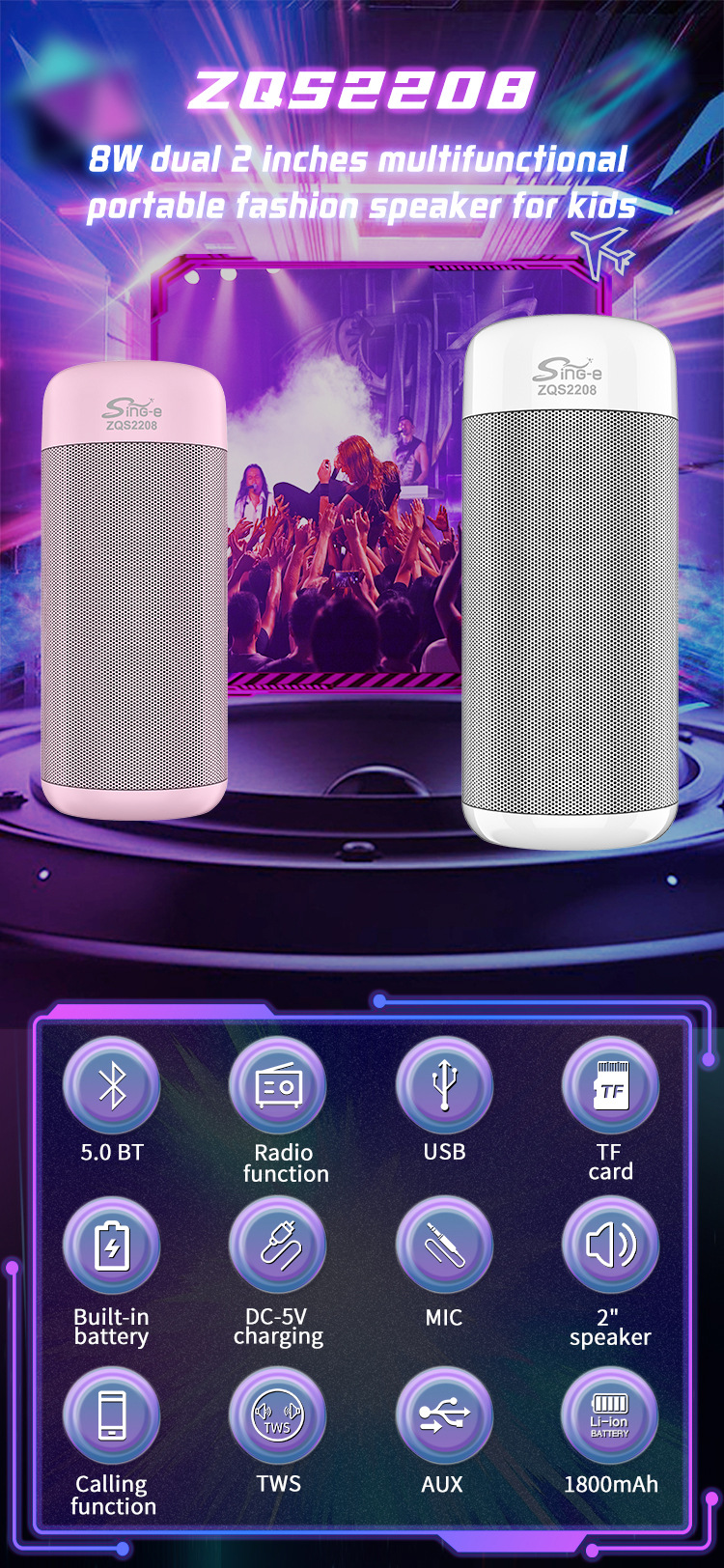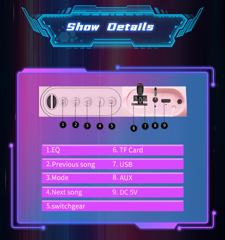 带蓝牙/USB/TF卡/AUX、带通话功能+带锂电保护、DC-5V充电(Type-c座)