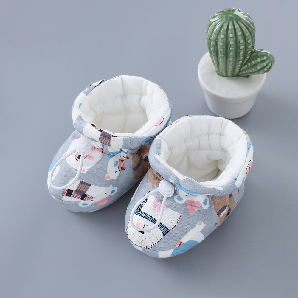 아기 면화 양말 겨울 신생아 신발 따뜻한 기모 두꺼운 남성과 여성의 아기 부드러운 밑창