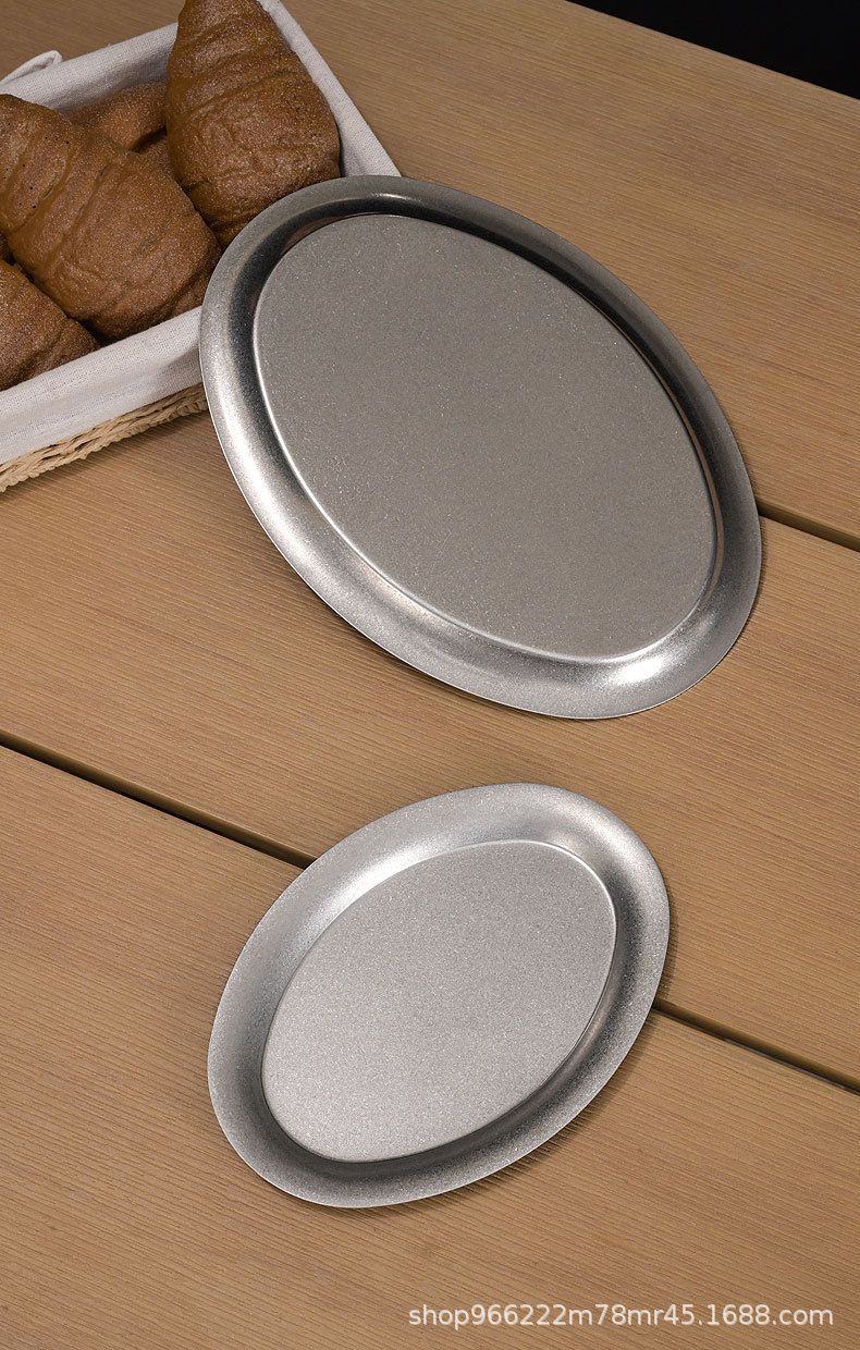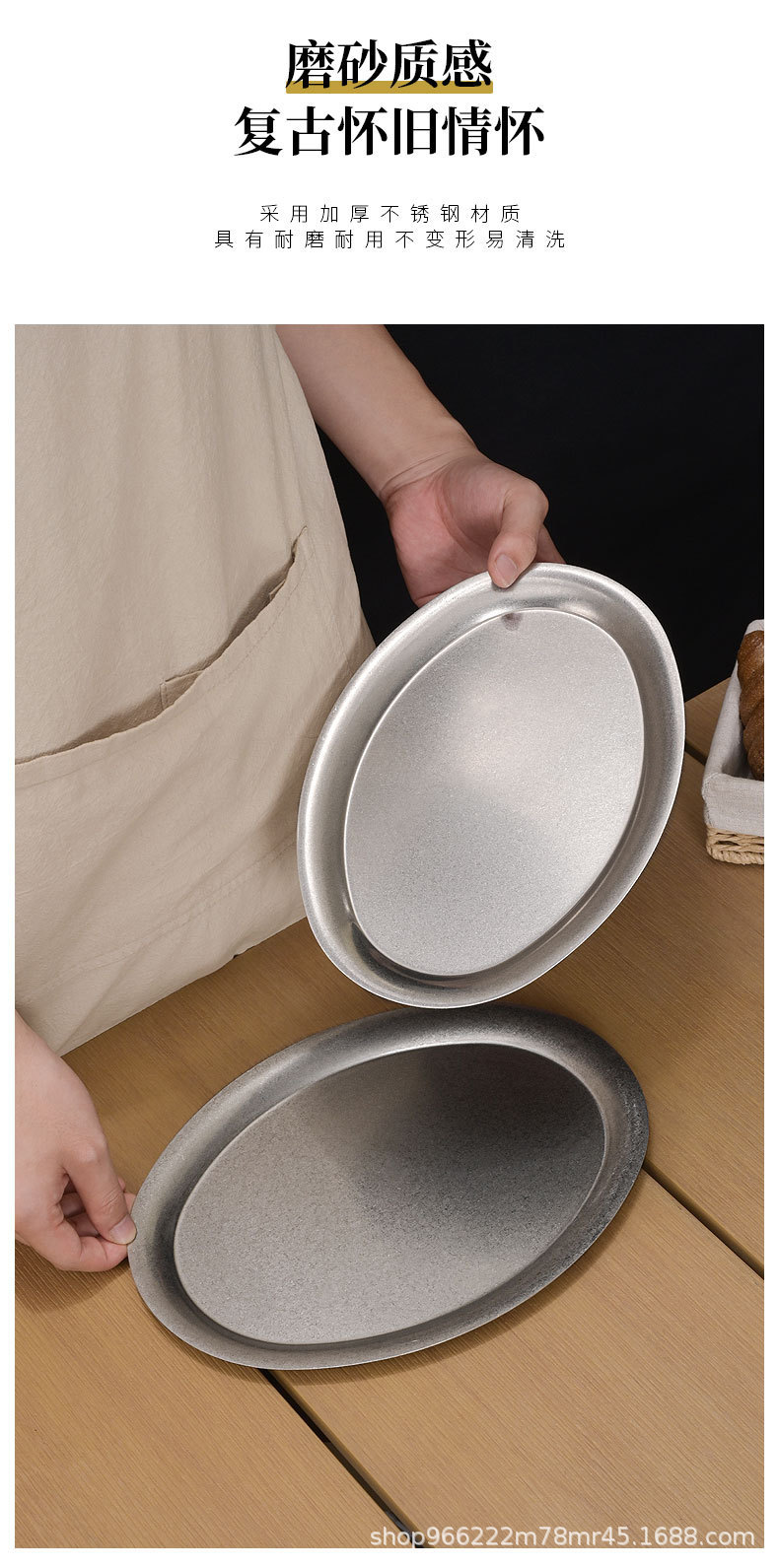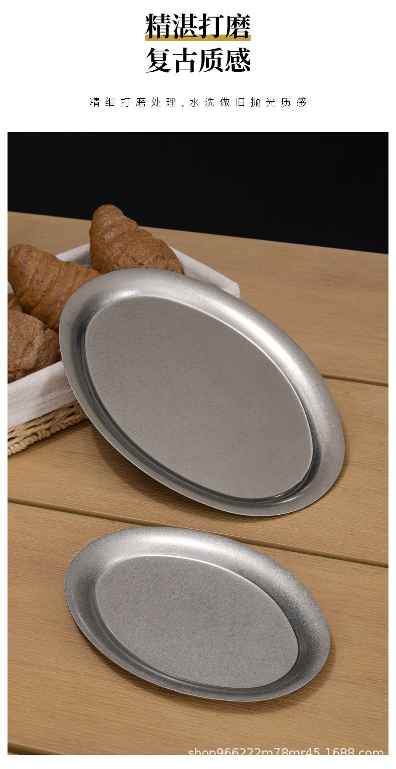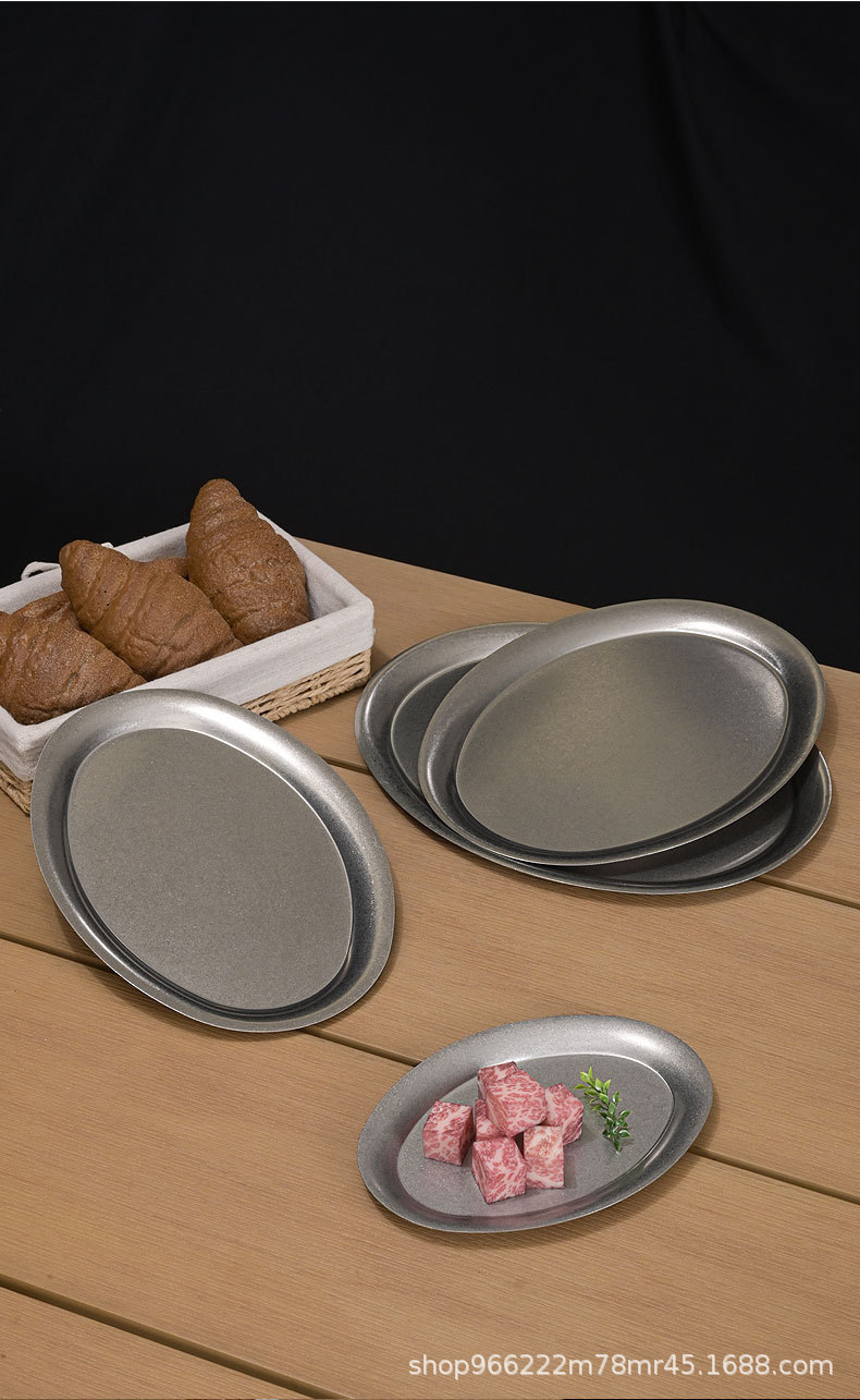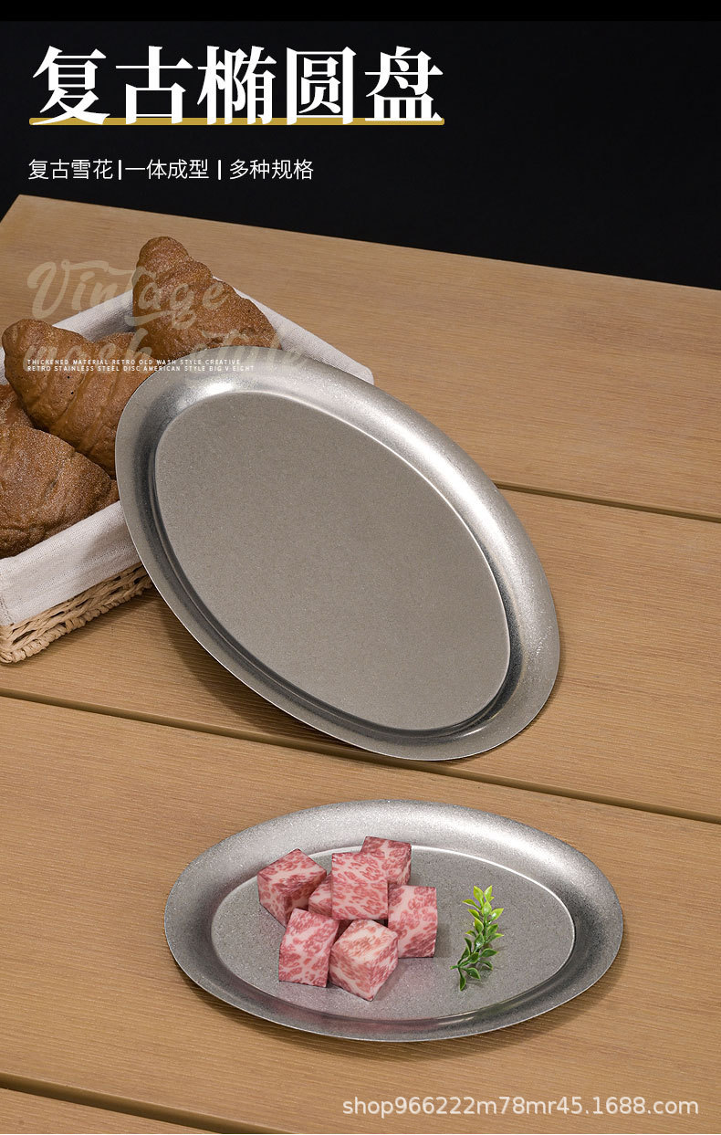 빈티지 스테인레스 스틸 플레이트 304 빈티지 눈송이 그레이 스타일 타원형 플레이트 플랫 플레이트 바베큐 핫 팟 레스토랑 얕은 플레이트스토어 가기