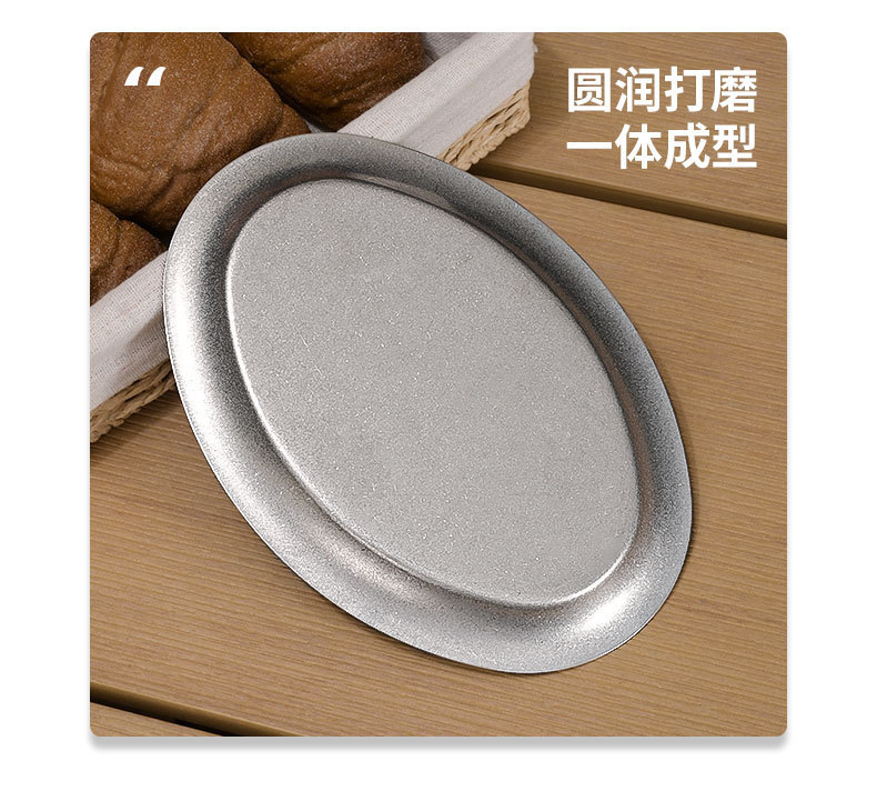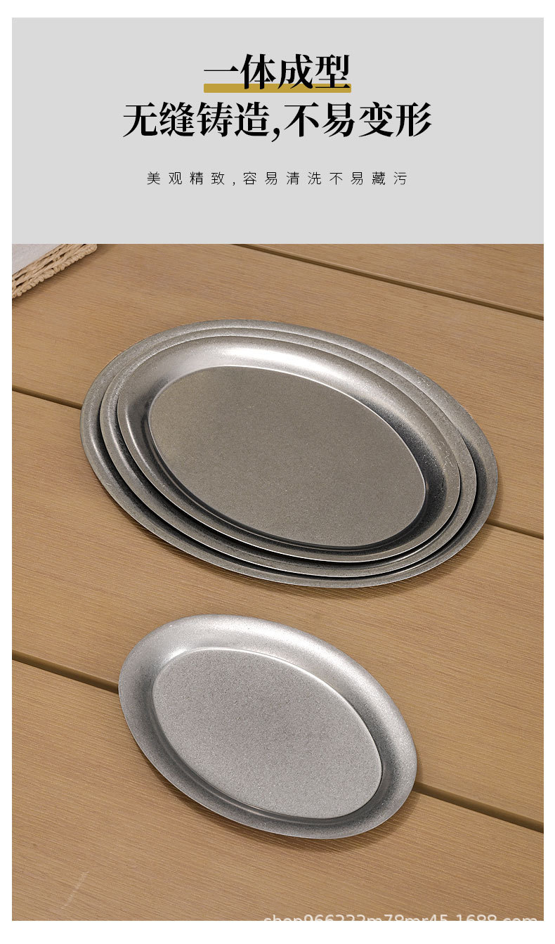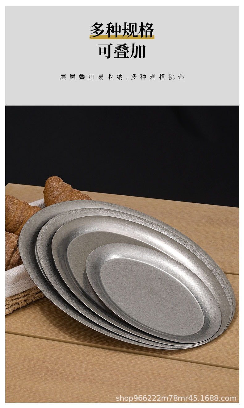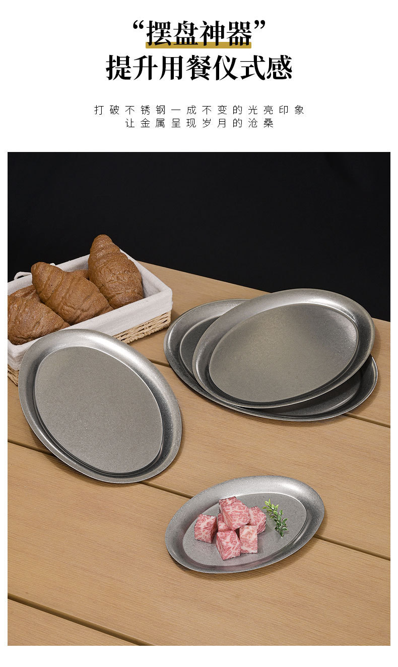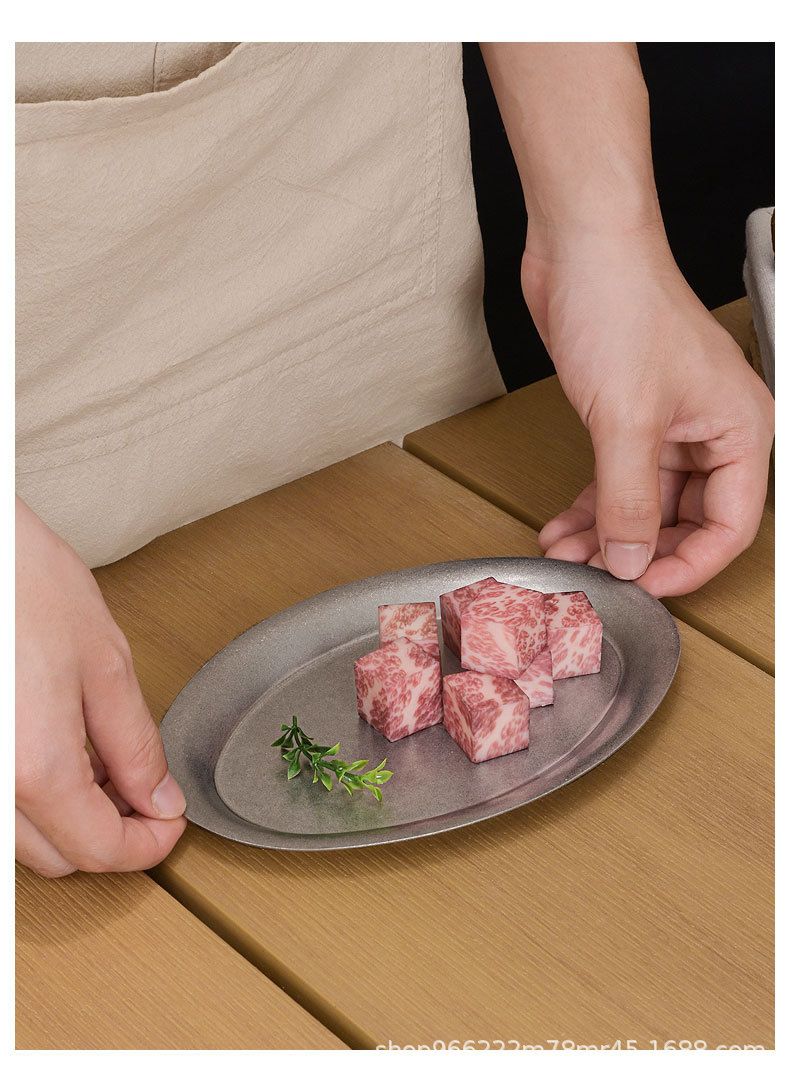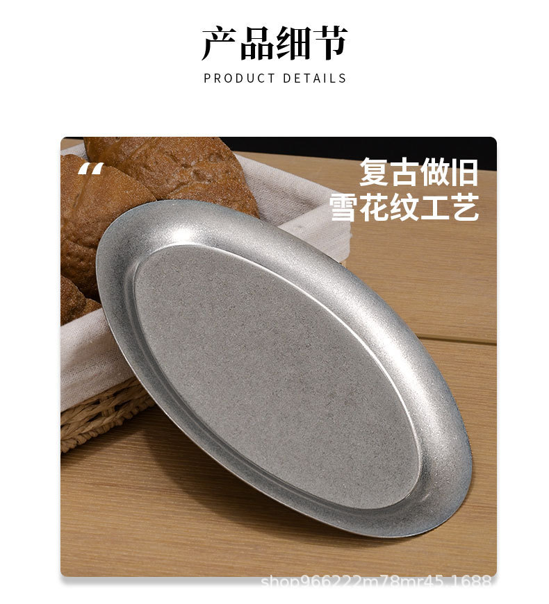 빈티지 스테인레스 스틸 플레이트 304 빈티지 눈송이 그레이 스타일 타원형 플레이트 플랫 플레이트 바베큐 핫 팟 레스토랑 얕은 플레이트스토어 가기