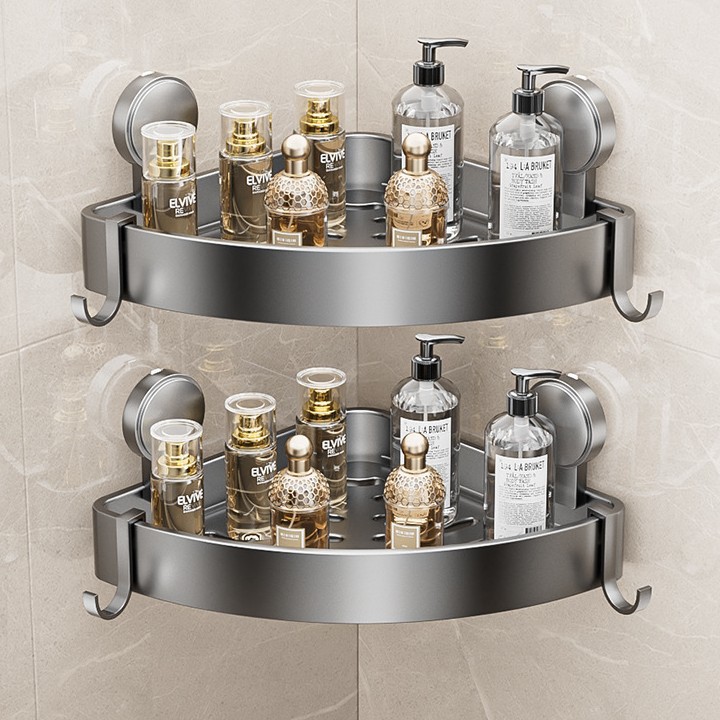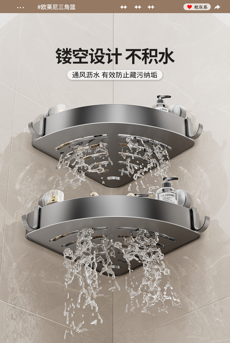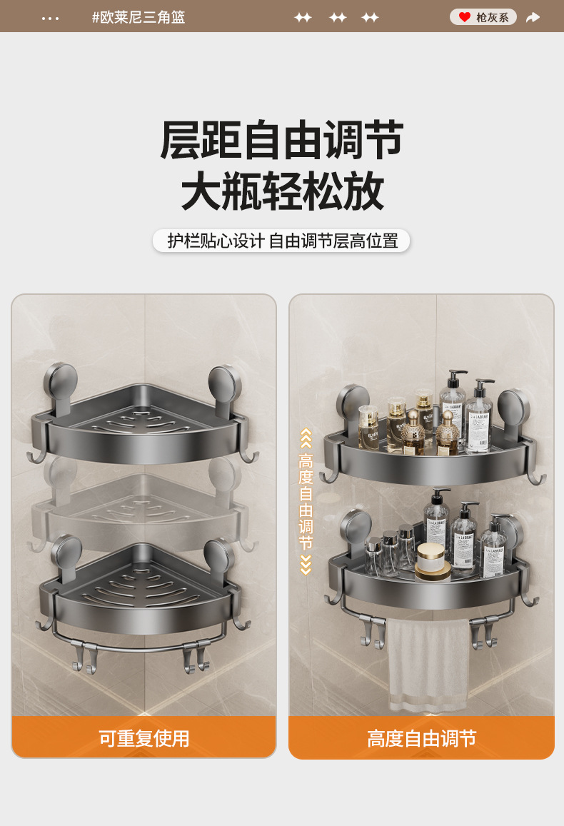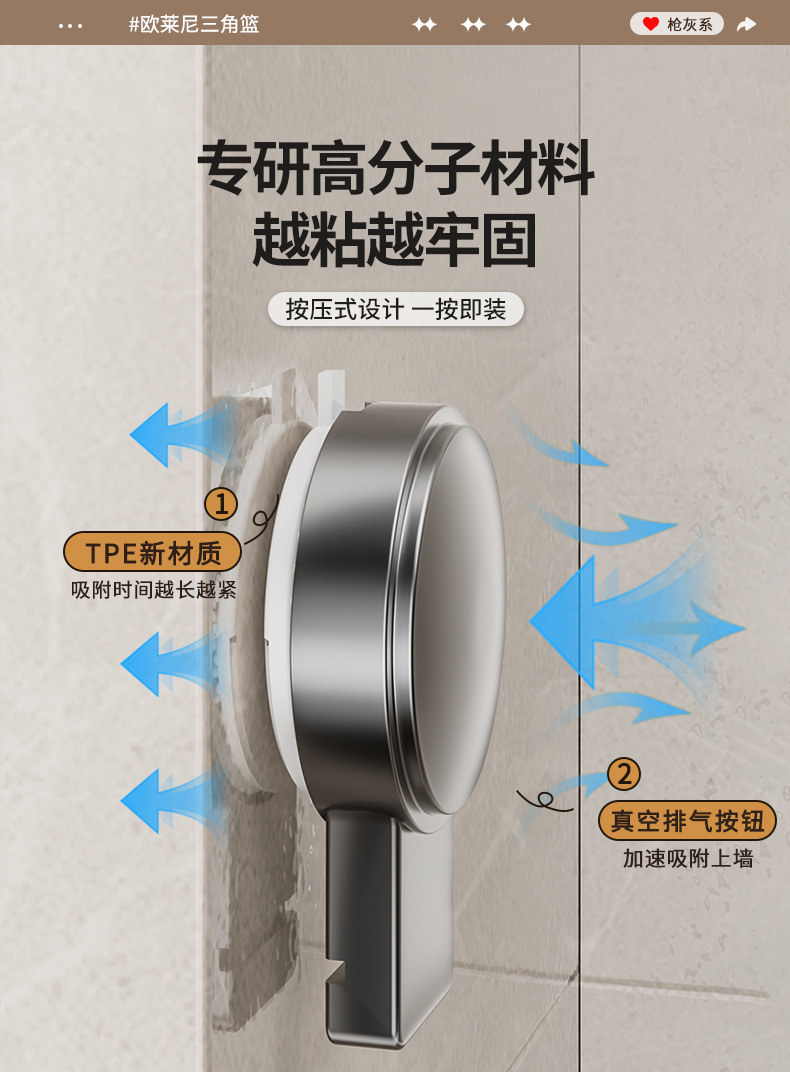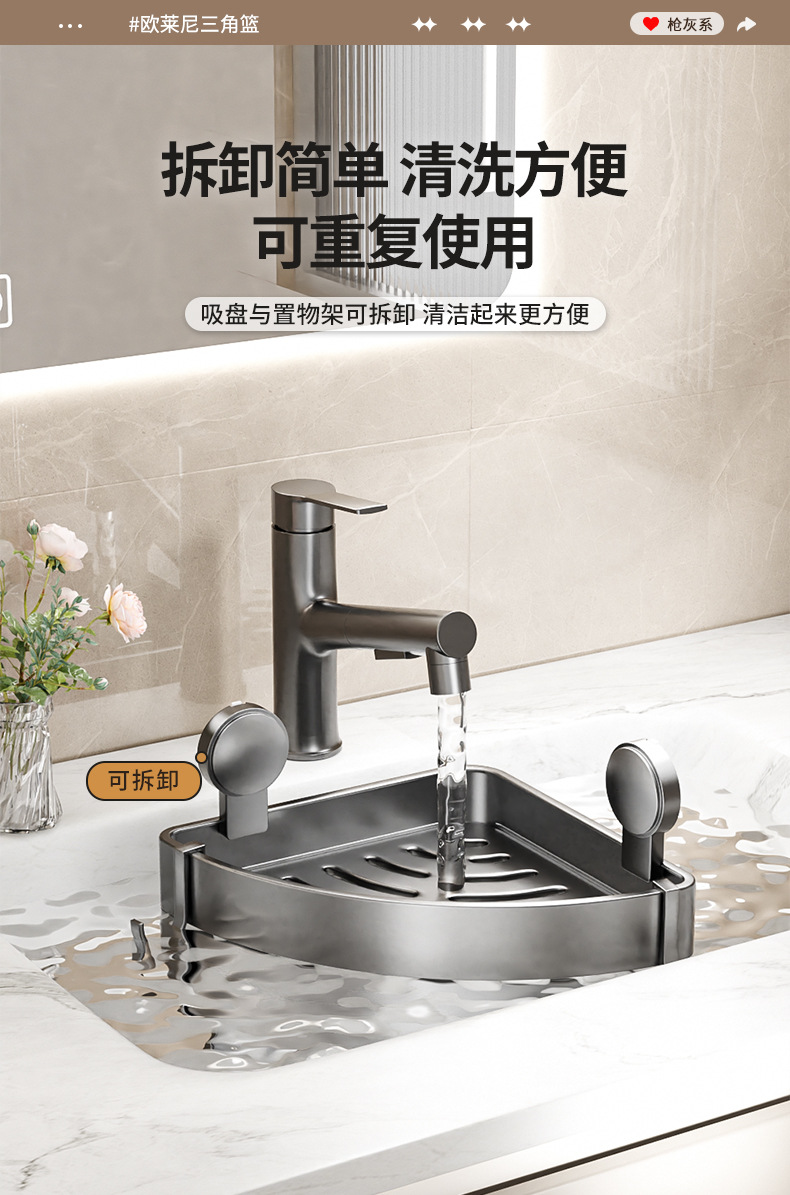 • 건 그레이❥높이 6.8cm의 진공흡착 삼각바구니 - 더블 레이어 [흡착컵은 분리 가능하고 재사용 가능]